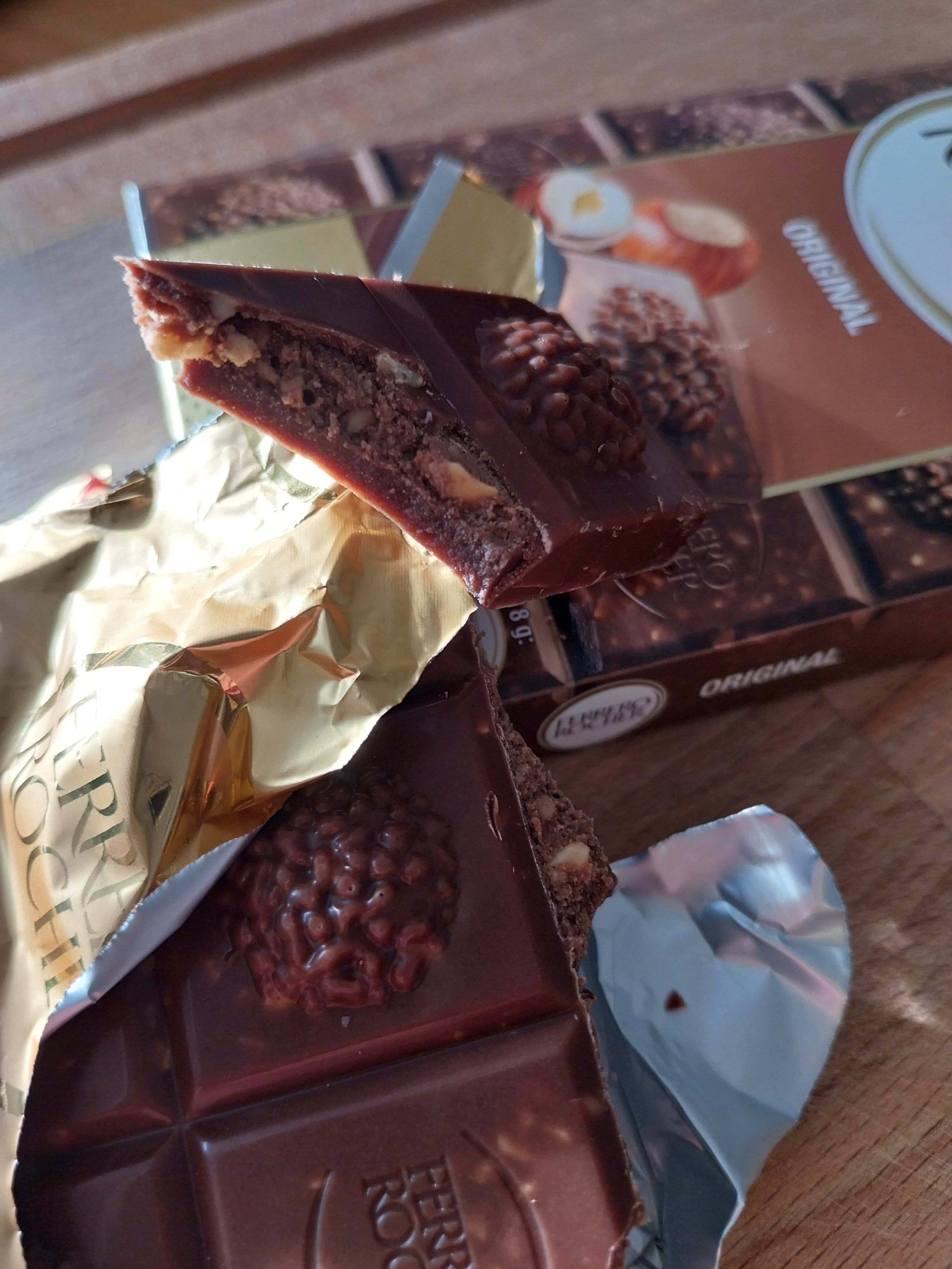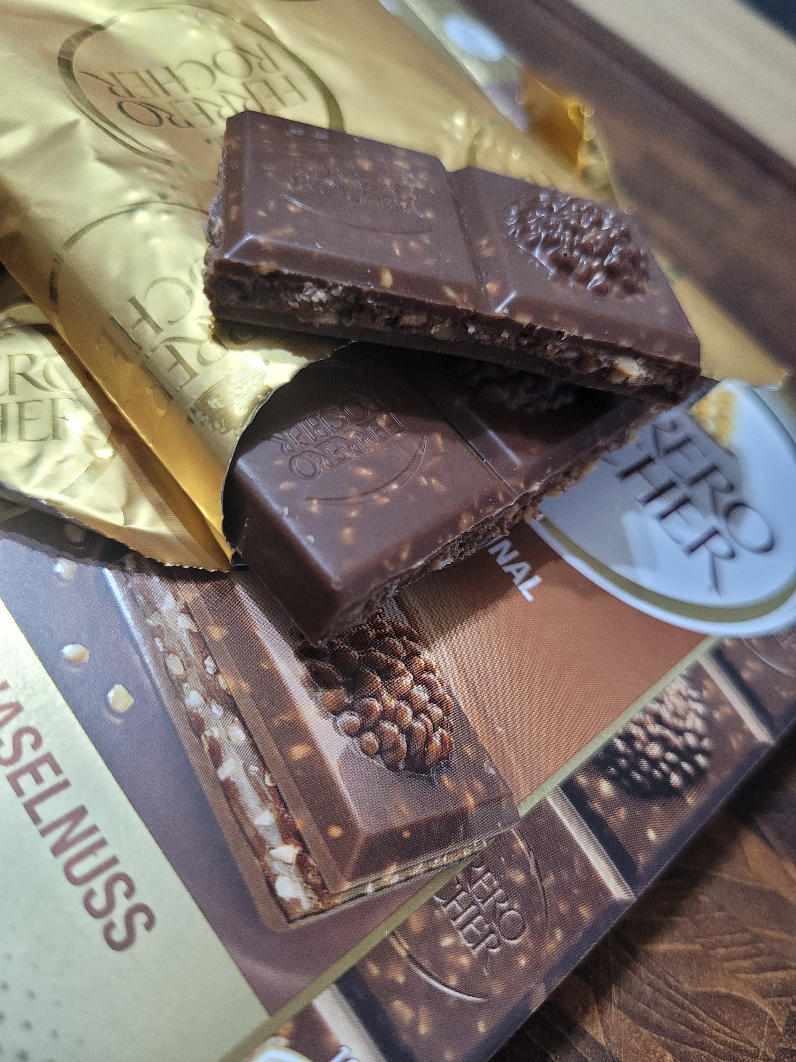 find es toll, dass es Ferrero Rocher jetzt auch als Tafel gibt, tatsächlich eine Schokolade mit Suchtfaktor. Leider für meinen Geschmack etwas zu süß...