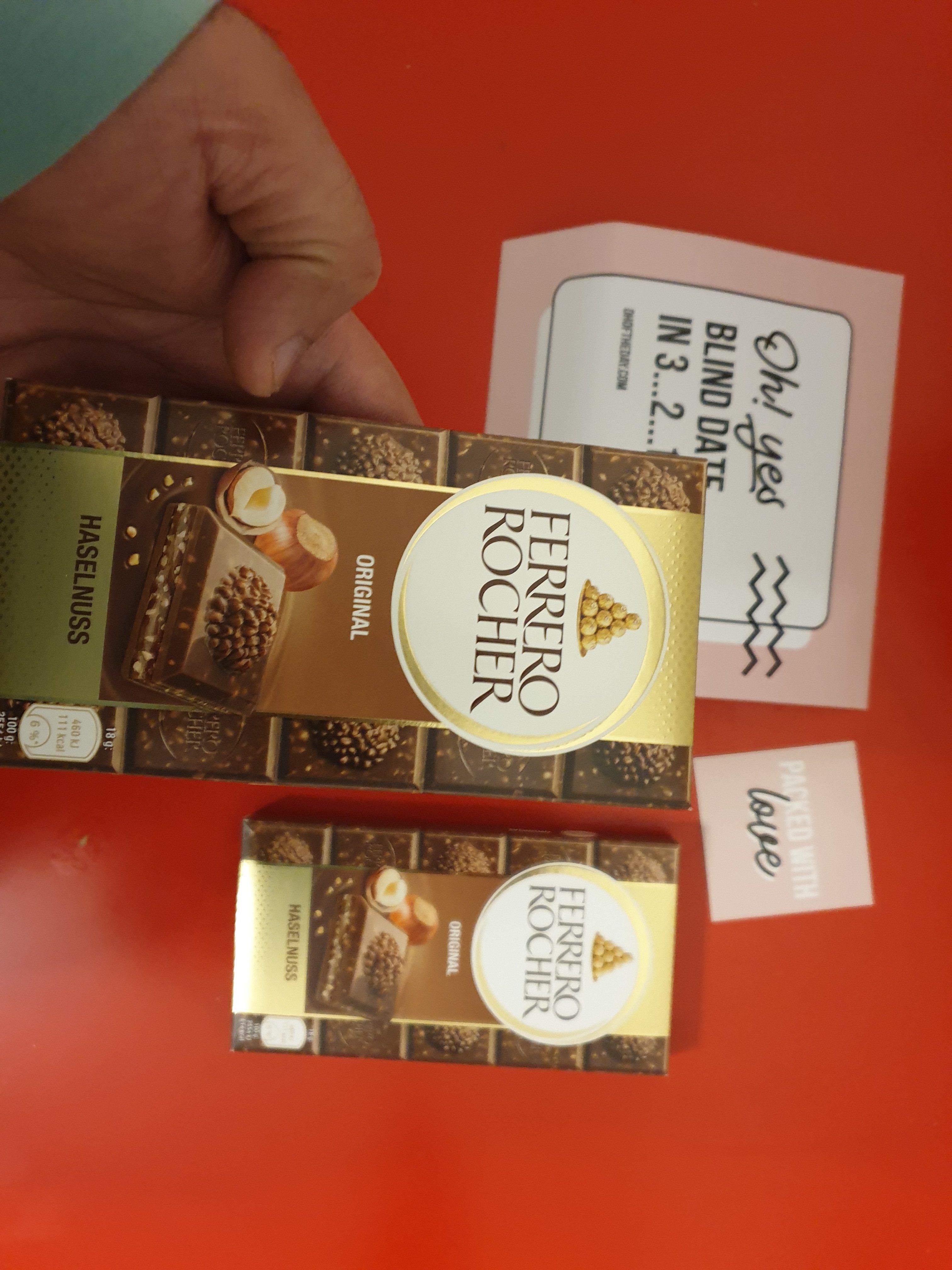 Mein Paket ist Samstag angekommen und ich habe mich gefreut, dass es direkt zwei Tafeln waren. Ich habe eine Tafel meiner besten Freundin gegeben.