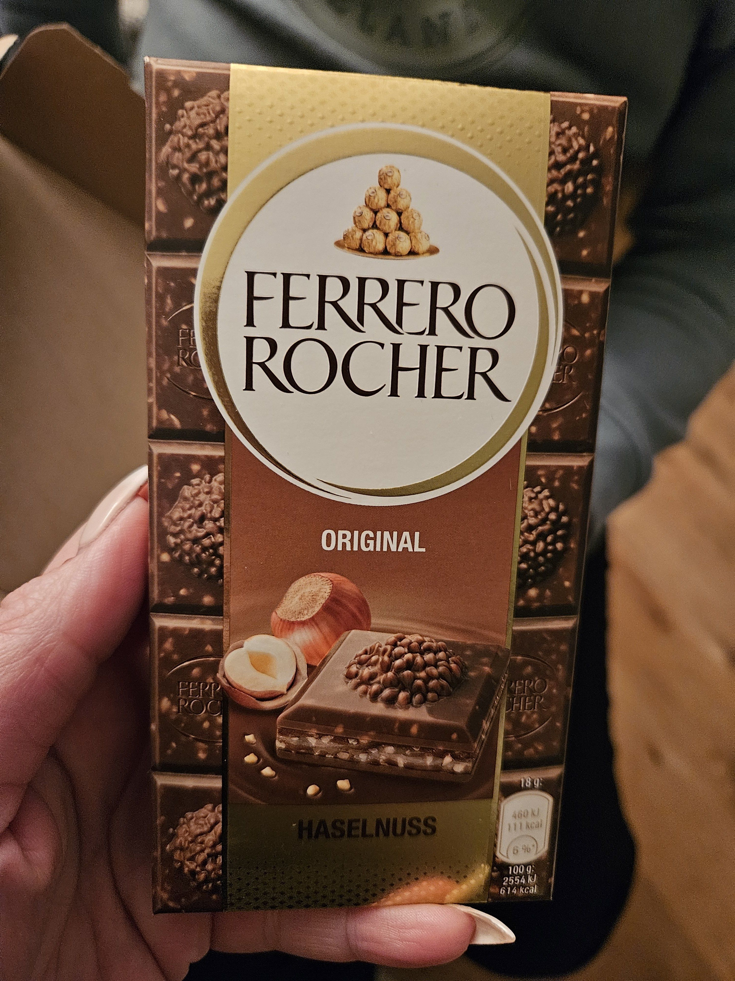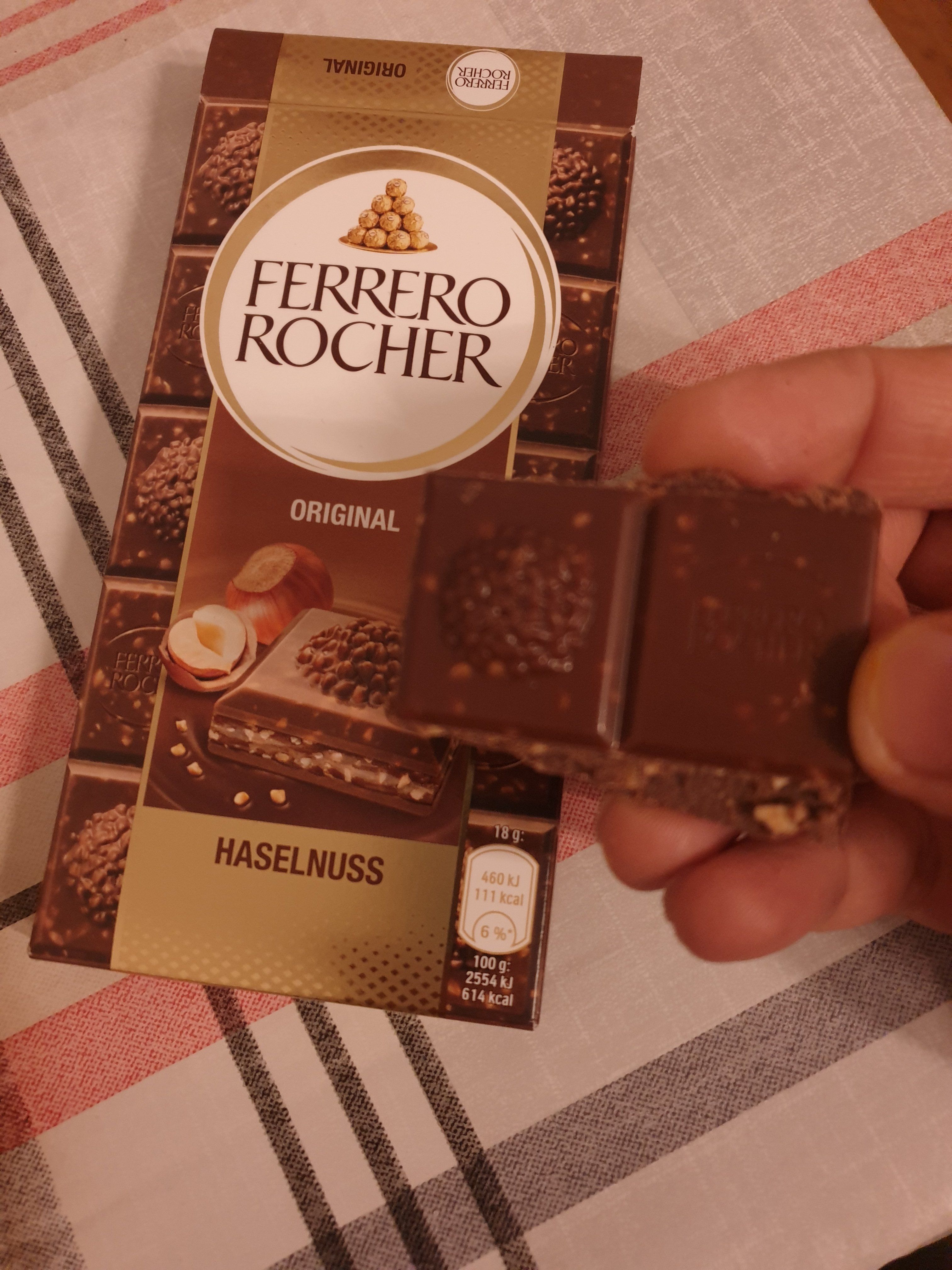 Ich liebe Ferrero Rocher und habe mich aufs testen gefreut, die Schokolade war echt lecker aber an das original Produkt kommt sie leider nicht ran. Ich habe die Creme im inneren vermisst aber nichts desto trotz war sie echt lecker und wird auch weiterhin gerne gegessen.