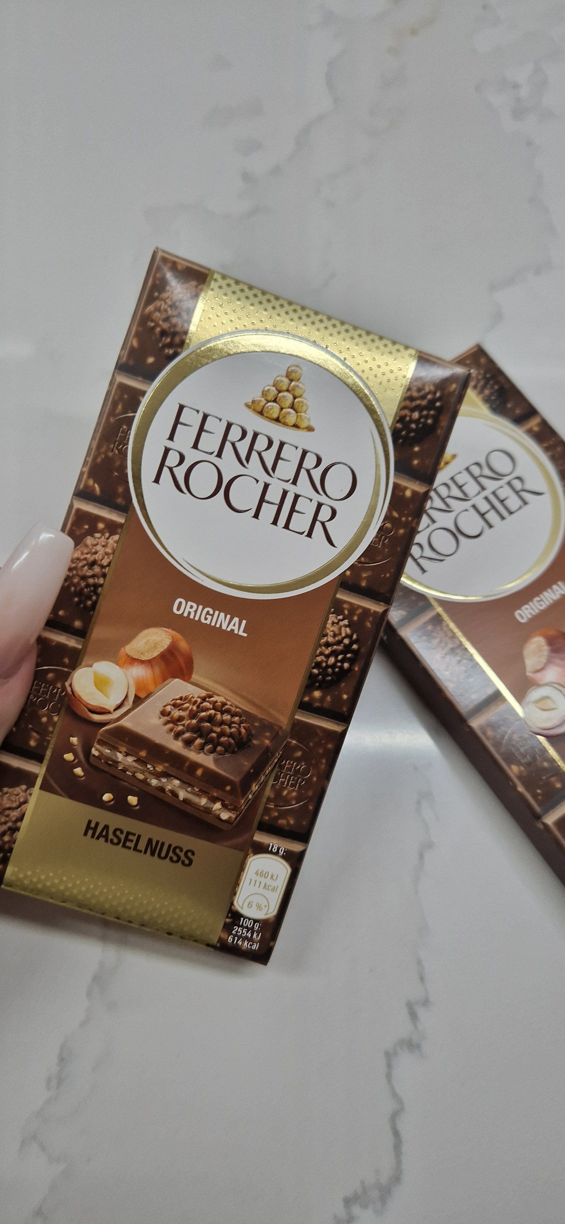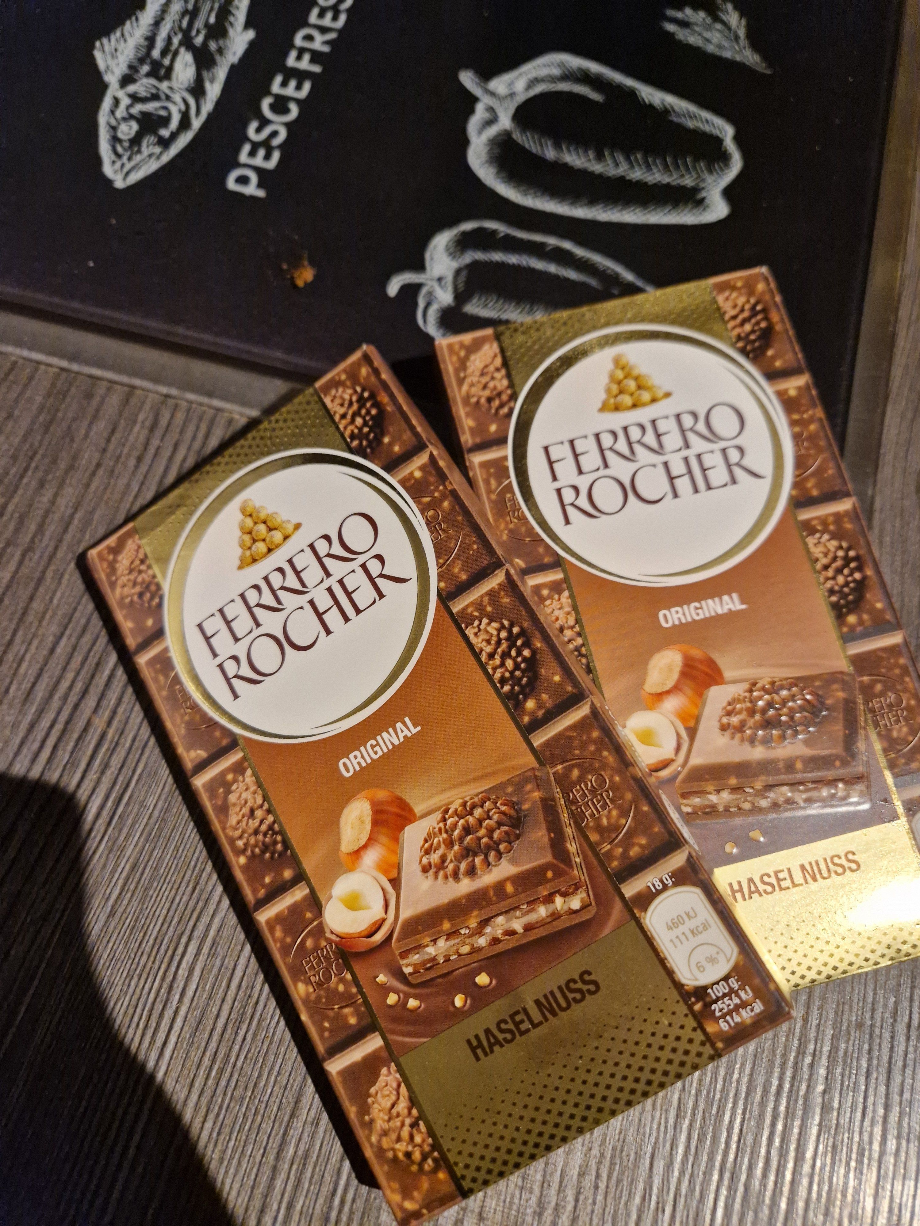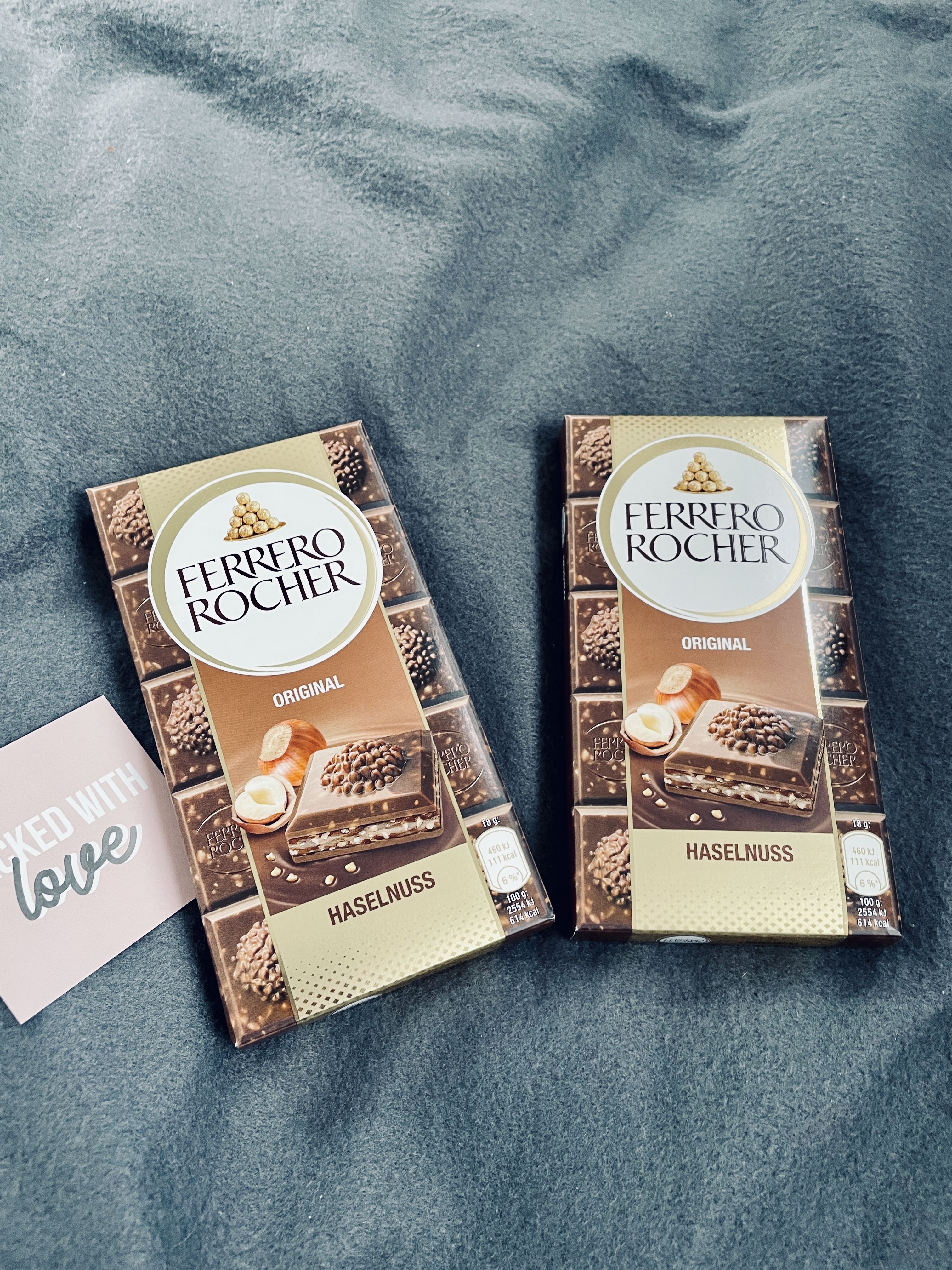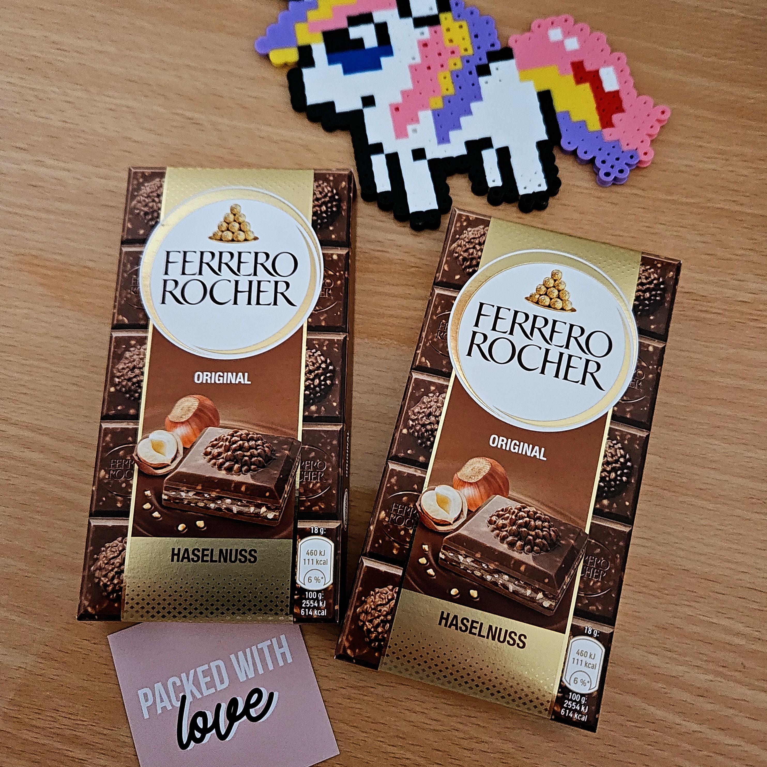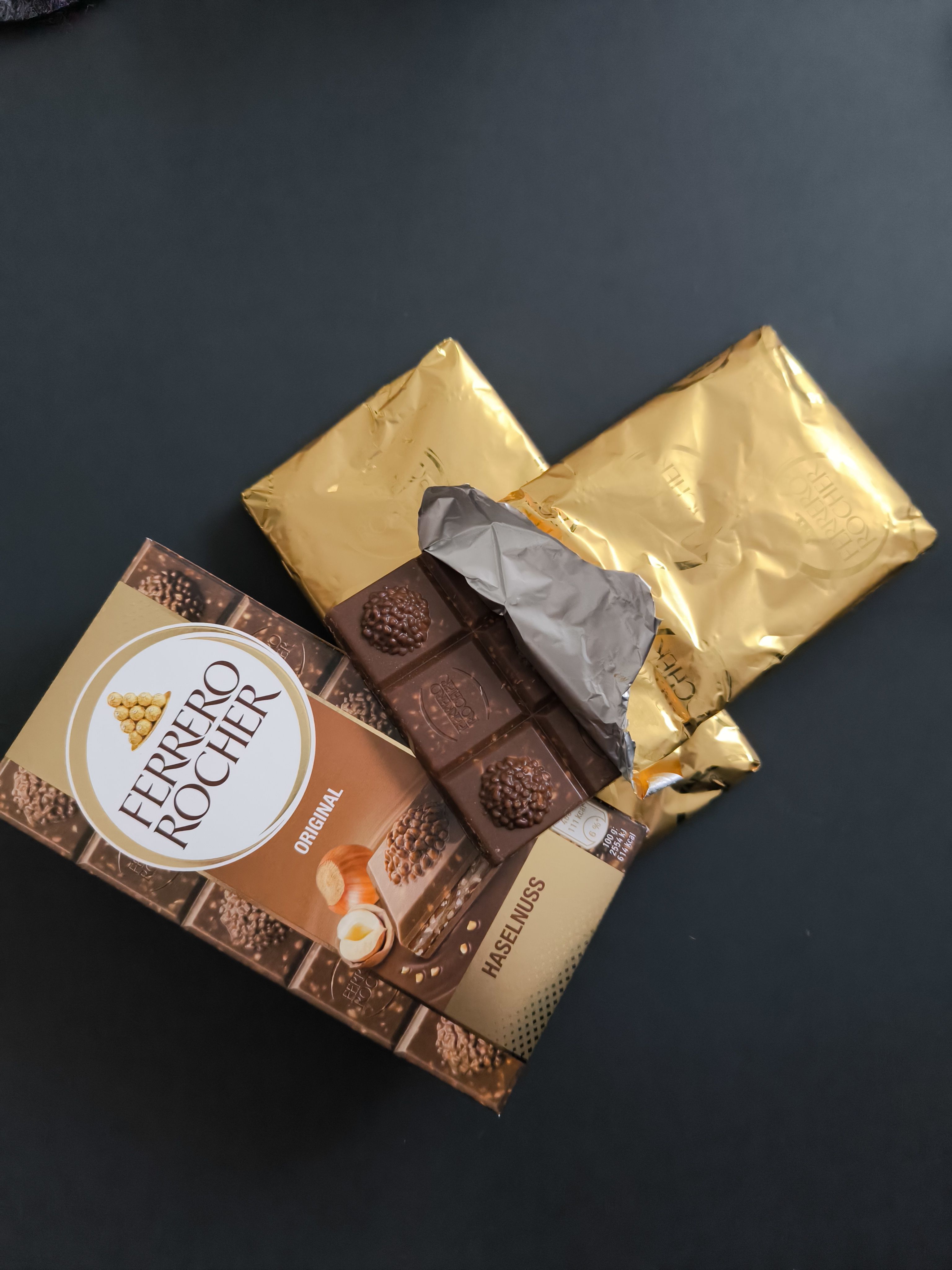 Die Ferrero Rocher Tafeln sind super cremig und zart in der Konsistenz und schmecken intensiv nach Nuss. Genau wie meine geliebten Rocher Kugeln. Die Packung könnte für den Preis minimal größer sein, aber ich werde sie mir auf jeden Fall nochmal kaufen. Sehr zu empfehlen 😊😍