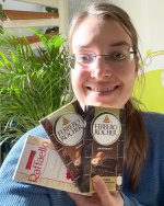 • Wertige Verpackung, sieht edel aus, schmeckt toll nach Rocher, nicht zu süß, schöner Schmelz