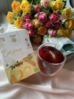 Meine Tochter und ich haben heute den Rooibostee Enjoy probiert. Leider ist uns hier der Zimtgeschmack zu stark. Eine Zitronennote hätte uns besser gefallen.