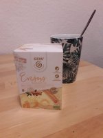 Beim öffnen des Pakets kam einem der Duft von Zimt schon entgegen. Die Geschmacksrichtung "enjoy" wurde auch schon direkt probiert und schmeckt mega lecker.