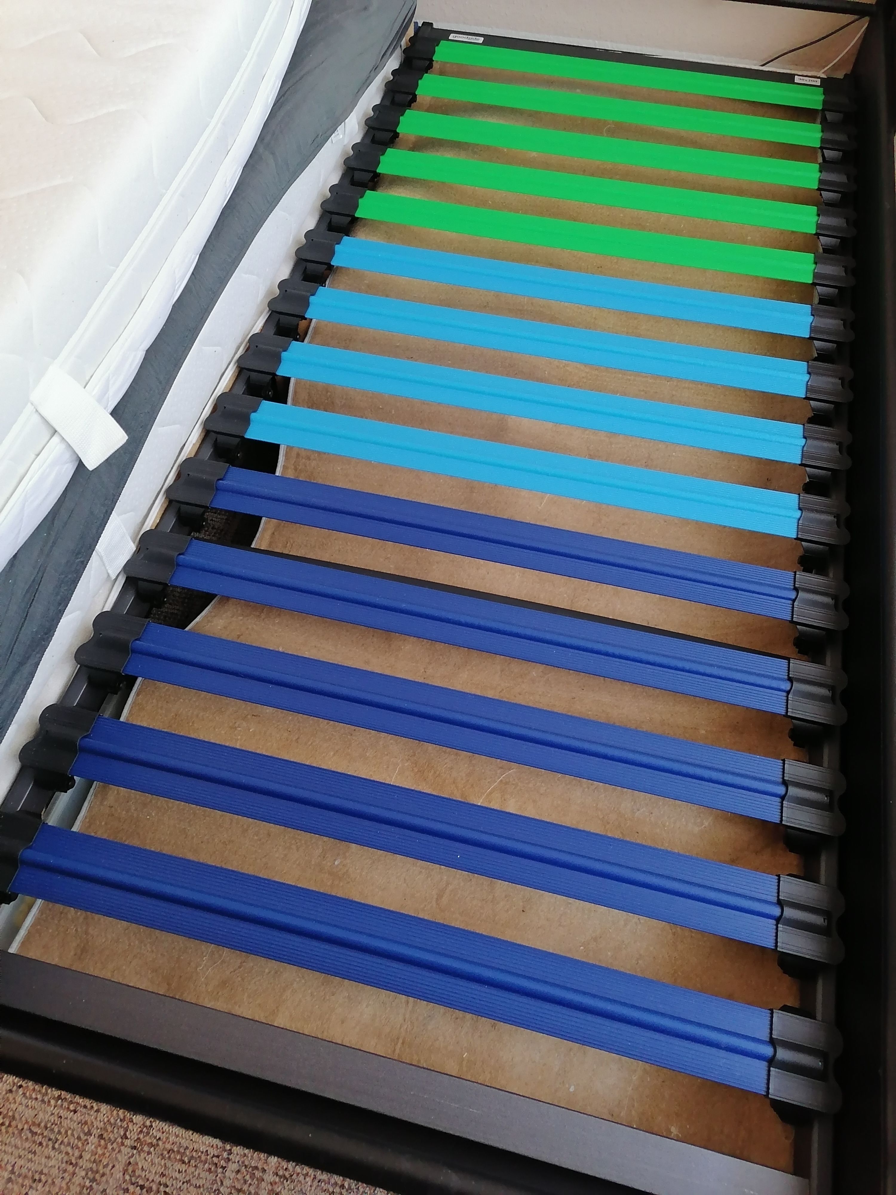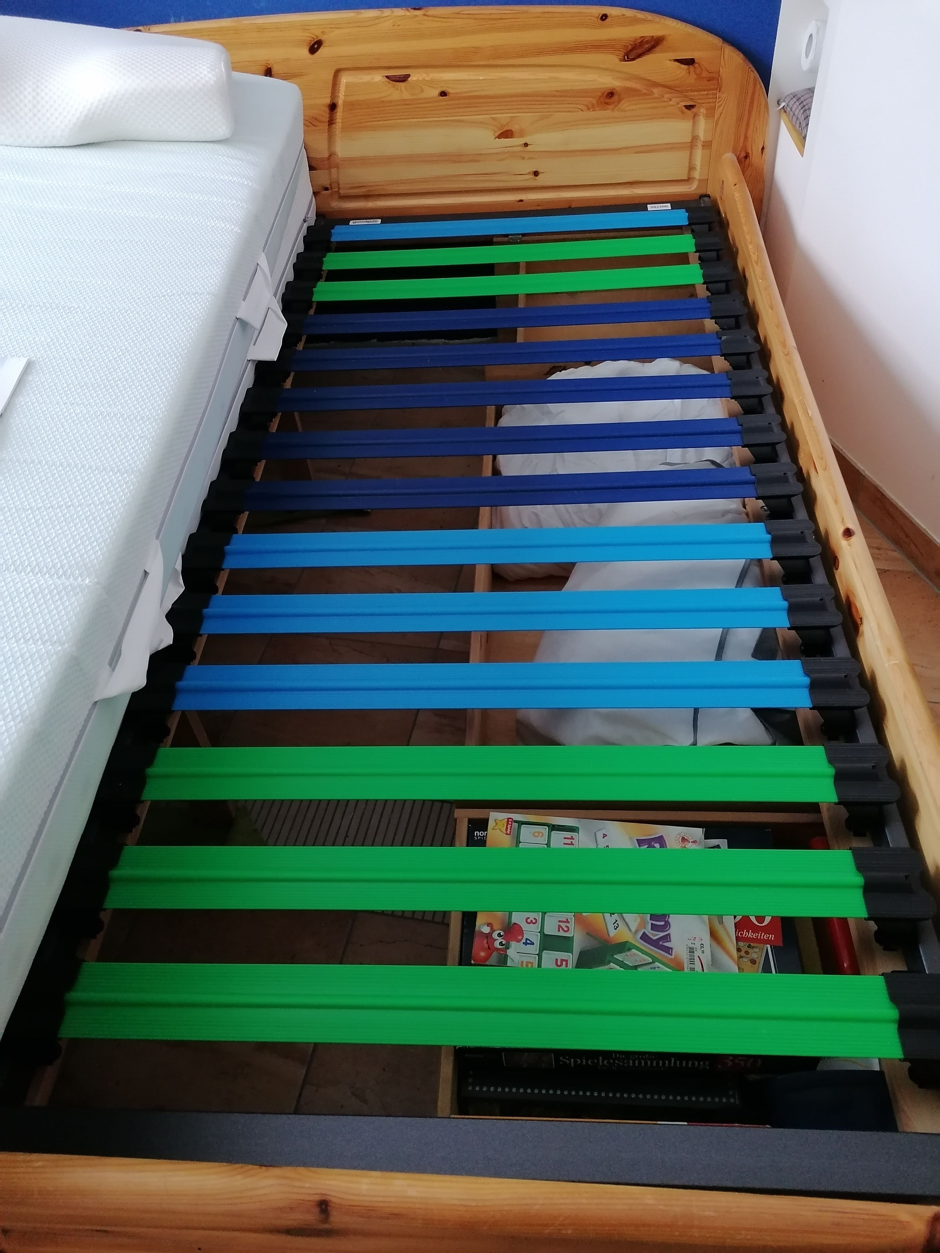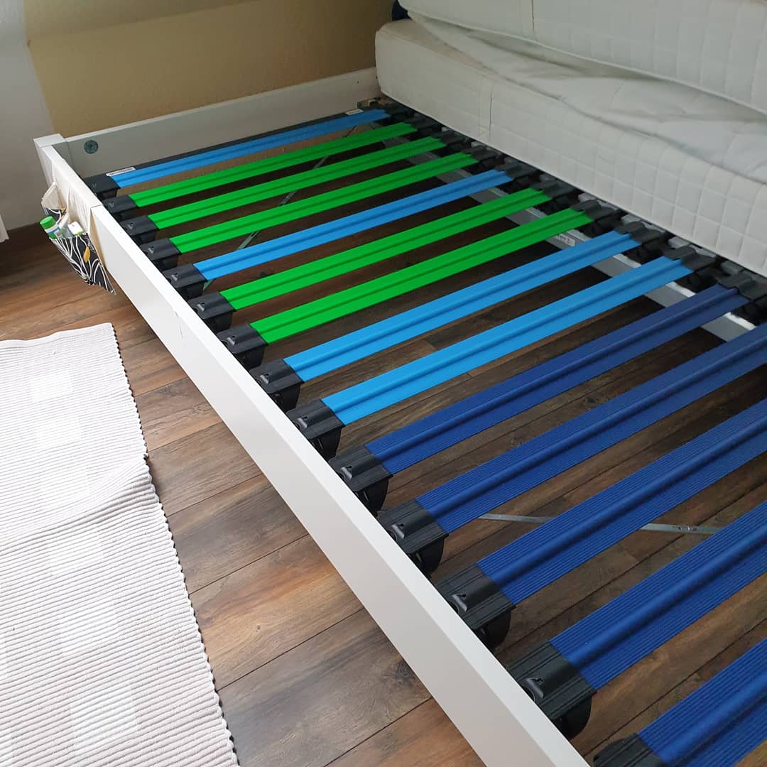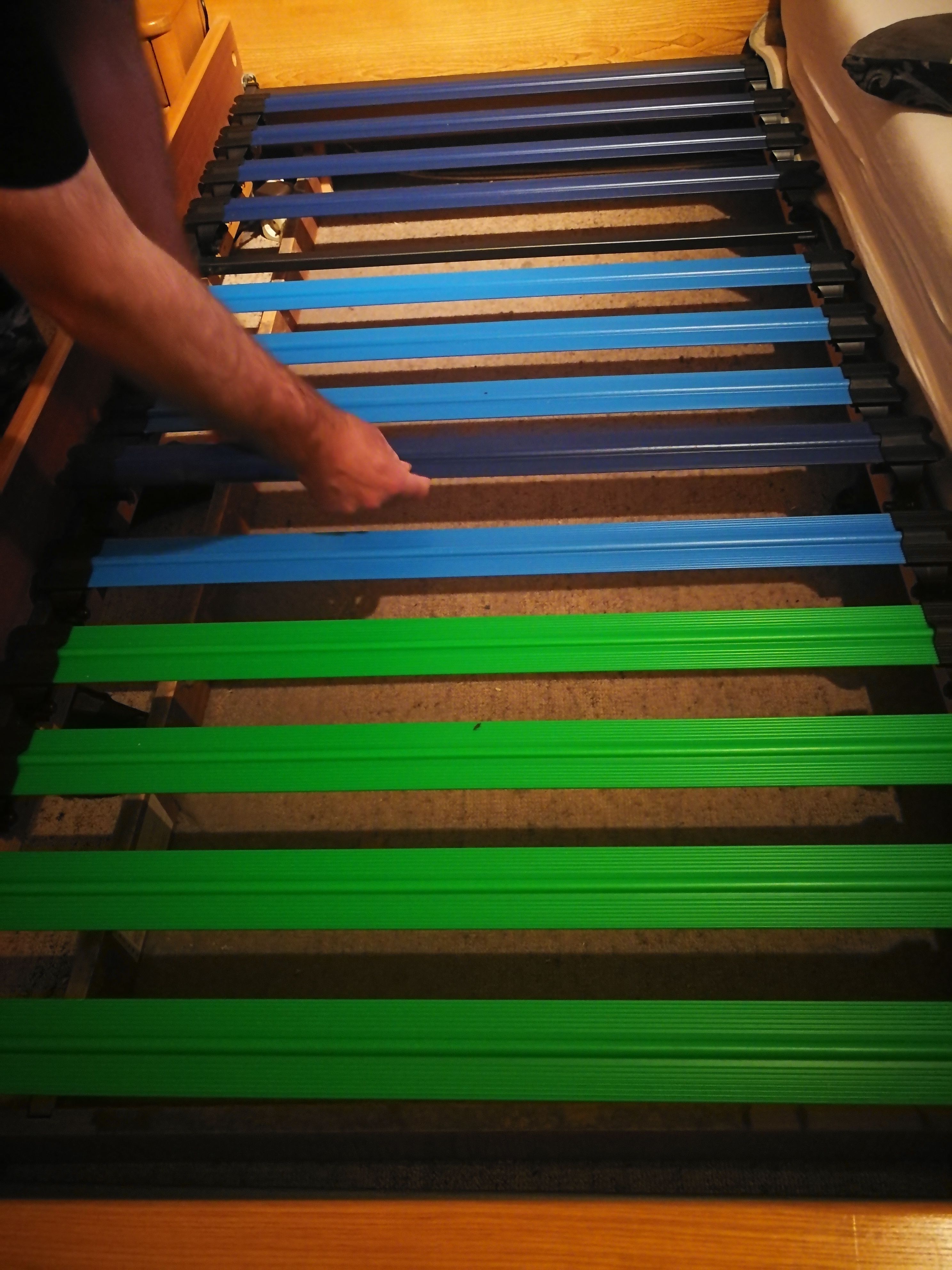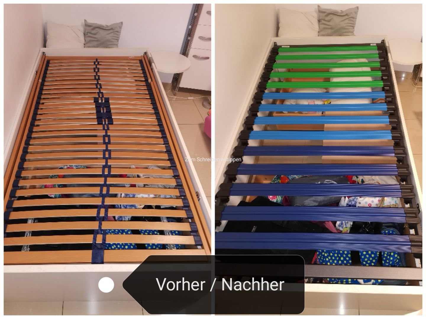 Ich hab das Lattenrost die ersten Nächte so getestet wie es geliefert wurde. Nach ein paar Nächten habe ich gemerkt dass ich den Widerstand der einzelnen Latten ändern muss.