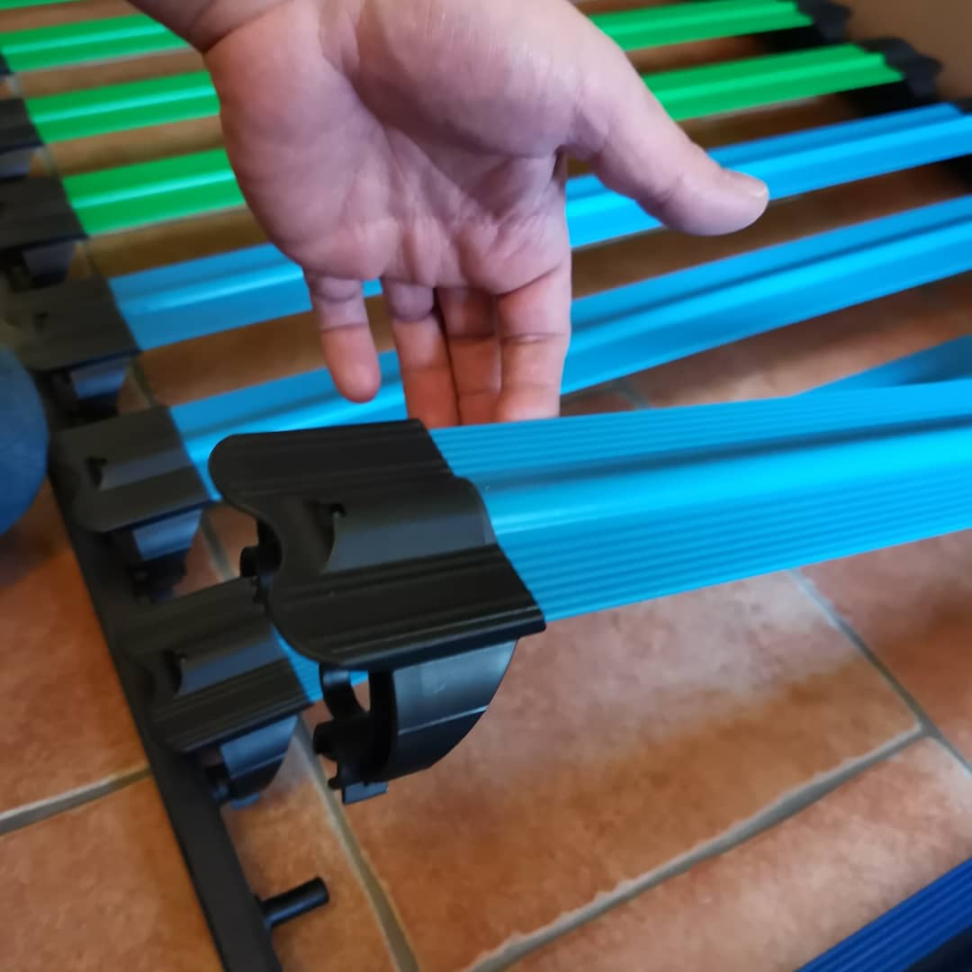 Nach ein paar Tagen im Einsatz in verschiedenen Anordnungen zeigt sich, dass die Leisten sich sehr stark auf den Liegekomfort auswirken können, obwohl man ja nicht direkt darauf liegt. Das Liegegefühl ist sehr gut, keine Rückenschmerzen und man fühlt sich beim Liegen "wie auf Wolken", da der Lattenrost ganz leicht federt. Dies kommt von den Glasfaserleisten, die einen hochmodernen Fiberglaskern haben, der mit Kunststoff eingefasst ist. Dadurch wird der Lattenrost sehr flexibel, langlebig, extrem stabil aber auch hygienisch. Zum Pflegen ist er ganz einfach mit einen feuchten Tuch zu reinigen.