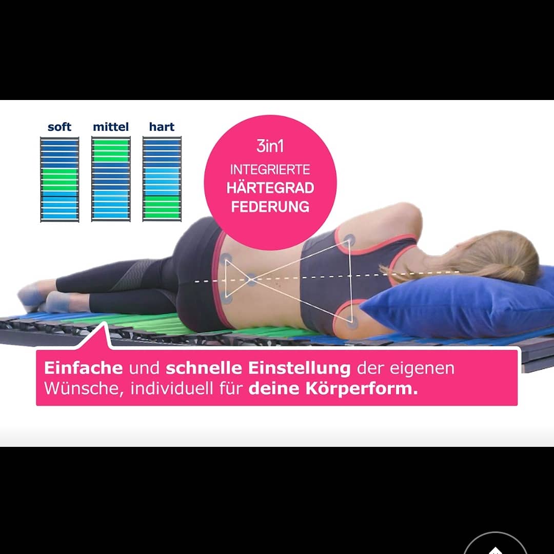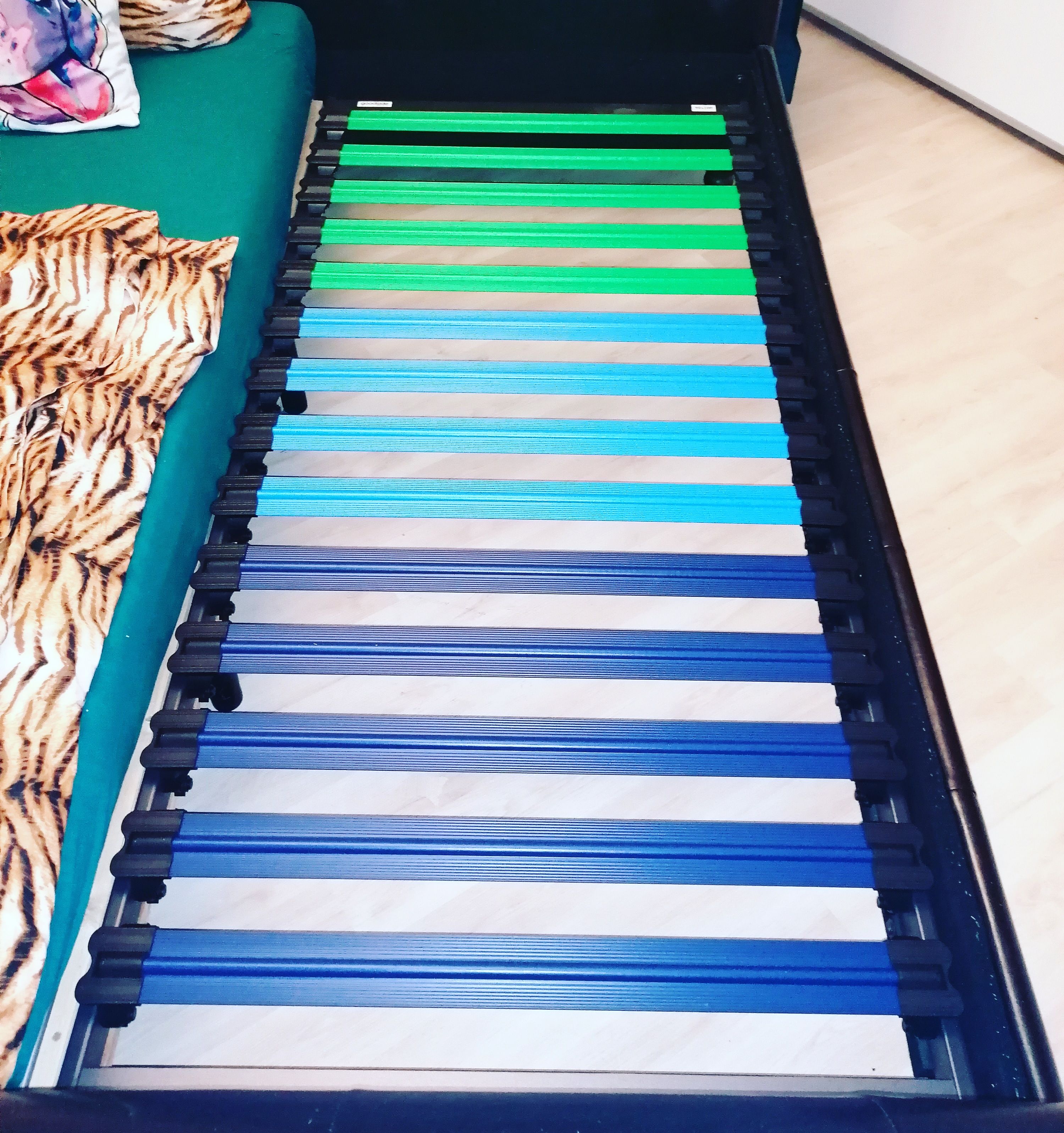 Und das ist das geniale an dem Lattenrost, man kann es ganz individuell auf sich einstellen, also bezogen auf den Härtegrad.