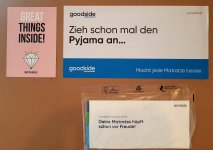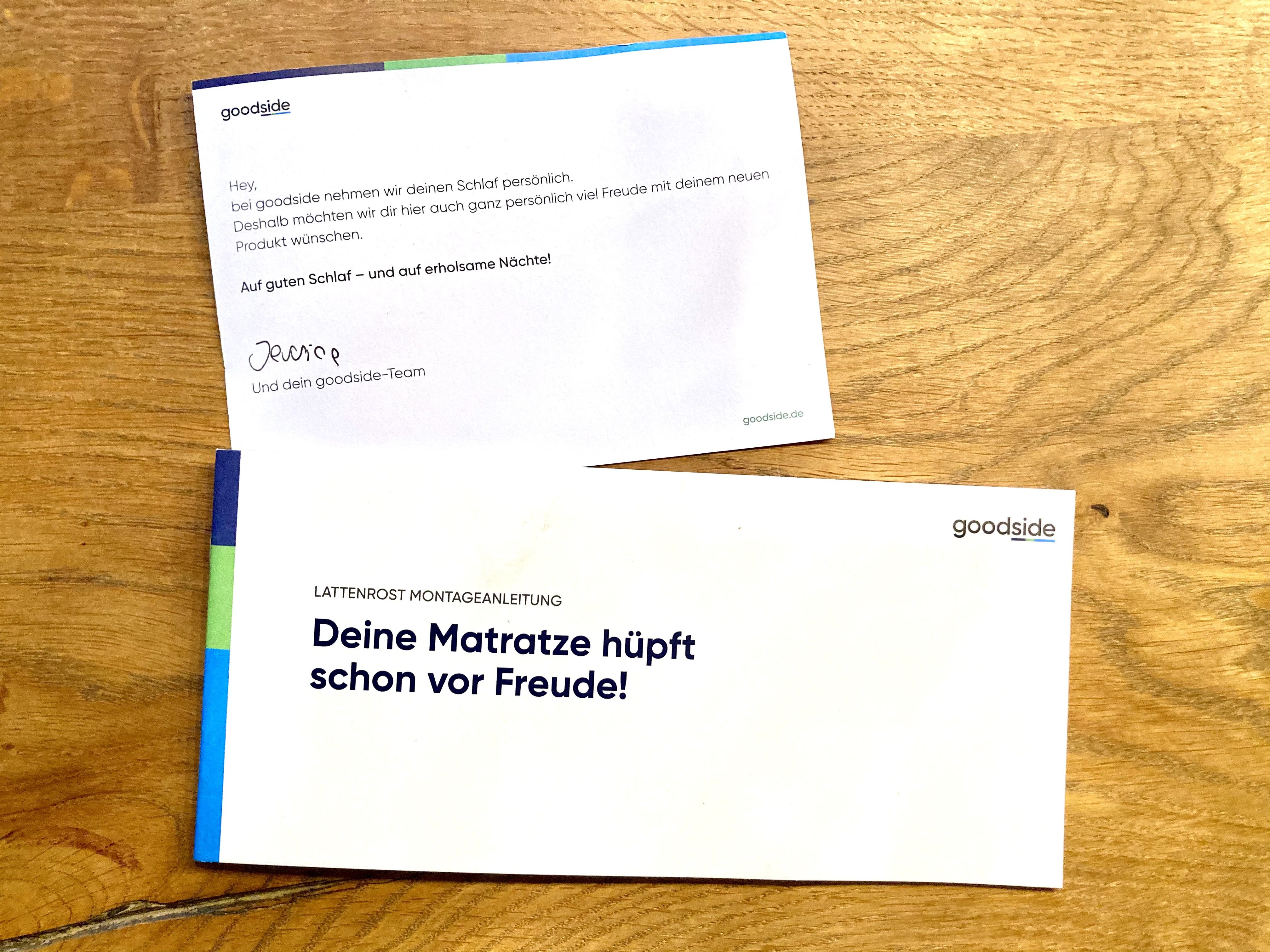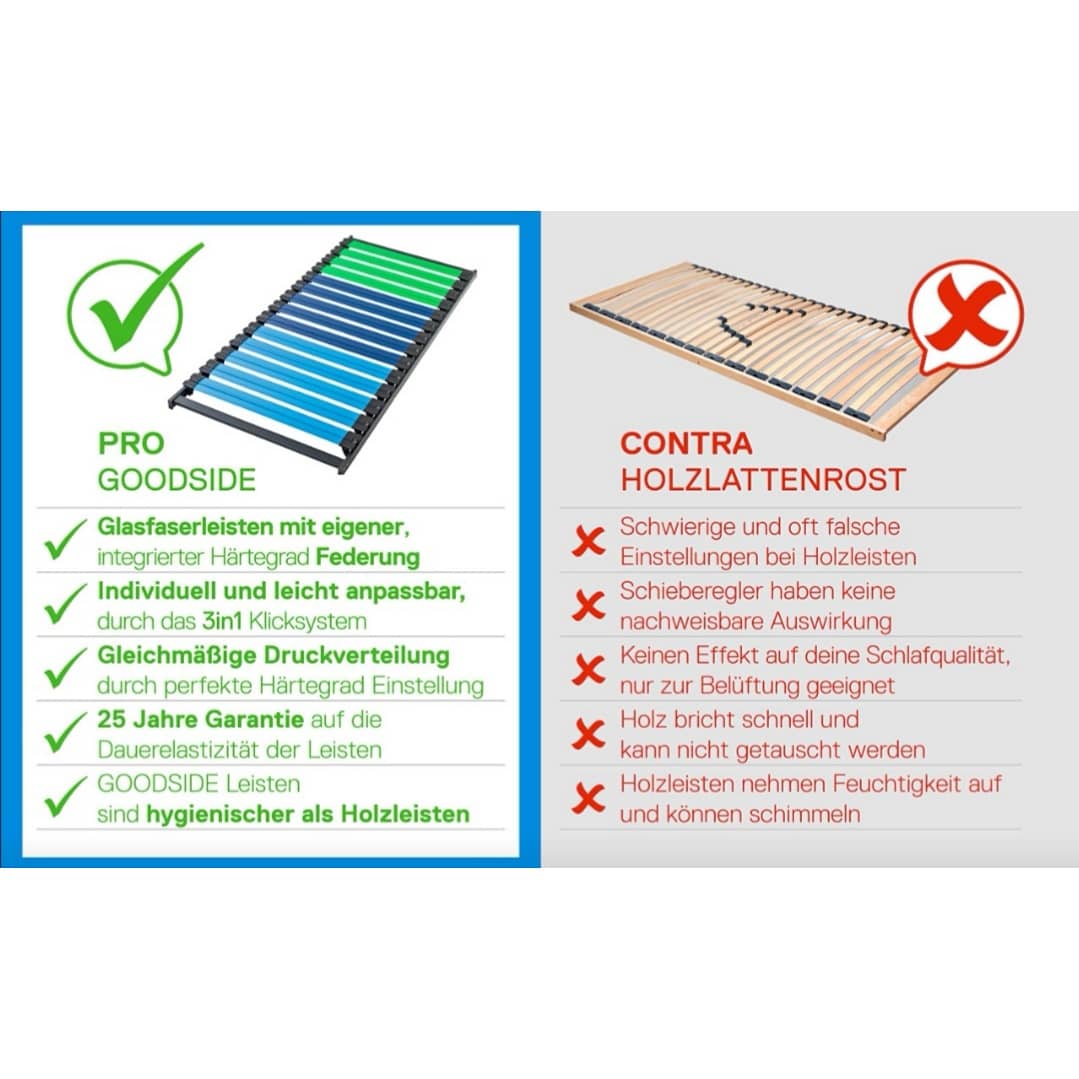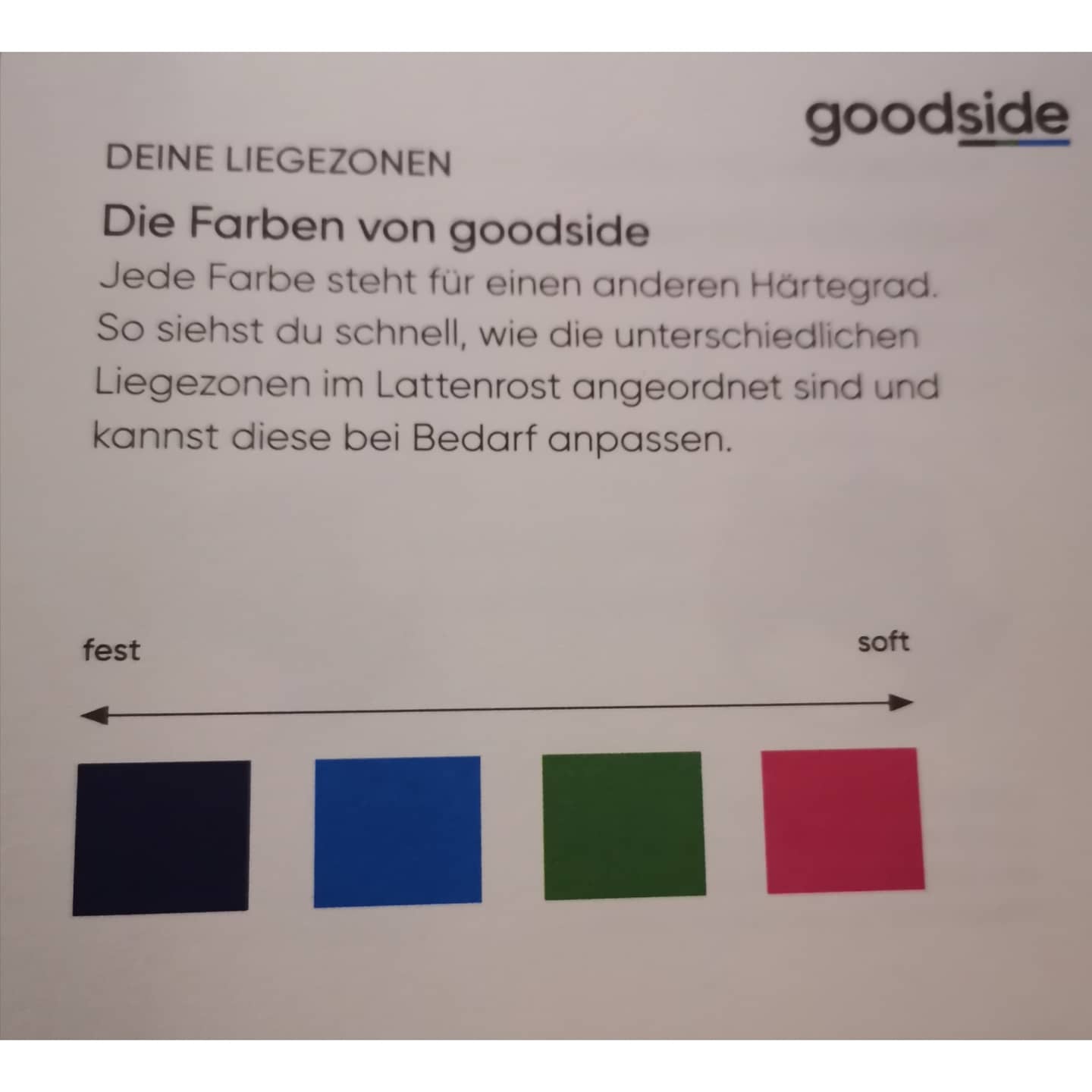 Bei goodside kann man auch die dazu passende Matratze, die sich perfekt den Liegezonen am Lattenrost anpasst. So steht es jedenfalls in der Montageanleitung.