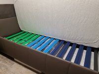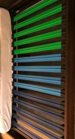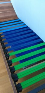 6. Nacht: Gestern noch einmal Streben vertauscht - so langsam nähert sich der Komfort dem Optimum an. Ich habe jetzt mit den neu verteilten 5 Zonen das Gefühl, jede Körperregion wird perfekt gestützt. Habe hervorragend geschlafen.