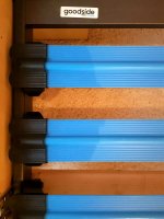 Gut verpackt kam der goodside match3 in einer Karton-Verpackung bei mir an und war, da er bereits fertig zusammengesetzt war, sehr schnell einsatzbereit. Die einzelnen Leisten können durch ein einfaches Klick-System schnell auf die individuellen Bedürfnisse eingestellt werden und sind bei Änderungen in der Anordnung schnell wieder an ihrem Platz. Standardmäßig kommt der match3 in der Anordnung "medium", bei mir wurde er aber auf "fest" umgestellt. Es gibt auch noch die Variante "soft". Dies ist alles in der leicht verständlichen und optisch sehr schönen Montageanleitung super beschrieben. Auch ein You-Tube-Video kann man über einen Barcode abzurufen, der aber leider bei mir auf keinem Gerät funktionierte. Aber man findet dort auch auf normalen Weg sehr leicht das Video.
