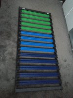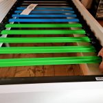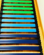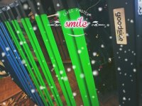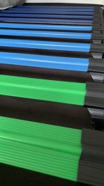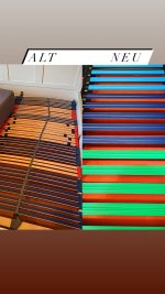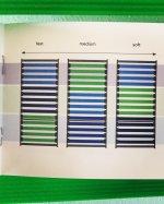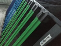 Das funktioniert, weil die einzelnen Latten aus einem Kunststoff Gewand mit einem inneren liegenden Fieberglas bestehen. Und heg nach Farbe der Latte variiert der Fieberglas Anteil im Kern, und das macht die Latte härter oder weicher