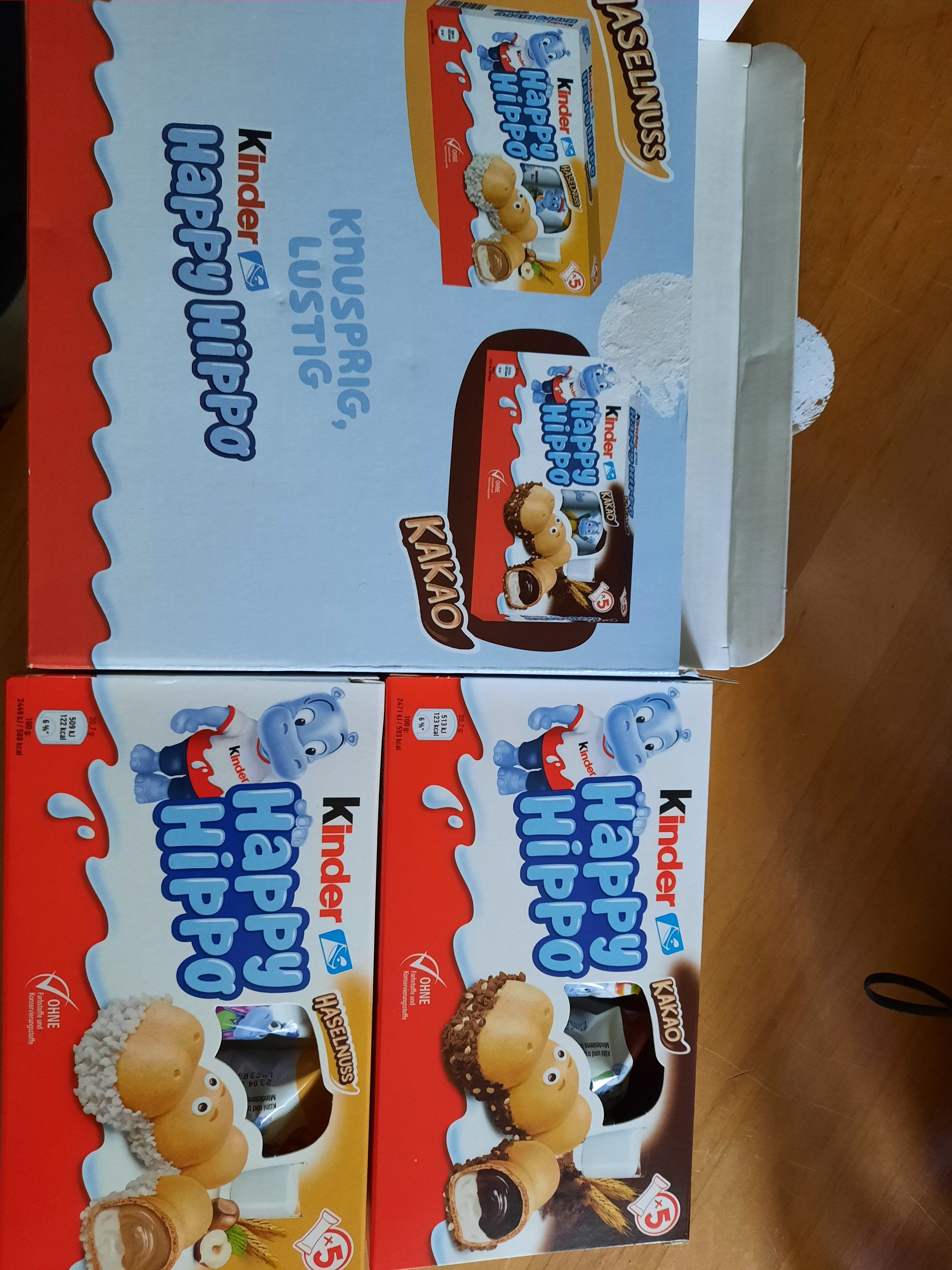 Wir lieben Happy Hippo und es ist immer ein Bestandteil im Süßigkeiten Schrank, wir haben meistens beide Sorten weil die meisten Kinder Kakao lieben und die Erwachsenen eher Haselnuss, knackige Ummantelung und cremiger Kern ist einfach perfekt , für die Kinder reicht immer eins bei den Großen gehen auch schon mal 2-3 über den Tisch :) schön finde ich die Form und das es mit Augen aussieht wie ein happy hippo und mit kleinen Schoko Streuseln umrandet ist :)