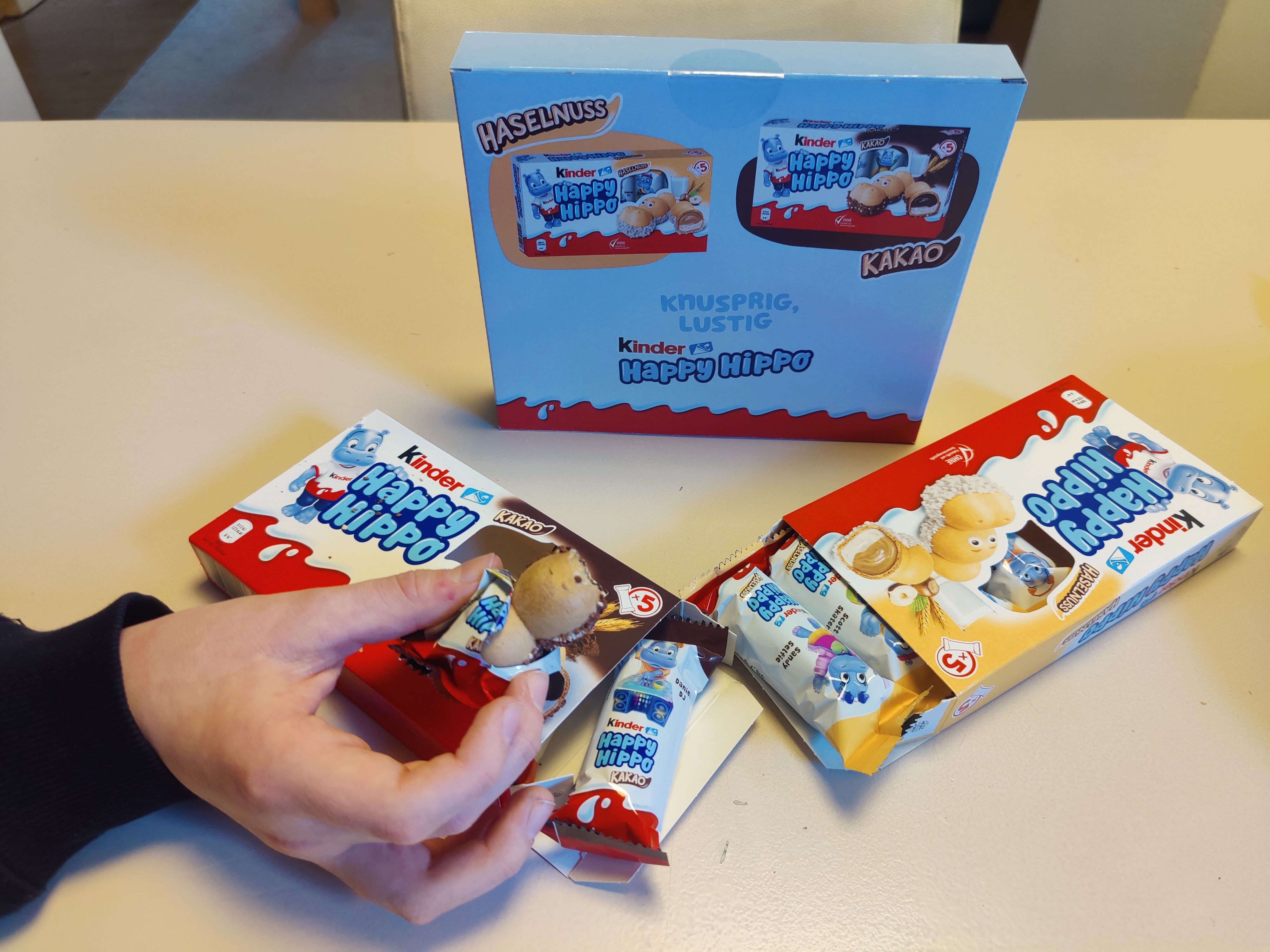 Kinder Happy Hippo wird hier von gross und klein geliebt. Der Geschmack ist legendär und wir naschen regelmäßig diese Leckerei.