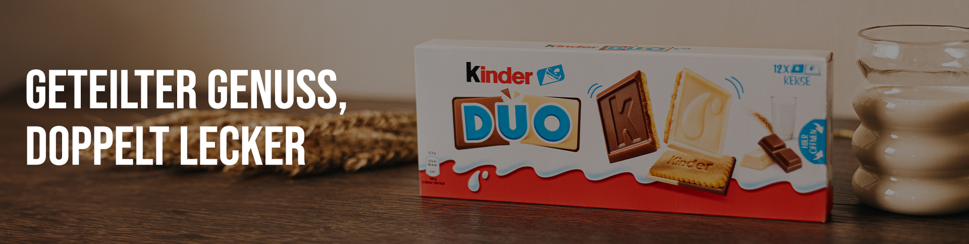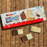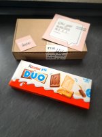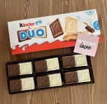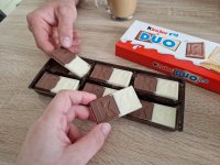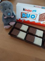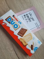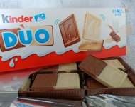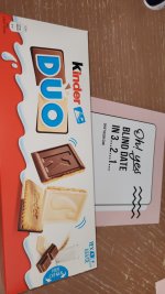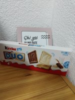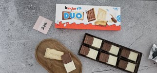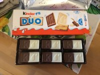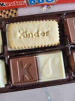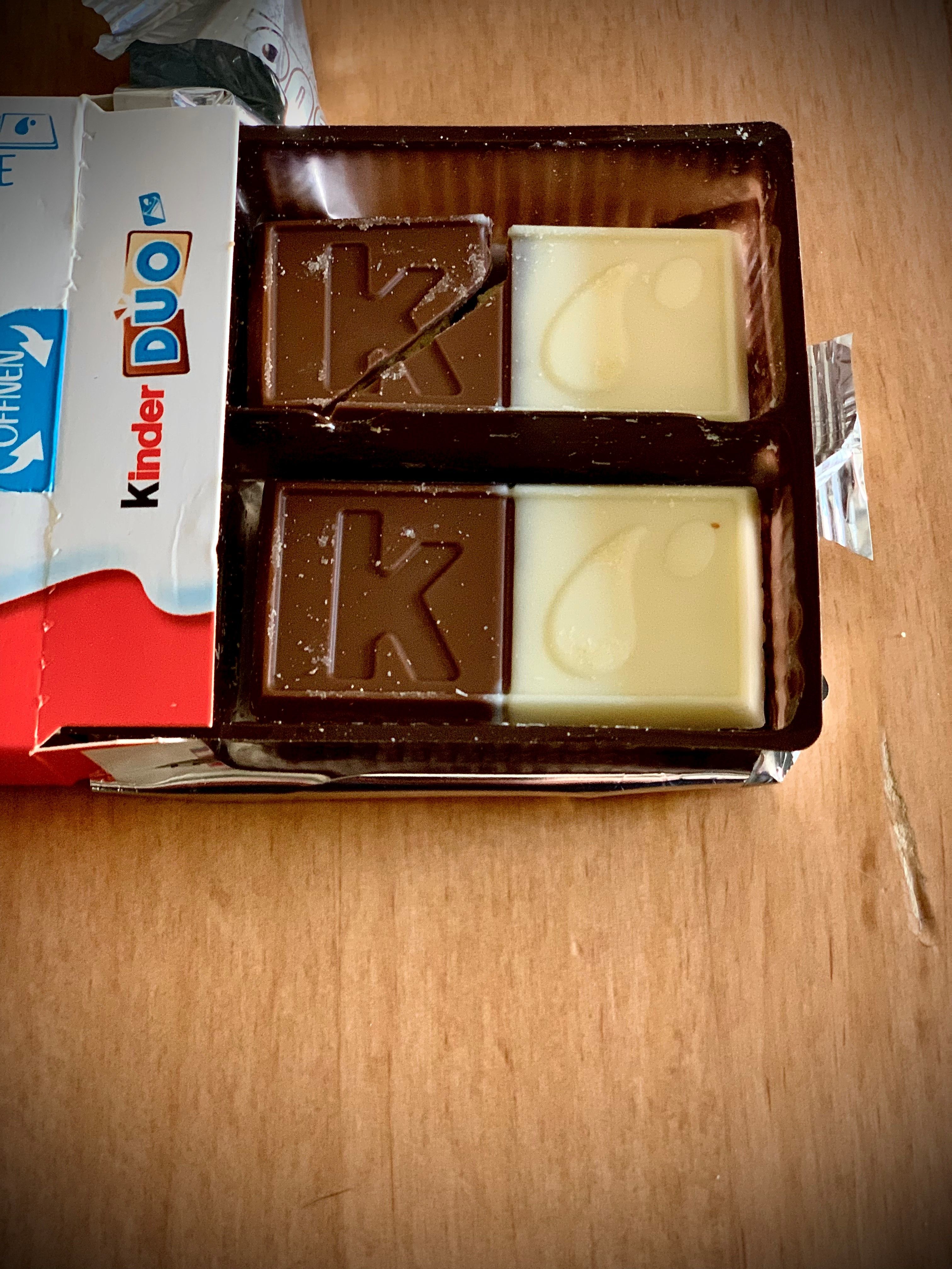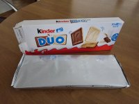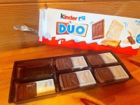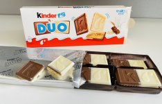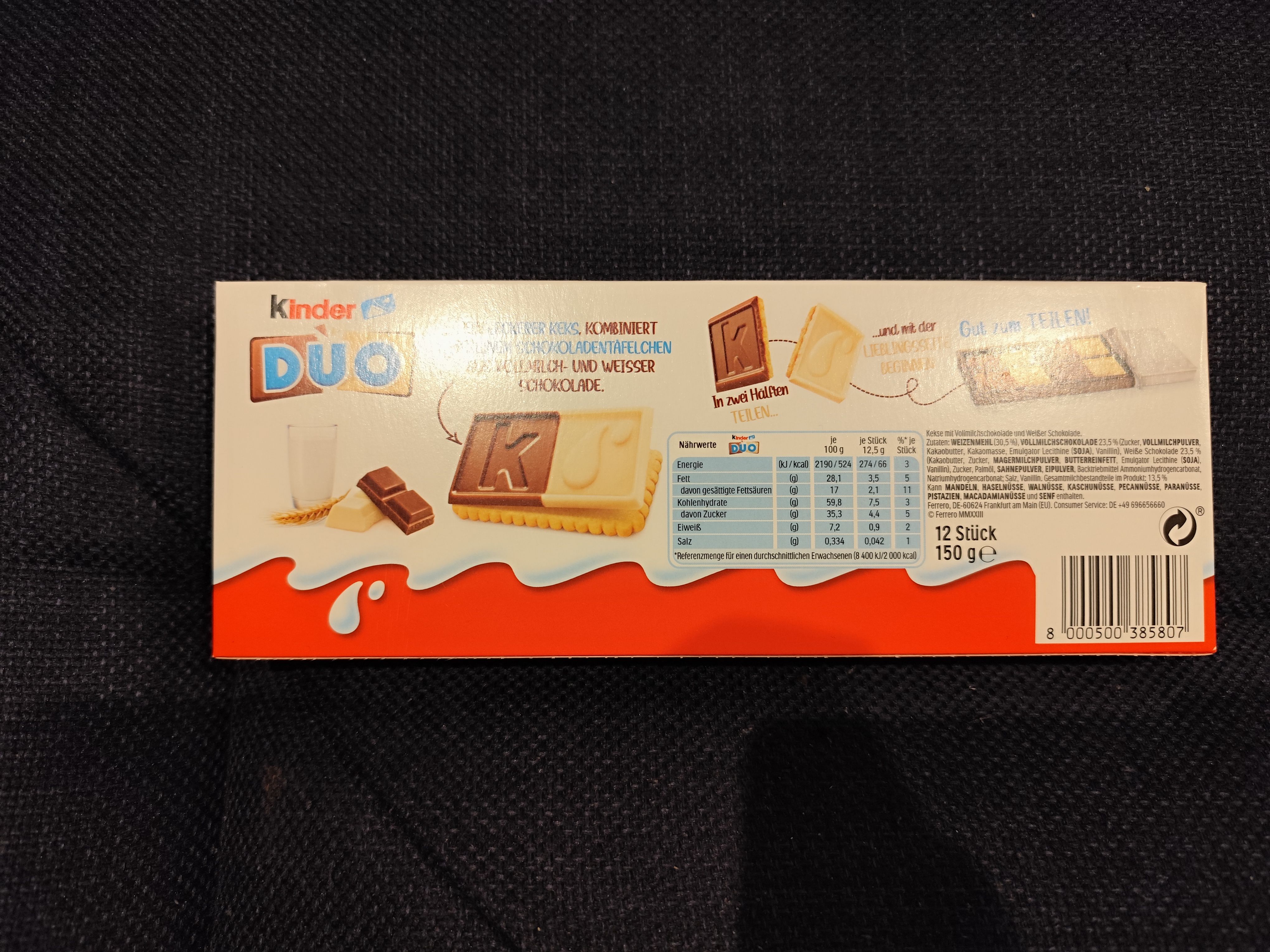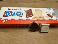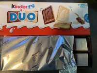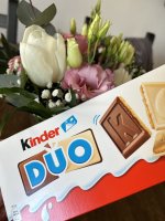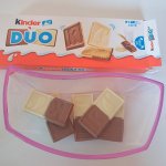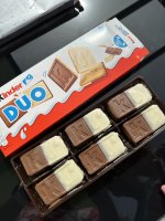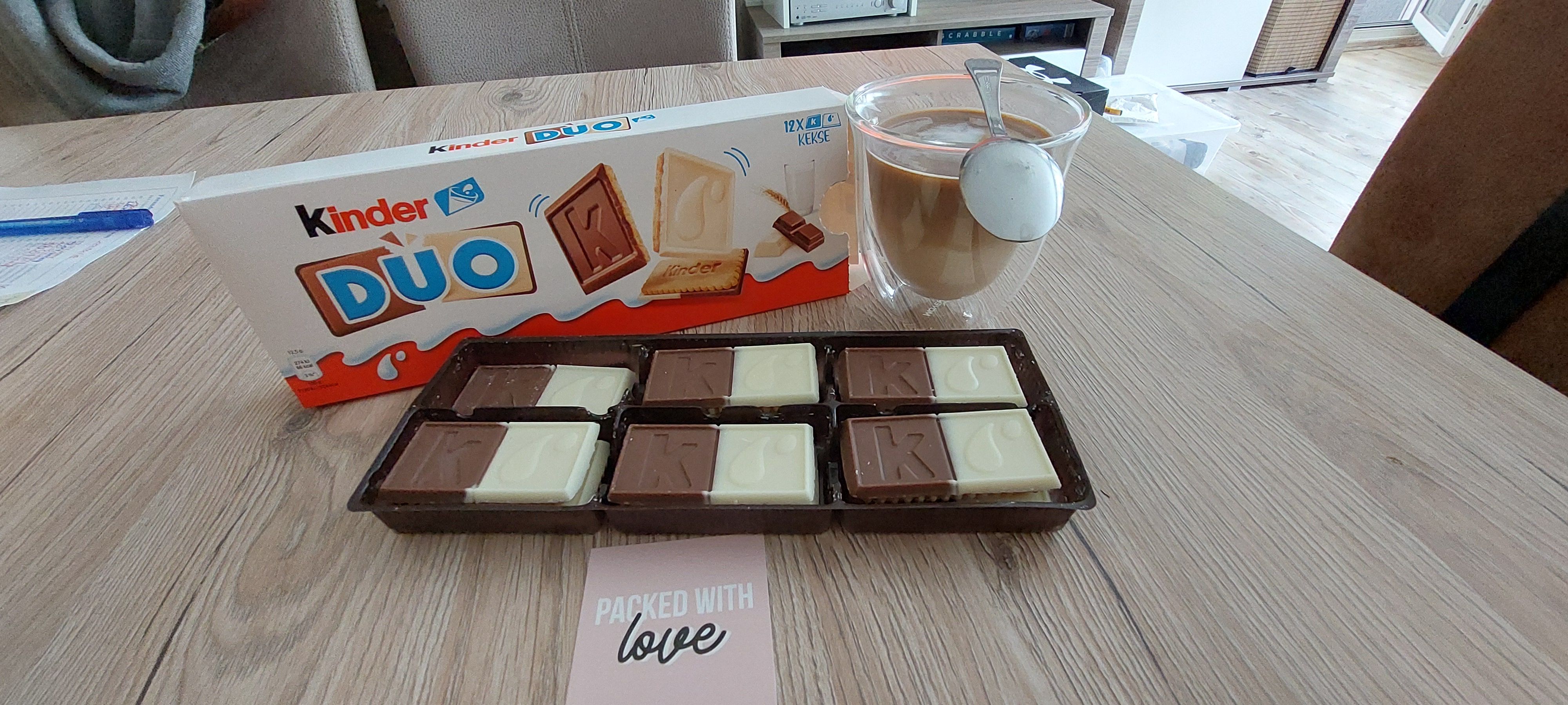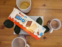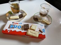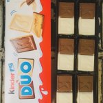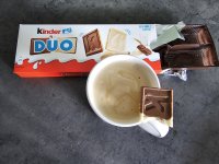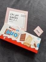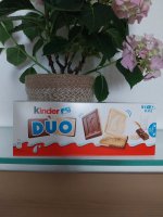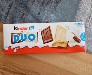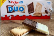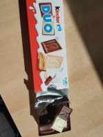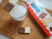 Kinder Duo der Marke Kinder Schoko trifft weiße Schokolade auf einen Keks ein Hochgenuss ideal zum Tee oder Kaffee oder in Milch getaucht einfach lecker. Der Keks ist schön knusprig leckere Schokolade in weiß und in braun... ideal auch zum Teilen
