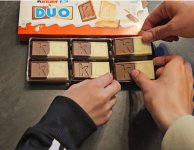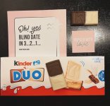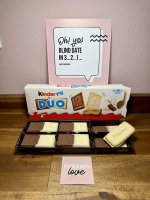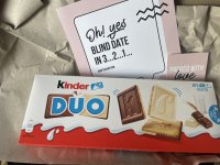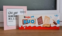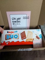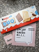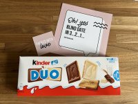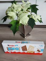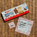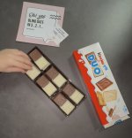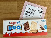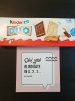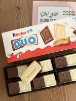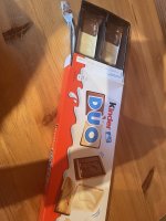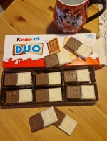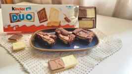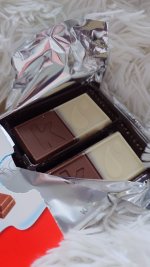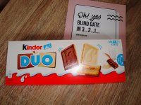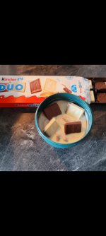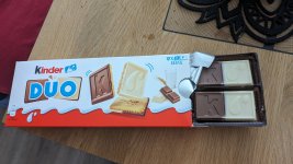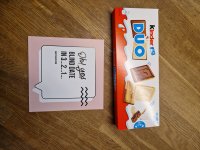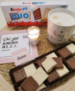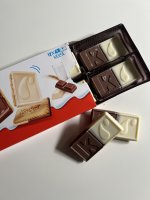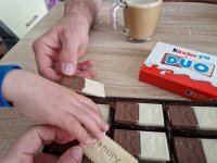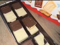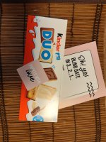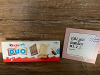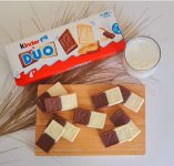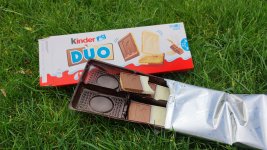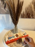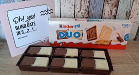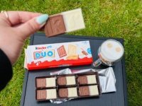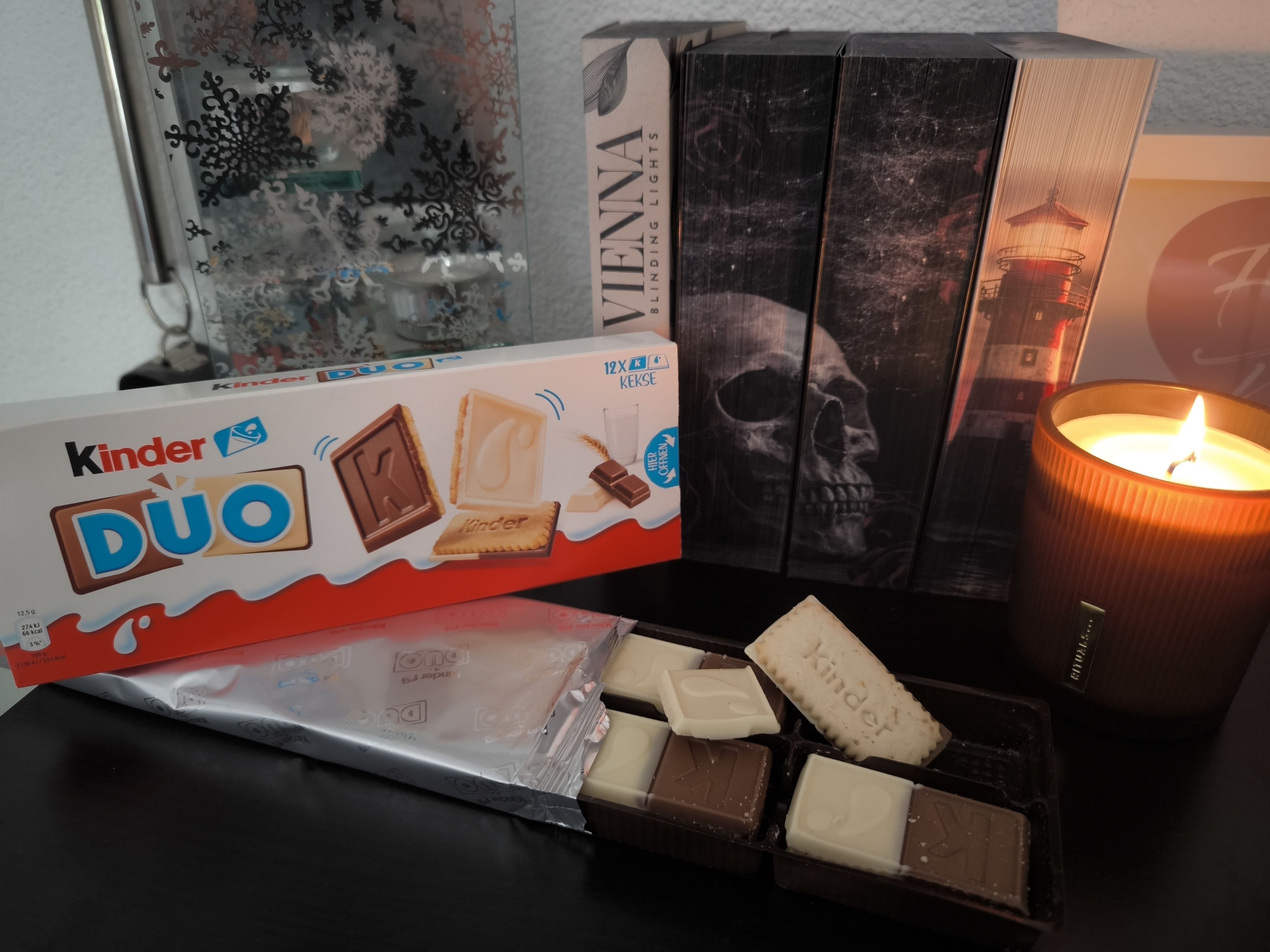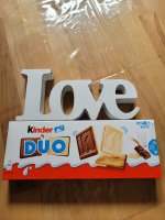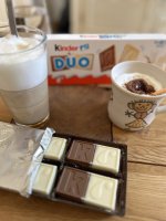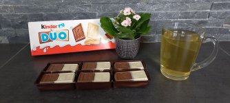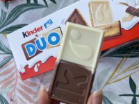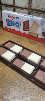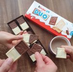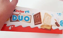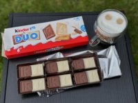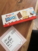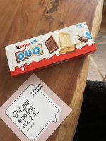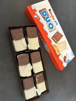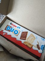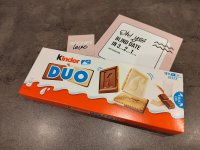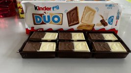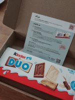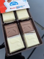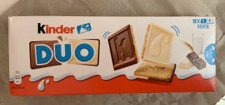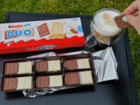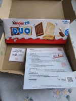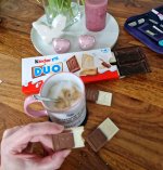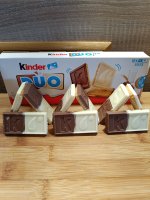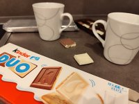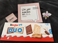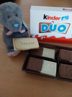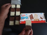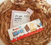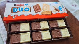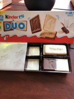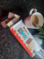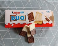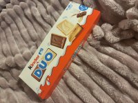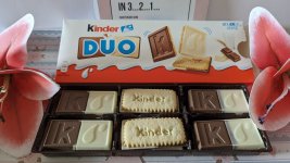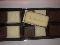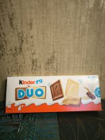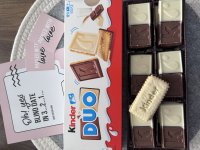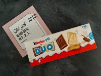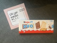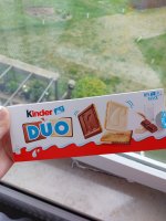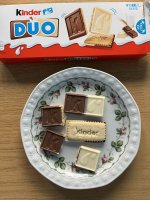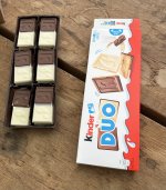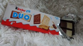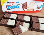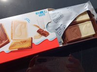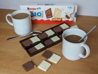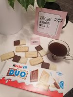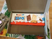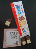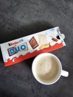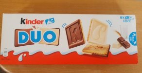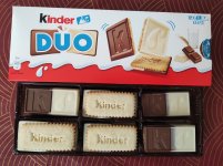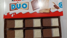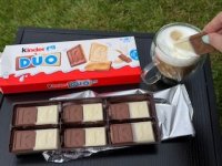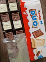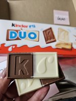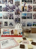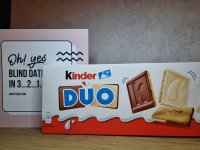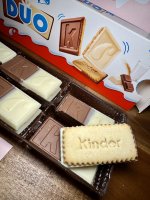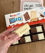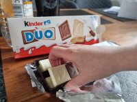 Kinder Duo der Marke Kinder Schoko trifft weiße Schokolade auf einen Keks ein Hochgenuss ideal zum Tee oder Kaffee oder in Milch getaucht einfach lecker. Der Keks ist schön knusprig leckere Schokolade in weiß und in braun... ideal auch zum Teilen