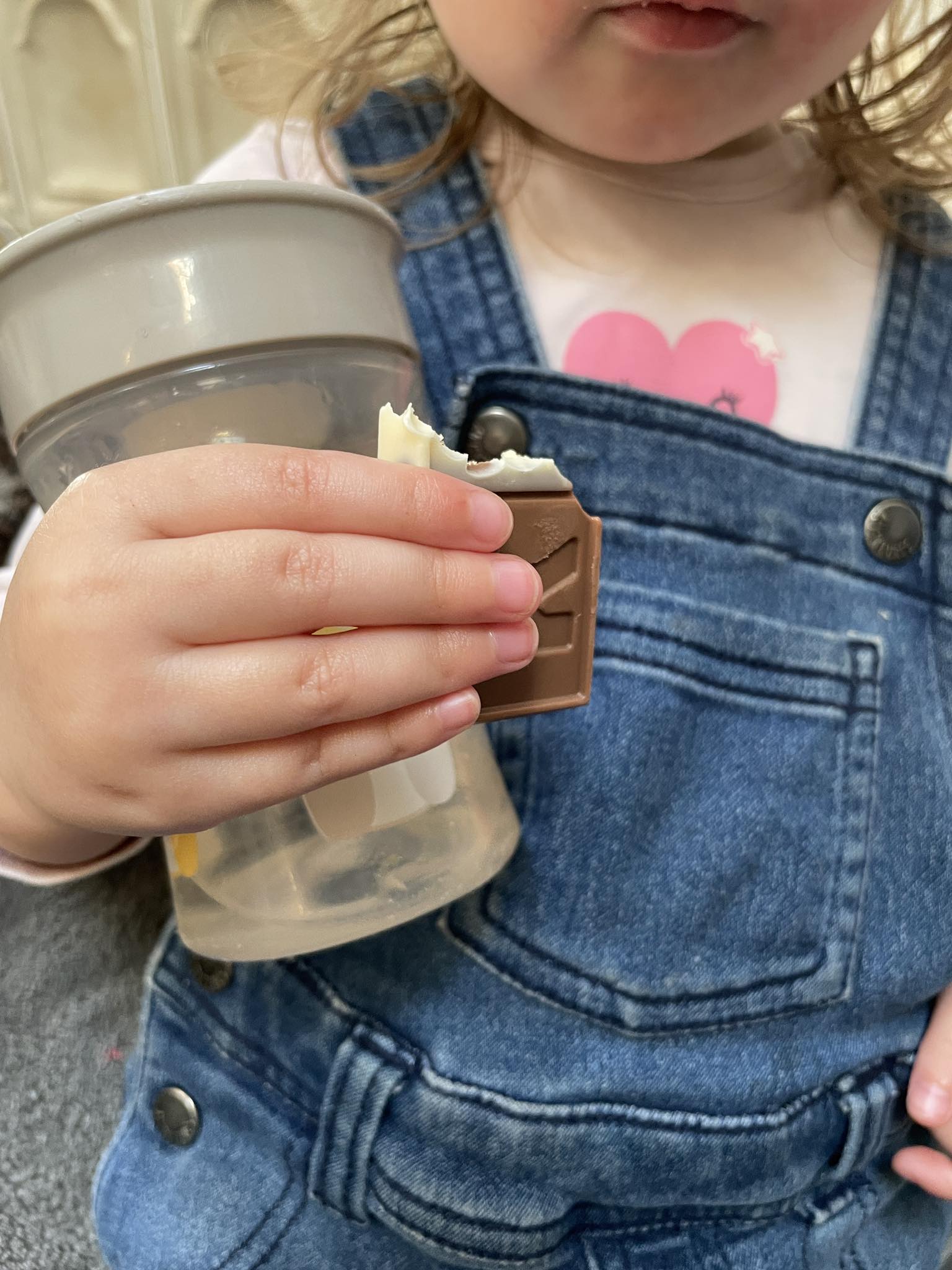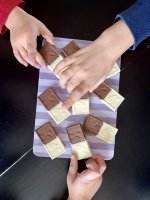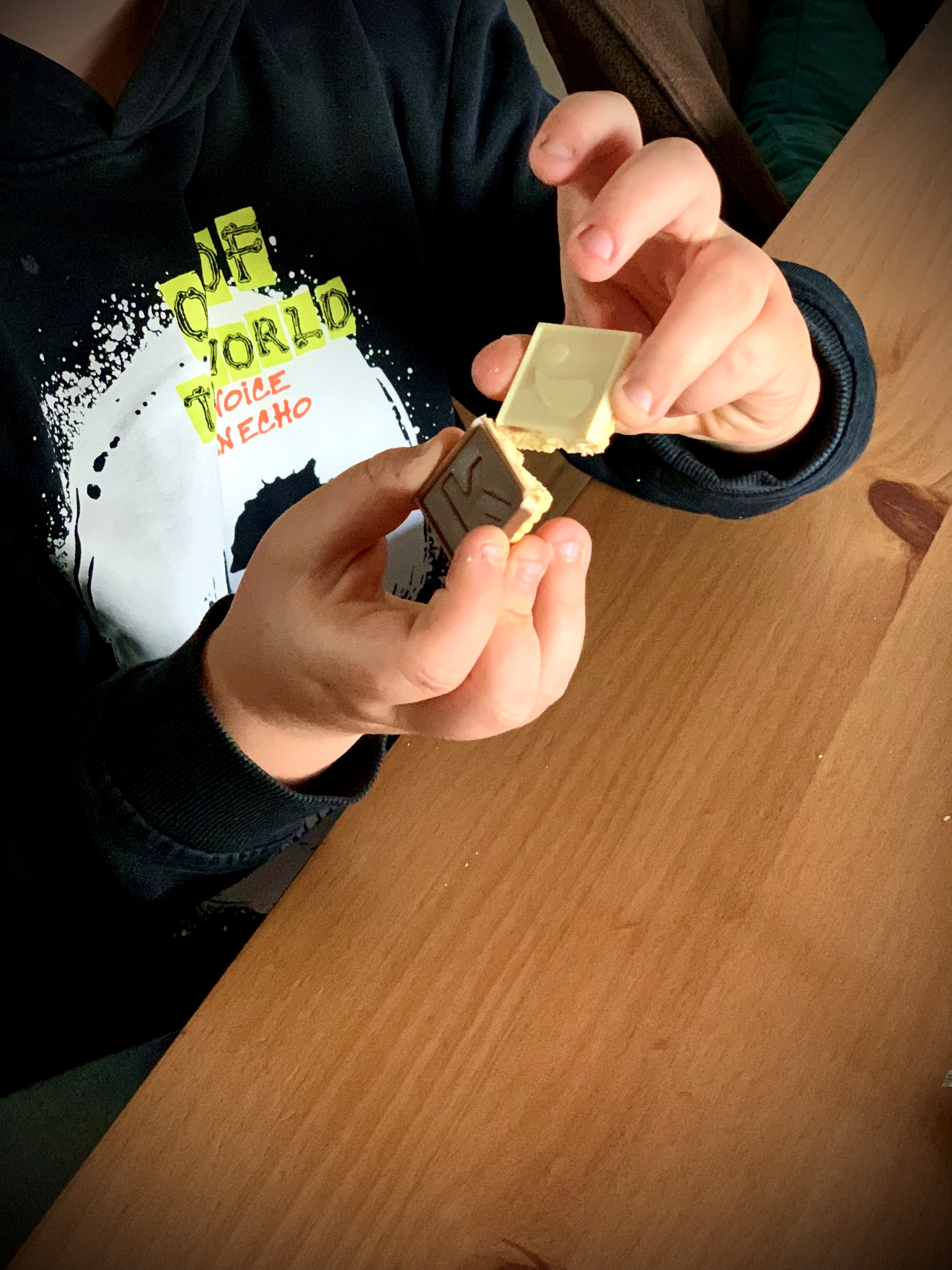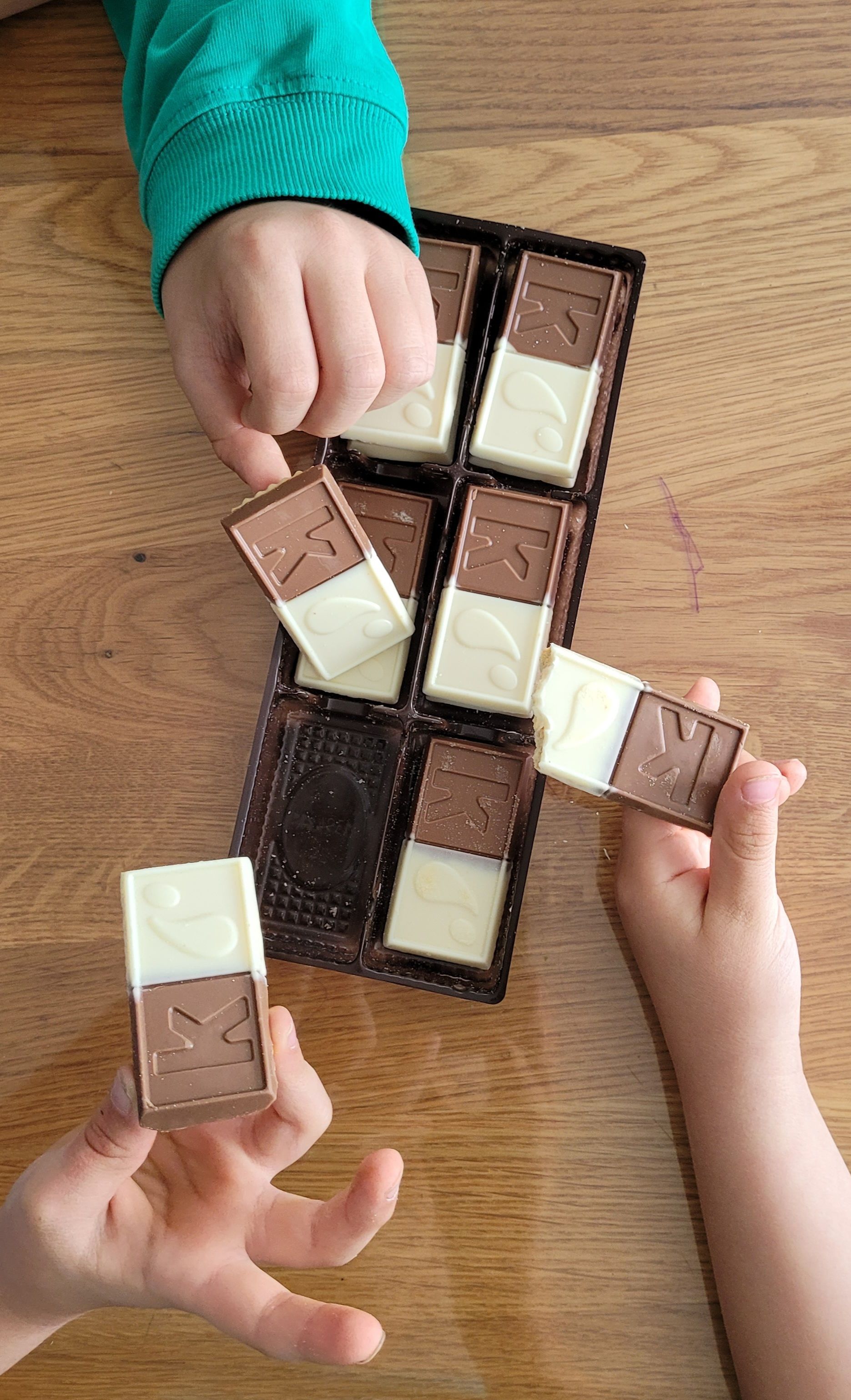 • Die Schokolade schmilzt recht schnell an den warmen Kinderhänden.