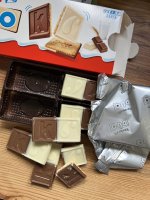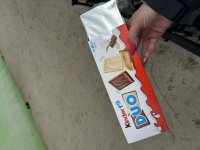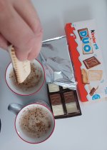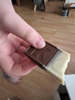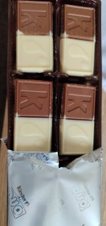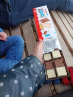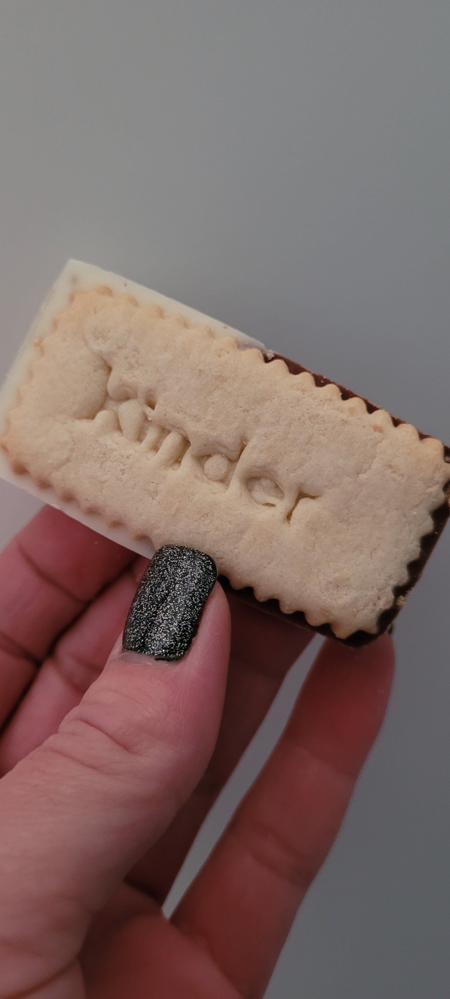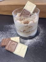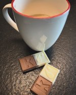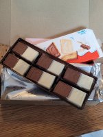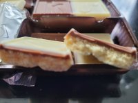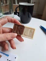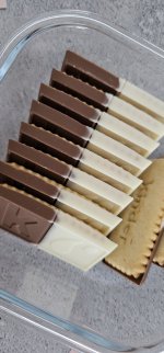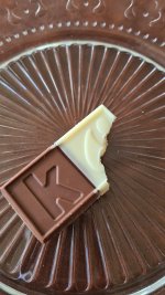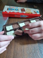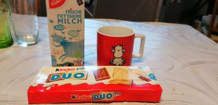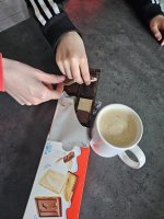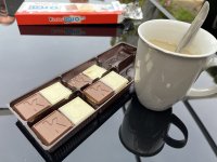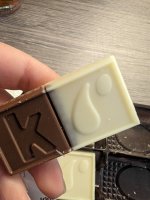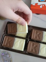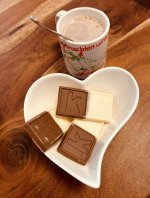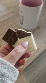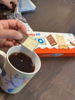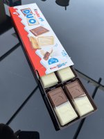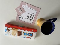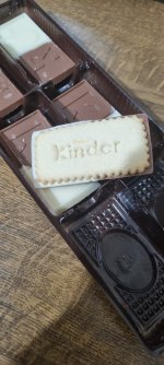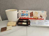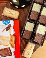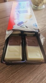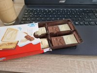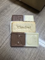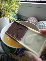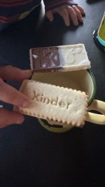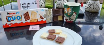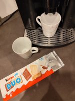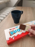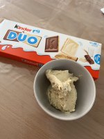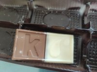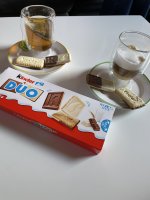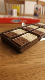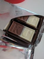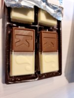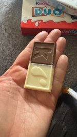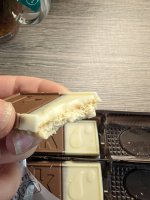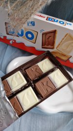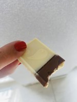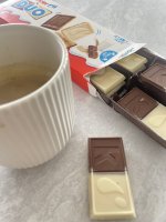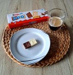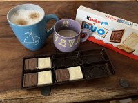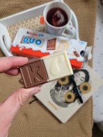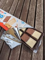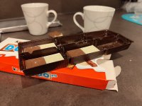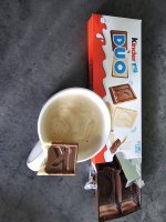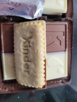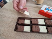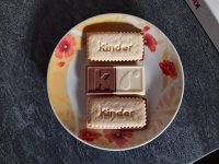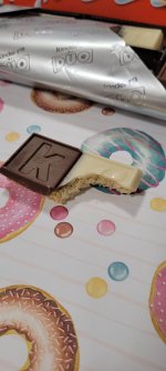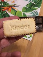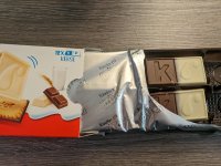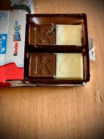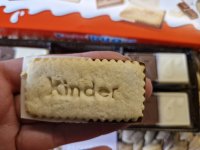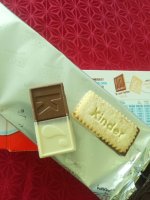 Der Keks ist schön knusprig und von der typischen Kinderschokolade auf einer beschichtet. Eine Hälfte Vollmilch-Schokolade, eine Hälfte Weiße Schokolade. Für sich genommen schmeckt jeder Bestandteil sehr gut. Schmeckt man alle Komponente zusammen, fehlt ein wenig der Kontrast zwischen dem Keks und der Schoko. Für mich funktioniert er besser bei Keks und Zartbitterschokolade. 20240413_152621.jpg