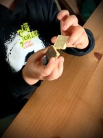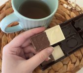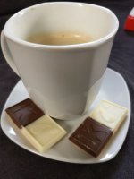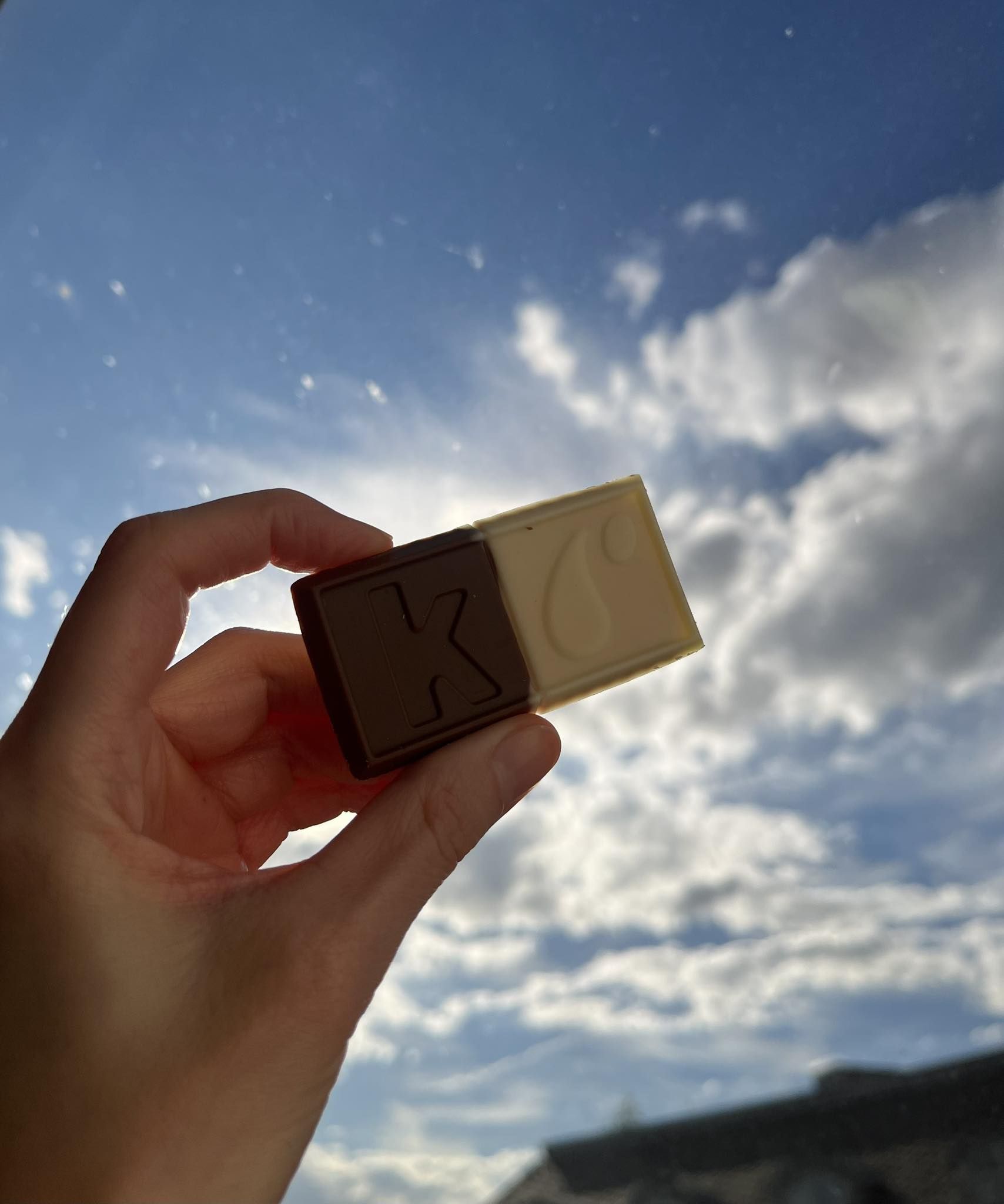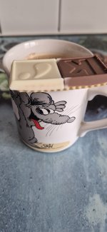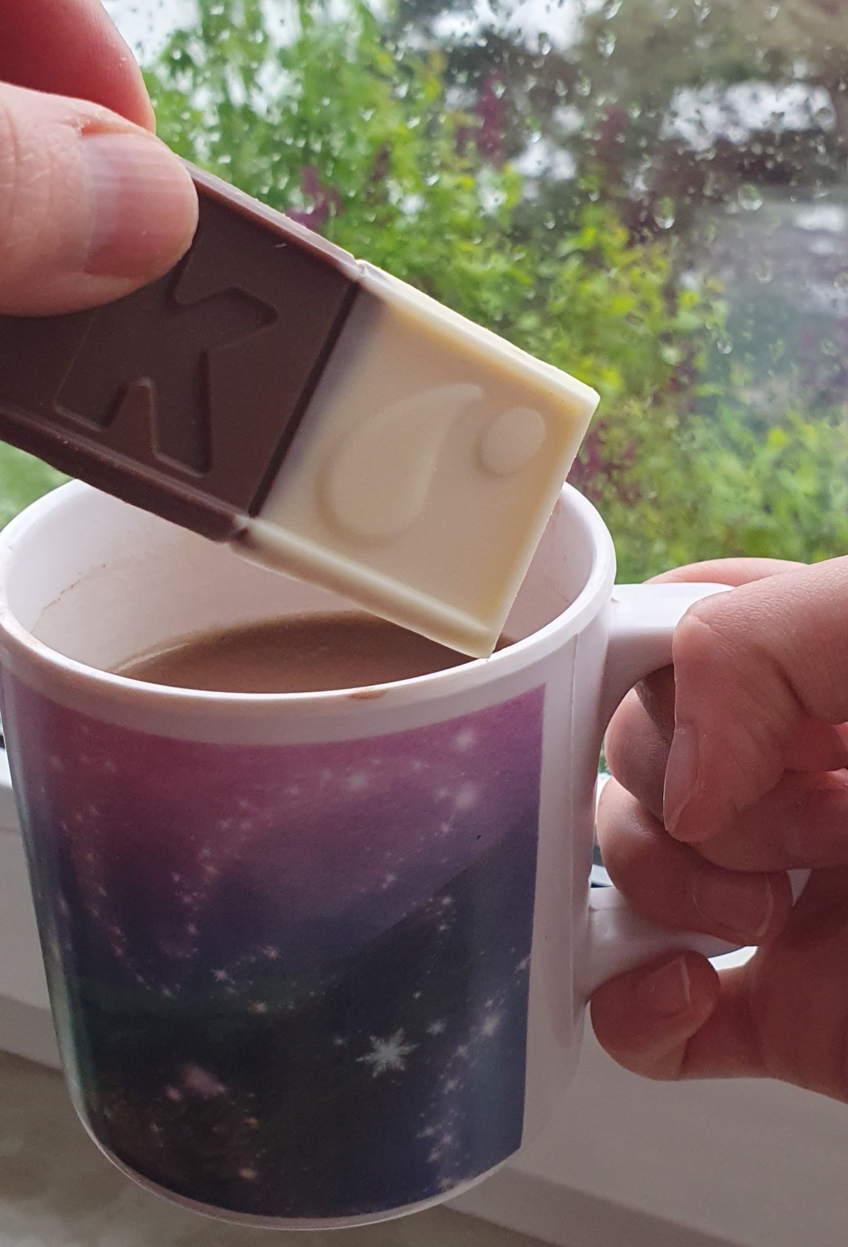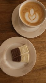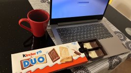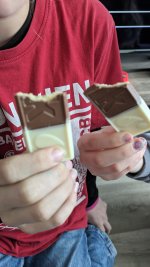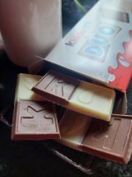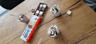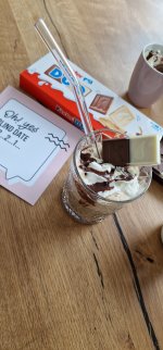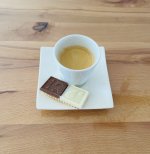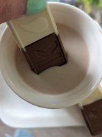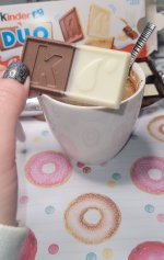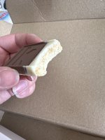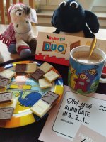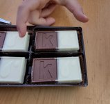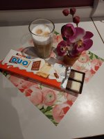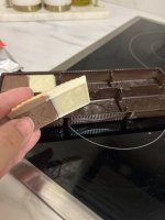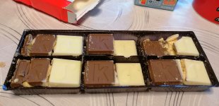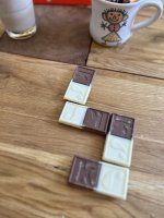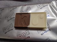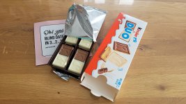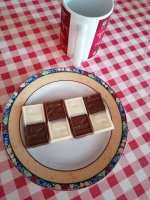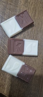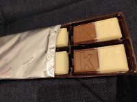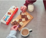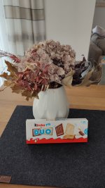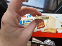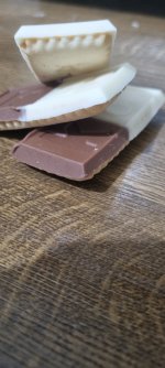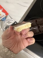 Der Keks ist schön knusprig und von der typischen Kinderschokolade auf einer beschichtet. Eine Hälfte Vollmilch-Schokolade, eine Hälfte Weiße Schokolade. Für sich genommen schmeckt jeder Bestandteil sehr gut. Schmeckt man alle Komponente zusammen, fehlt ein wenig der Kontrast zwischen dem Keks und der Schoko. Für mich funktioniert er besser bei Keks und Zartbitterschokolade. 20240413_152621.jpg