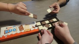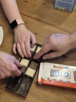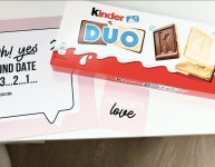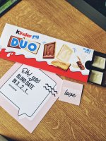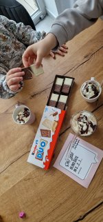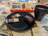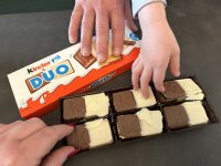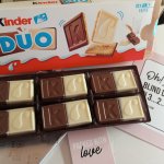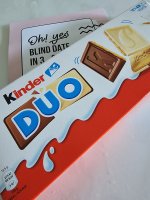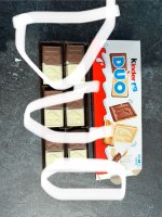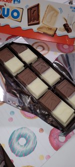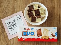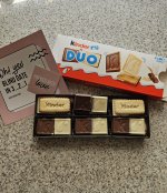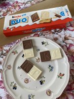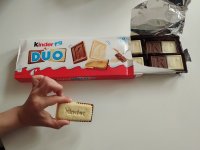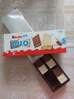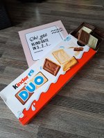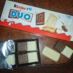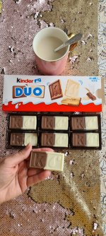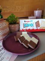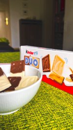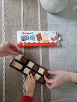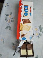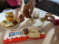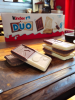 Kinder Duo ist für die ganze Familie. Die zwei verschiedenen Schokoladensorten gefallen uns auch sehr gut. Die Füllung ist sehr cremig und auch sehr lecker