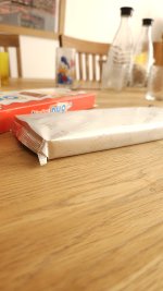 Nun kam dieser Test, das strahlen in den Augen ganz gross! Die Verpackung ist super gehalten. Erst der Umkarton und darin dann in eine Art Alufolie die Kekse, welche immer zu zweit in einer Plastikschale liegen. Gut finden wir, daß hier auf zusätzliches verpacken verzichtet wurde. Die Schokolade schmeckt wenn man drum herum knuspert, wie die vom Ü Ei. Jedoch finde ich als Erwachsene den Keks sehr geschmacksneutral. Selbst wenn ich ihn mit der Schokolade zusammen esse, also normal abbeisse, schmeckt es wie ein älterer Keks. Habe tatsächlich auf das MHD geschaut. Es lag aber nicht daran. Das aber aus Sicht einer Erwachsenen. Das Kind findet es schmeckt total lecker und ich musste sie beim essen bremsen, sonst wäre die Packung im nu leer gewesen.