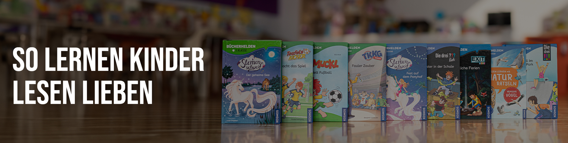 Mit den Lieblingshelden auf Entdeckung gehen und mit den Bücherhelden lesen lernen: Die Bücherhelden-Reihe von KOSMOS erleichtert Kindern der 1. und 2. Schulklasse das Lesenlernen. Spannende Geschichten machen aus Leseanfängern Bücherhelden.