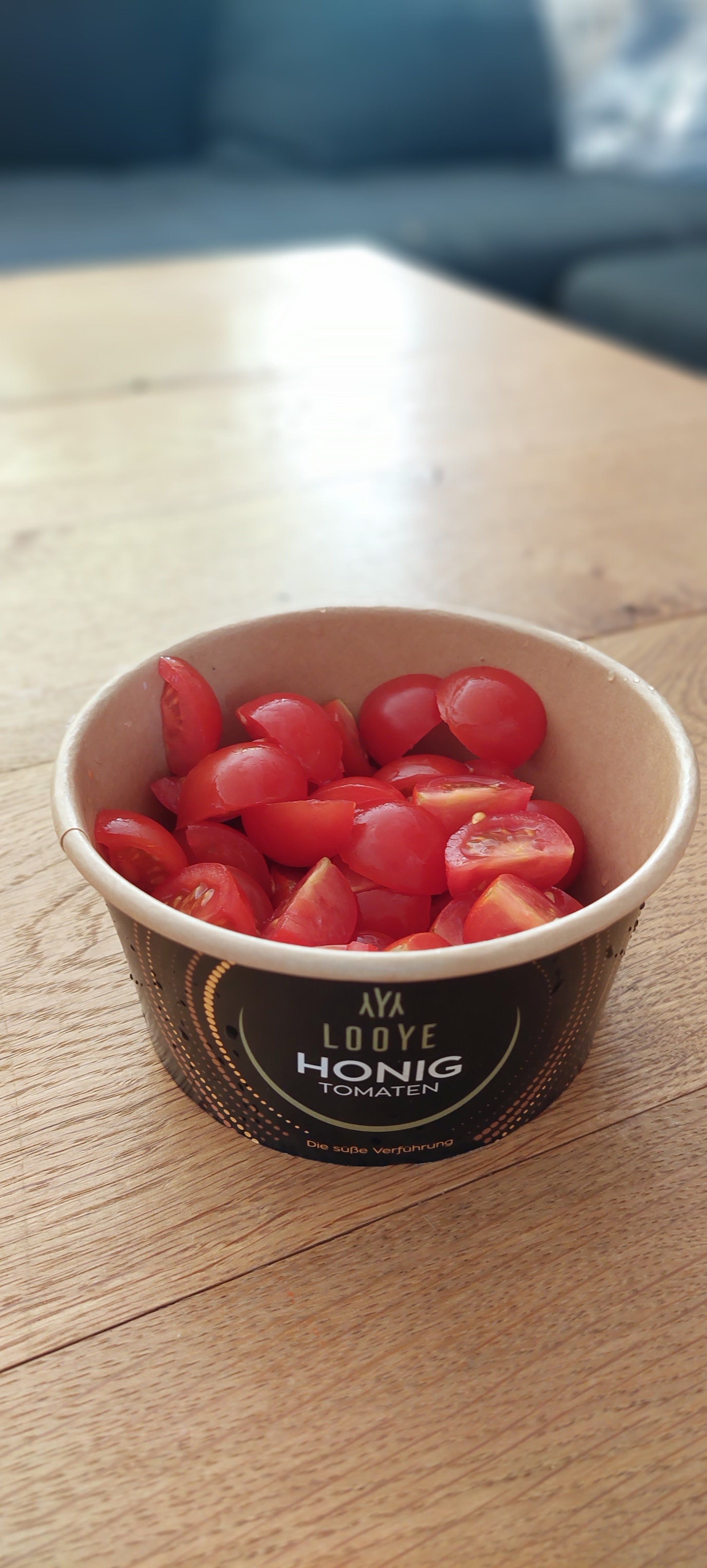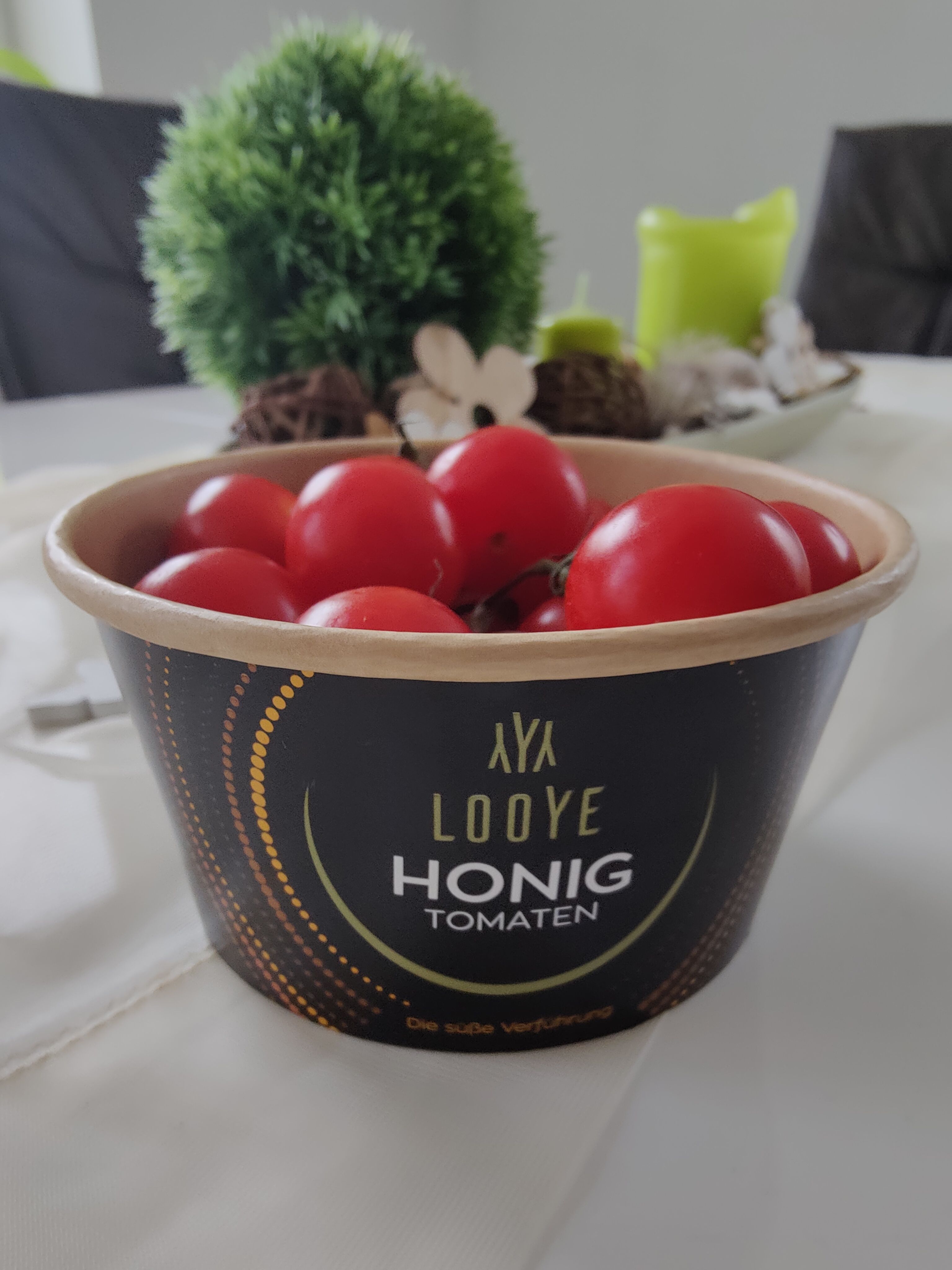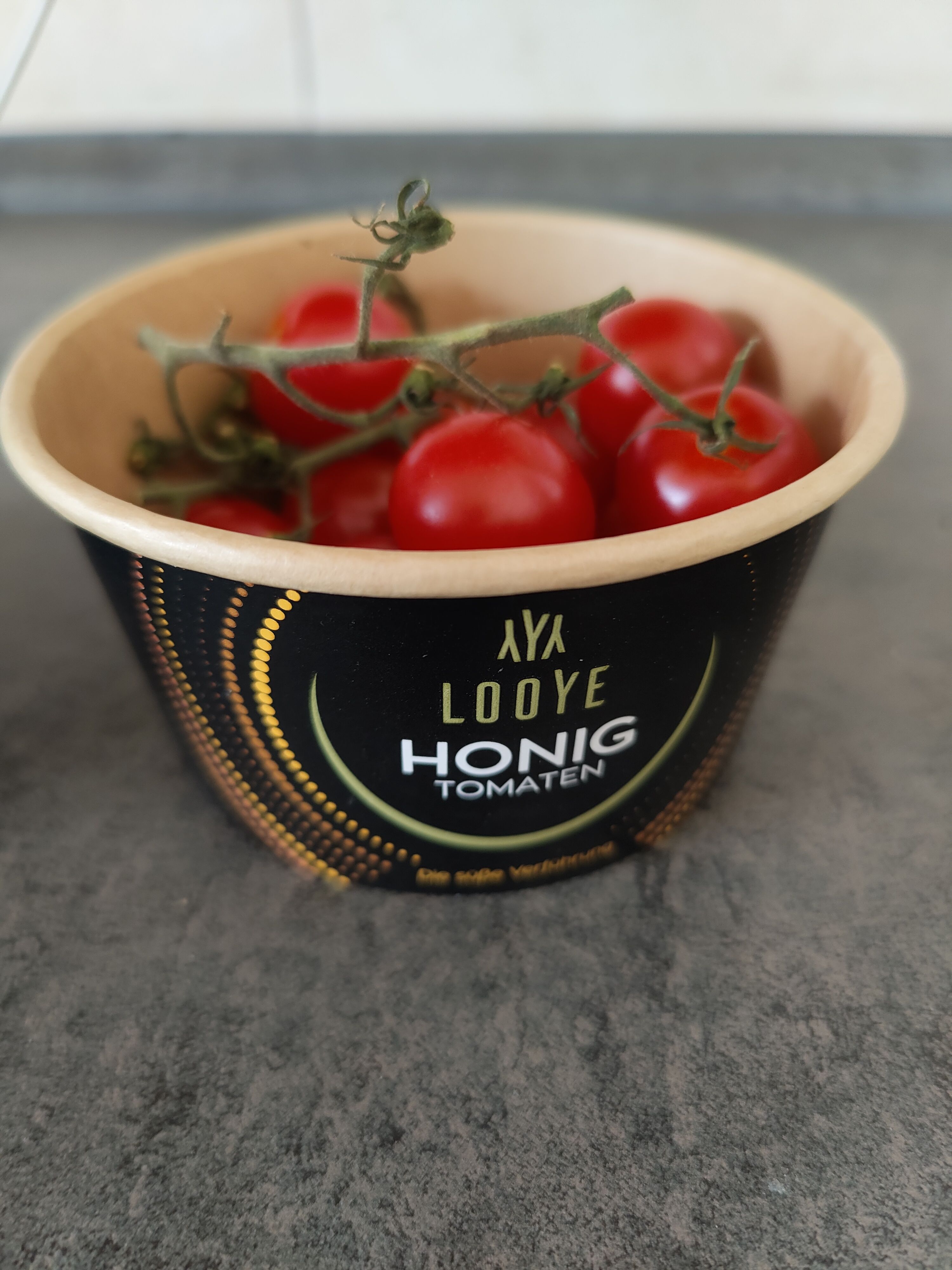 Der Preis von fast 5 Euro für 180 Gramm kann einen schon abschrecken, aber wenn man erst mal einen Tomate probiert hat, merkt man schnell, dass man die Looye Honigtomaten nicht mit den günstigen Supermarkt Cocktailtomaten vergleichen kann. Die Honigtomaten schmecken süß und intensiv, egal ob als Beilage, Nudelsoße oder auf der Pizza. Das makellose Aussehen macht Natur auch was her. Die Honigtomaten werden ab sofort öfter in unserem Einkaufswagen landen 🥰IMG_20220617_165926_237.jpg