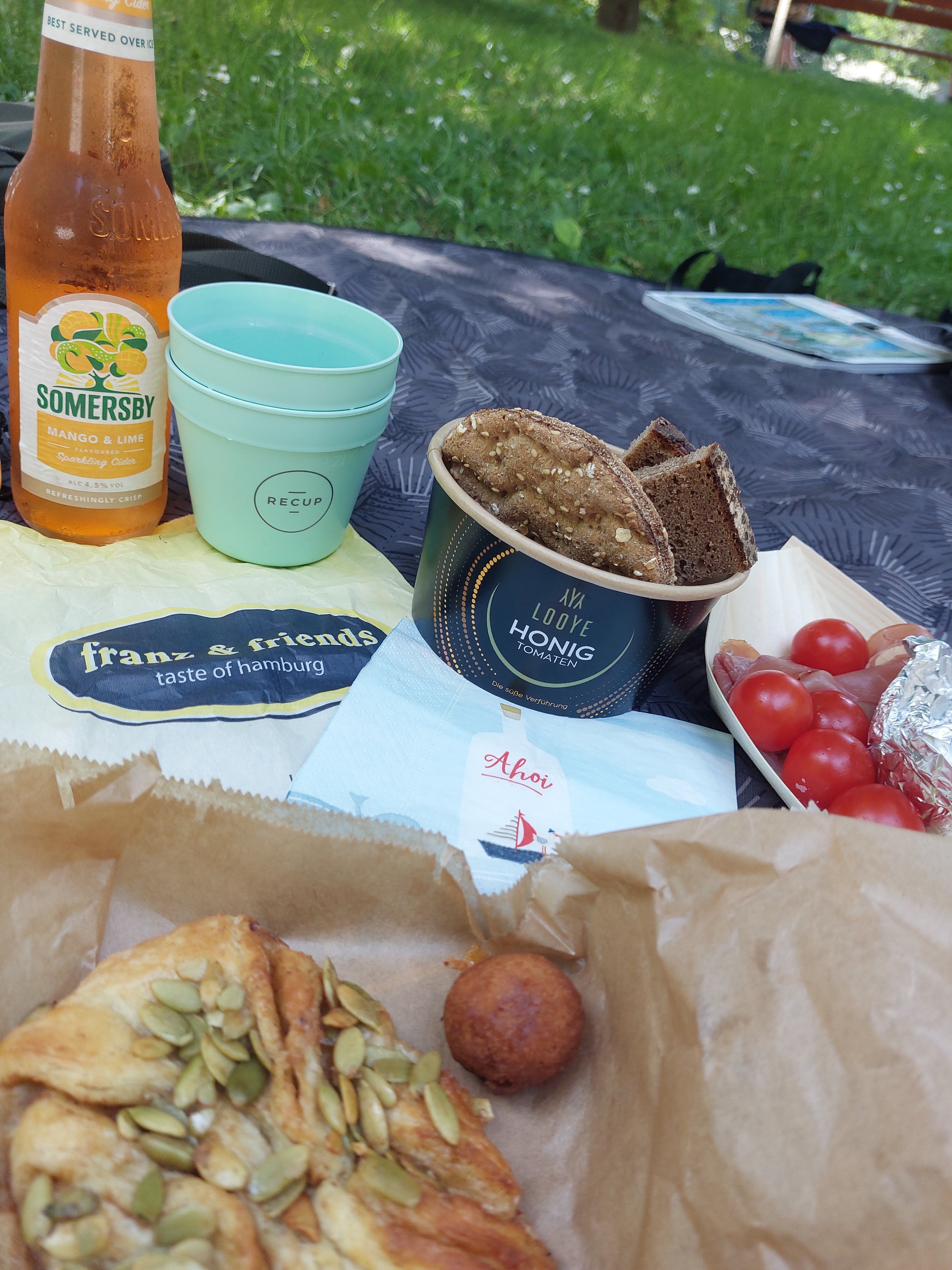 Danach sind wir zum Picknick gefahren an einer schönen Stelle und haben sie dann sofort mit unseren Kindern aufgegessen.
