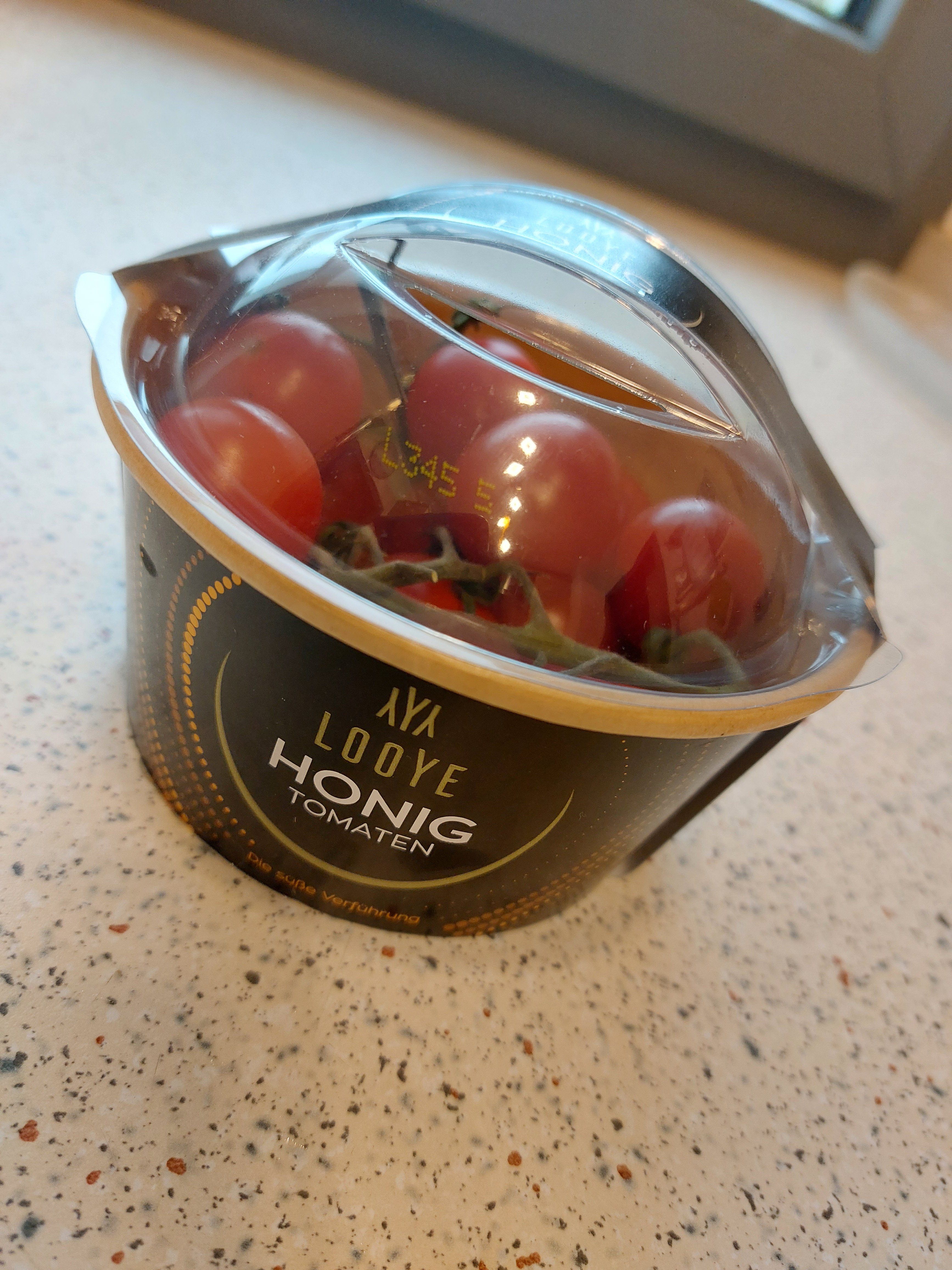 Leider ist die Verpackung trotz Plastikdeckel nicht wiederverschließbar und eine Packung Tomaten hat schon einen stolzen Preis.