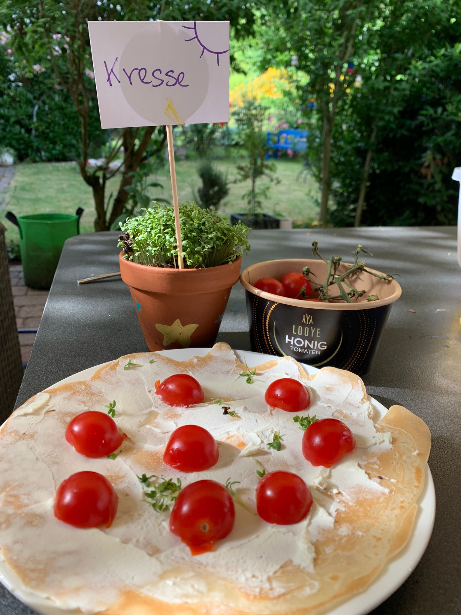 Wir haben Sie der Oma die Tomaten gegeben, ein paar hat Sie so geschmackt, die anderen gab es als Beilage zum Kartoffelgratin