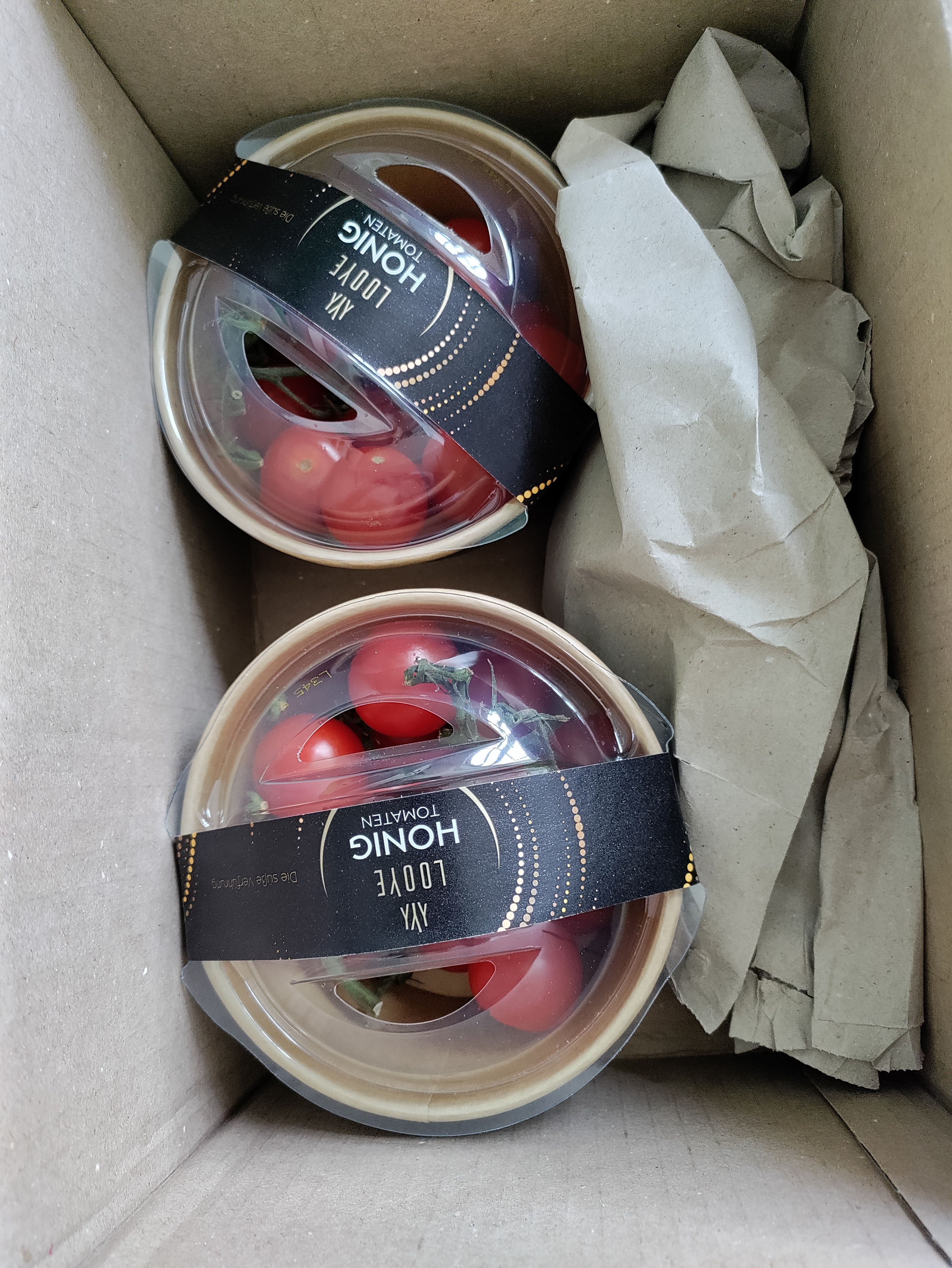 Ich habe die Tomaten recht zügig geliefert bekommen. Da ich Vollzeit arbeite war ich nicht da, als das Paket kam und es wurde in eine Packstation gebracht. Zu der Zeit war es hier sehr warm, weshalb ich sie danach relativ zügig aufbrauchen wollte, da ich mir nicht sicher war, wie viel Wärme sie abbekommen haben und wie lange sie sich noch halten. Deshalb habe ich sie nur „roh“ gegessen, unter der Woche komme ich selten zum kochen.
