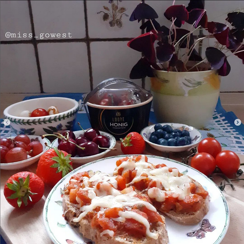 Sommeranfang und Hitze! ☀️😎🌡Gerade dann schmeckt leichtes und pikantes Essen gut. 😋 Heute Abend gab es Bruschetta, Mozzarella mit Tomaten und Basilikum und Obst. 🥖🍅🍒🍓🫐 Dank @ohoftheday durfte ich Looye Honigtomaten von @looyekwekersde ausprobieren. 🤗 Die Snacktomaten sind sehr aromatisch, fest, saftig und schmecken angenehm süß. 💯 Hier stimmt einfach alles -- sehr lecker! 🤩 Ich bin von dem leichten Honiggeschmack begeistert. 🥰