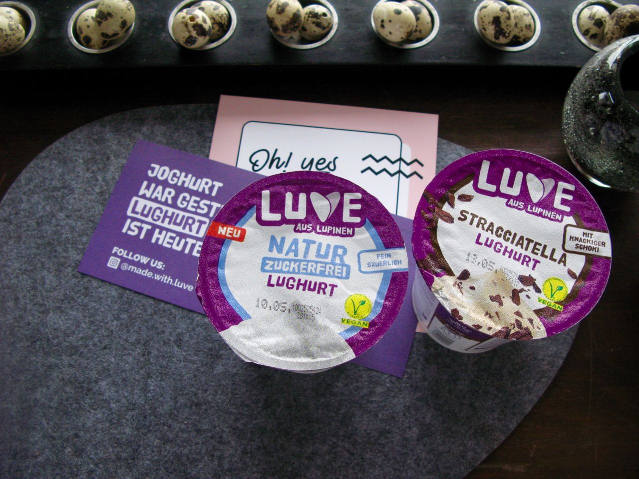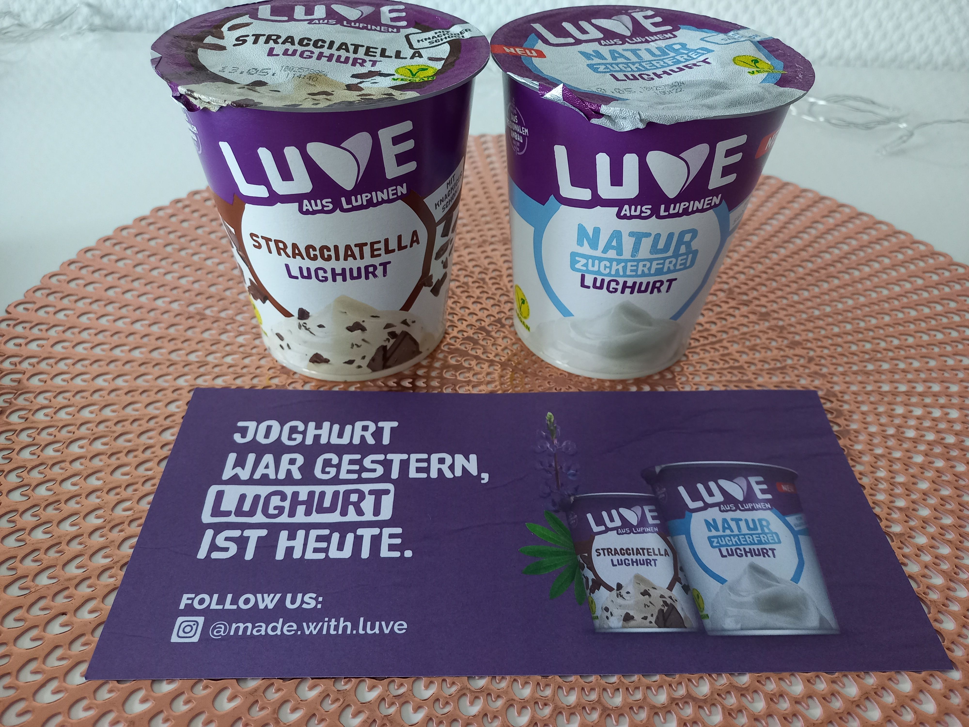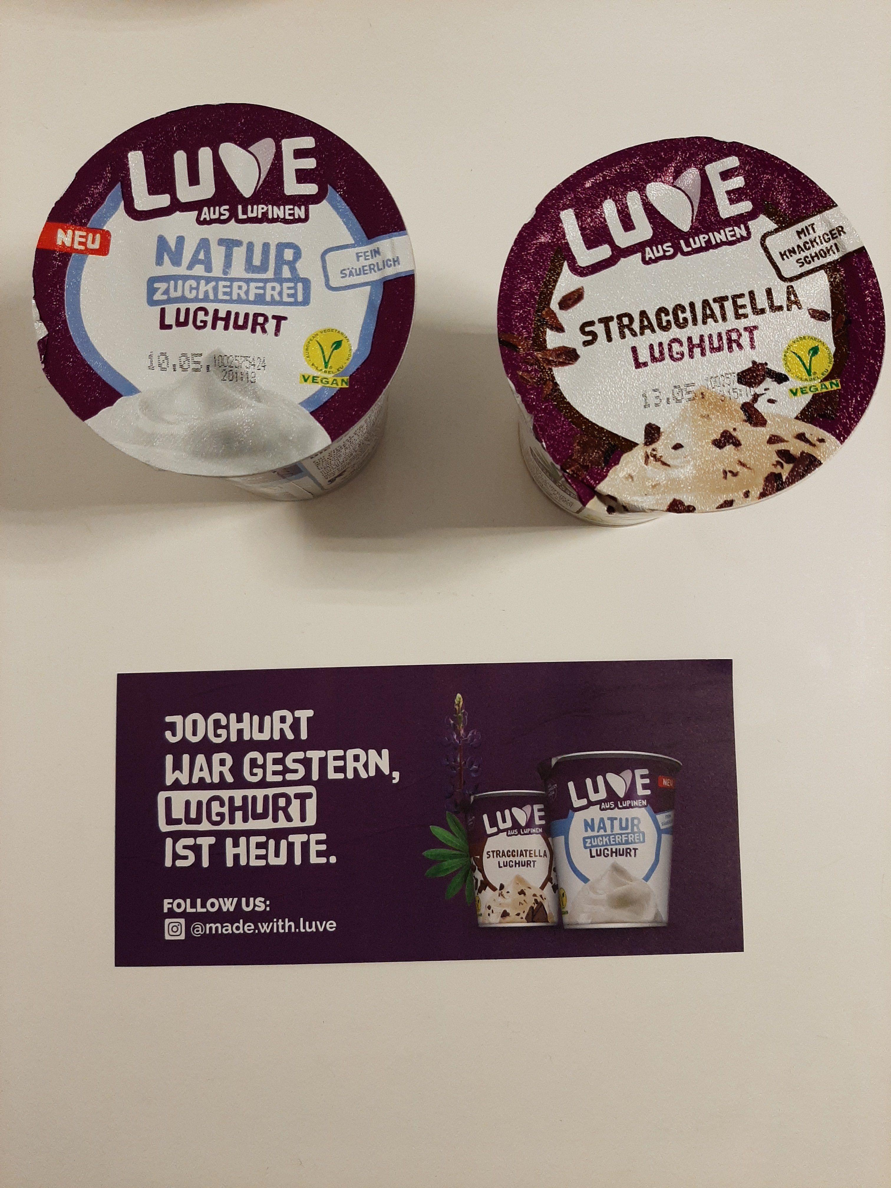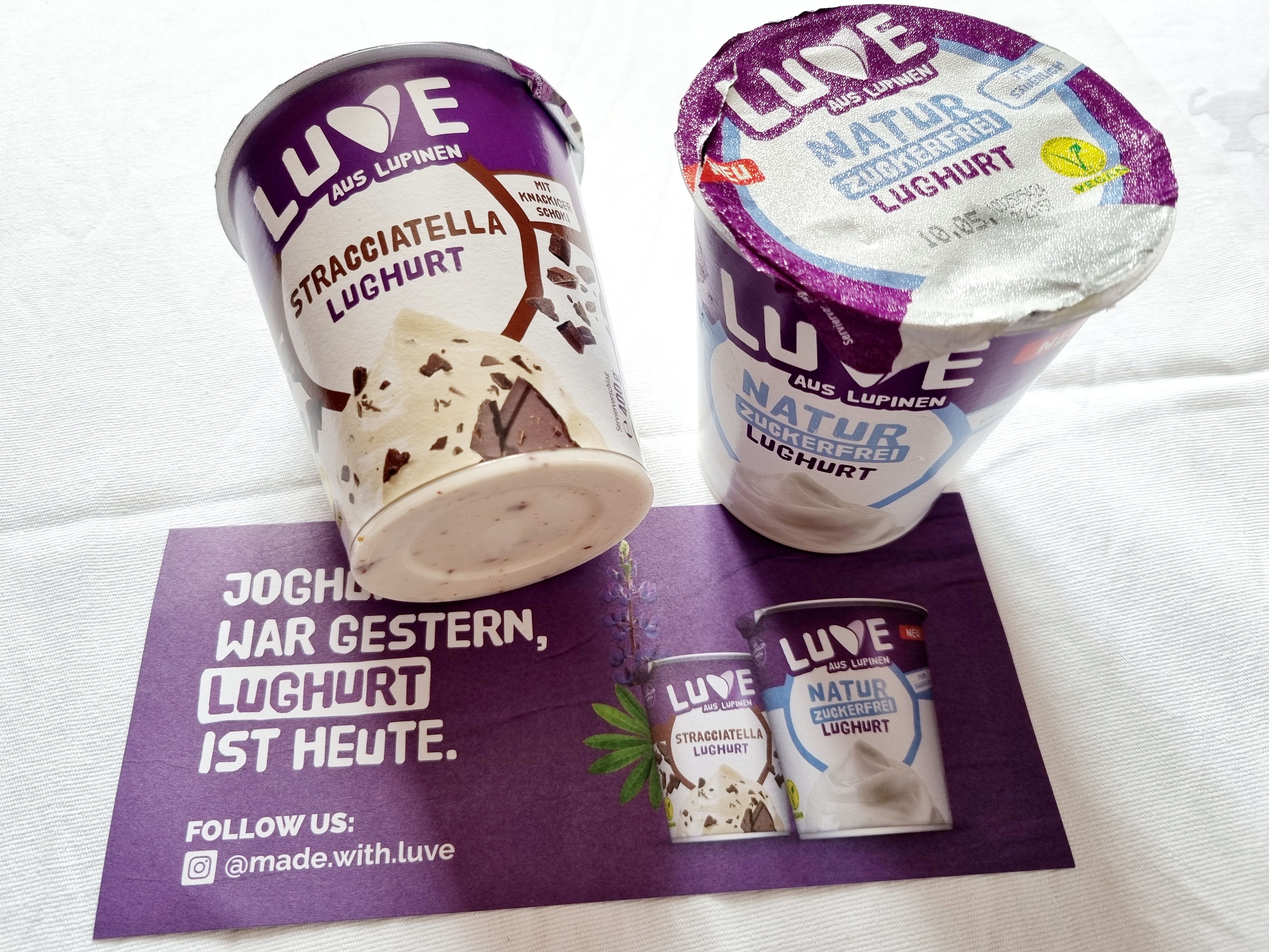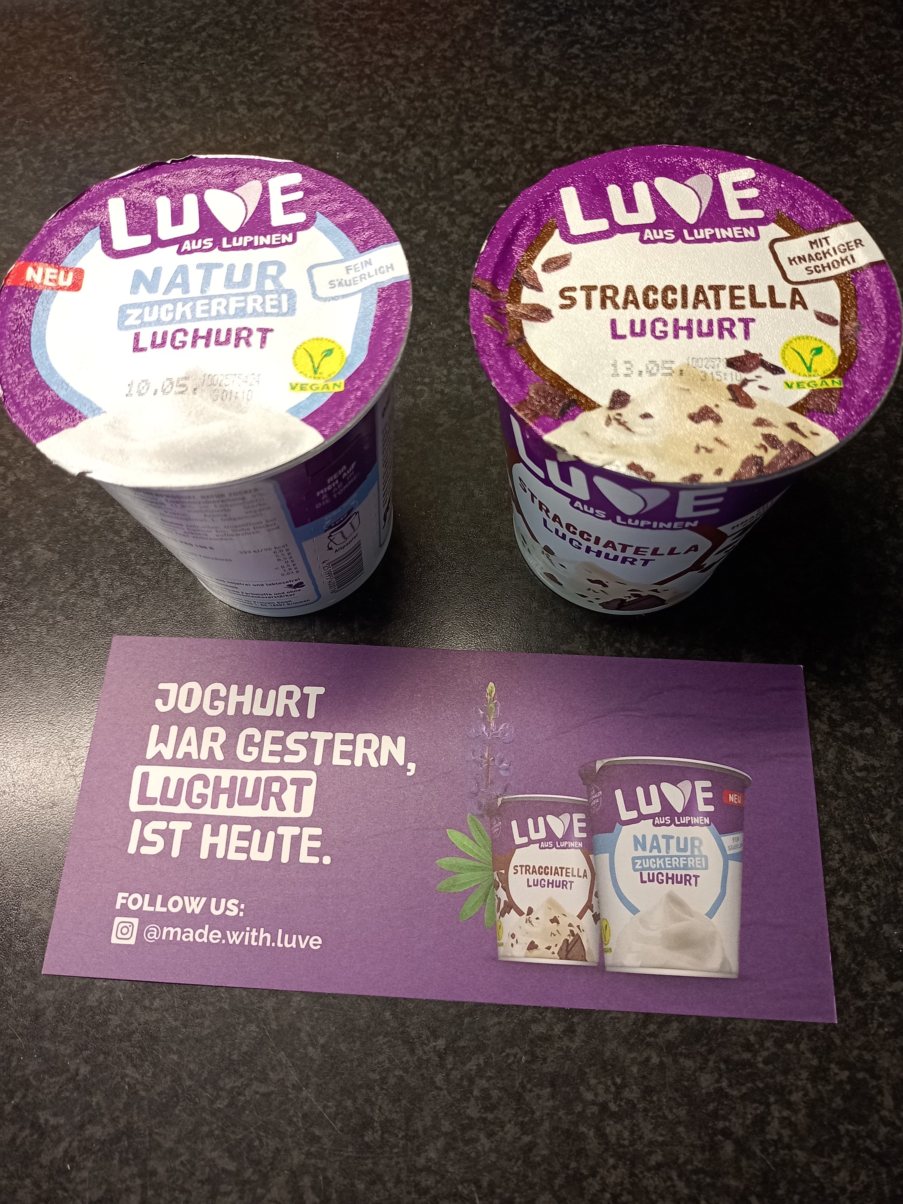 Wir haben zum ersten Mal die vegane Joghurtalternative – die Luve Lughurts – probiert und müssen sagen, dass wir von der Luhurt positiv überrascht waren. Wir haben 2 Sorten getestet - Naturjoghurt und Stracciatella
