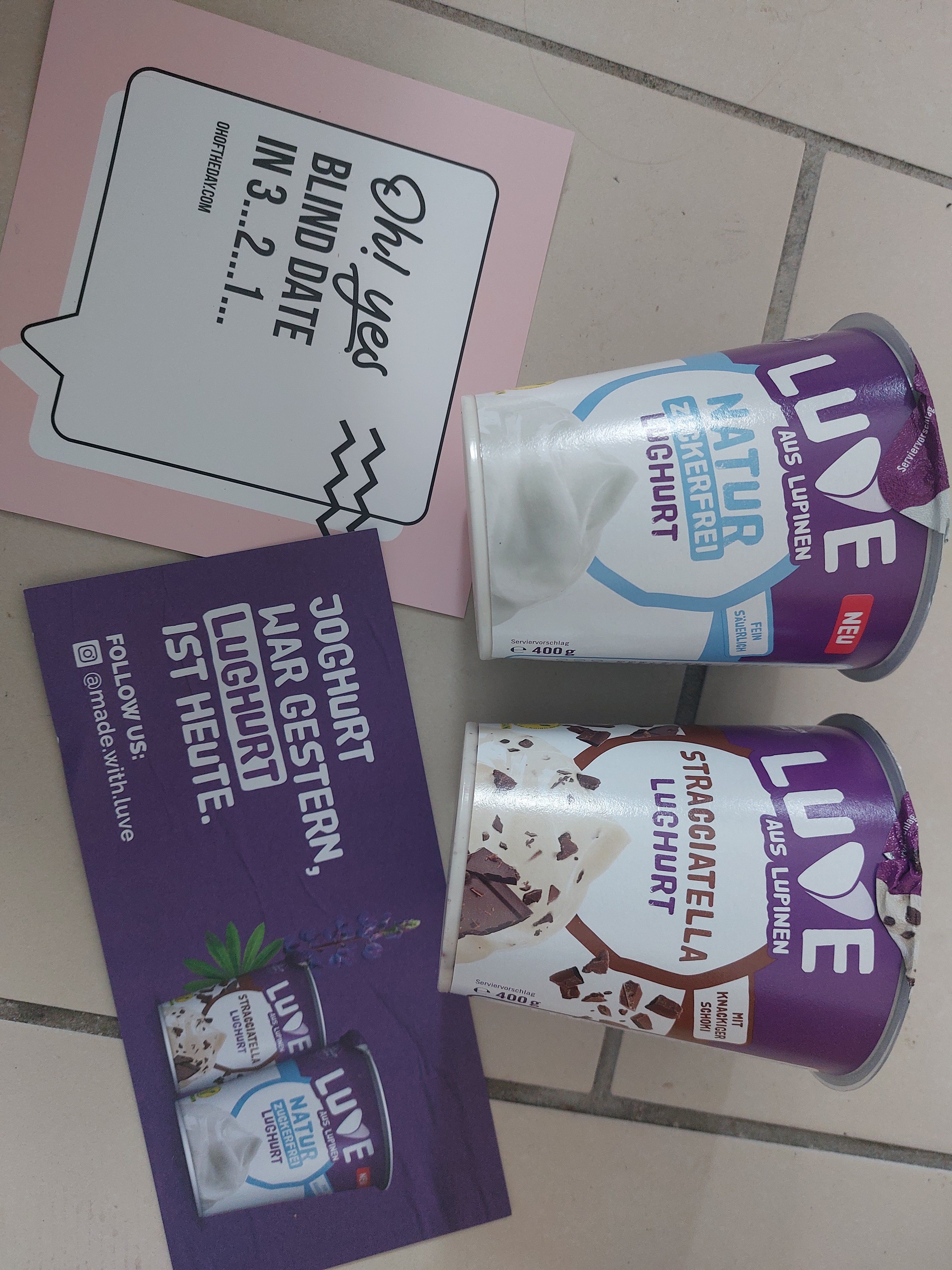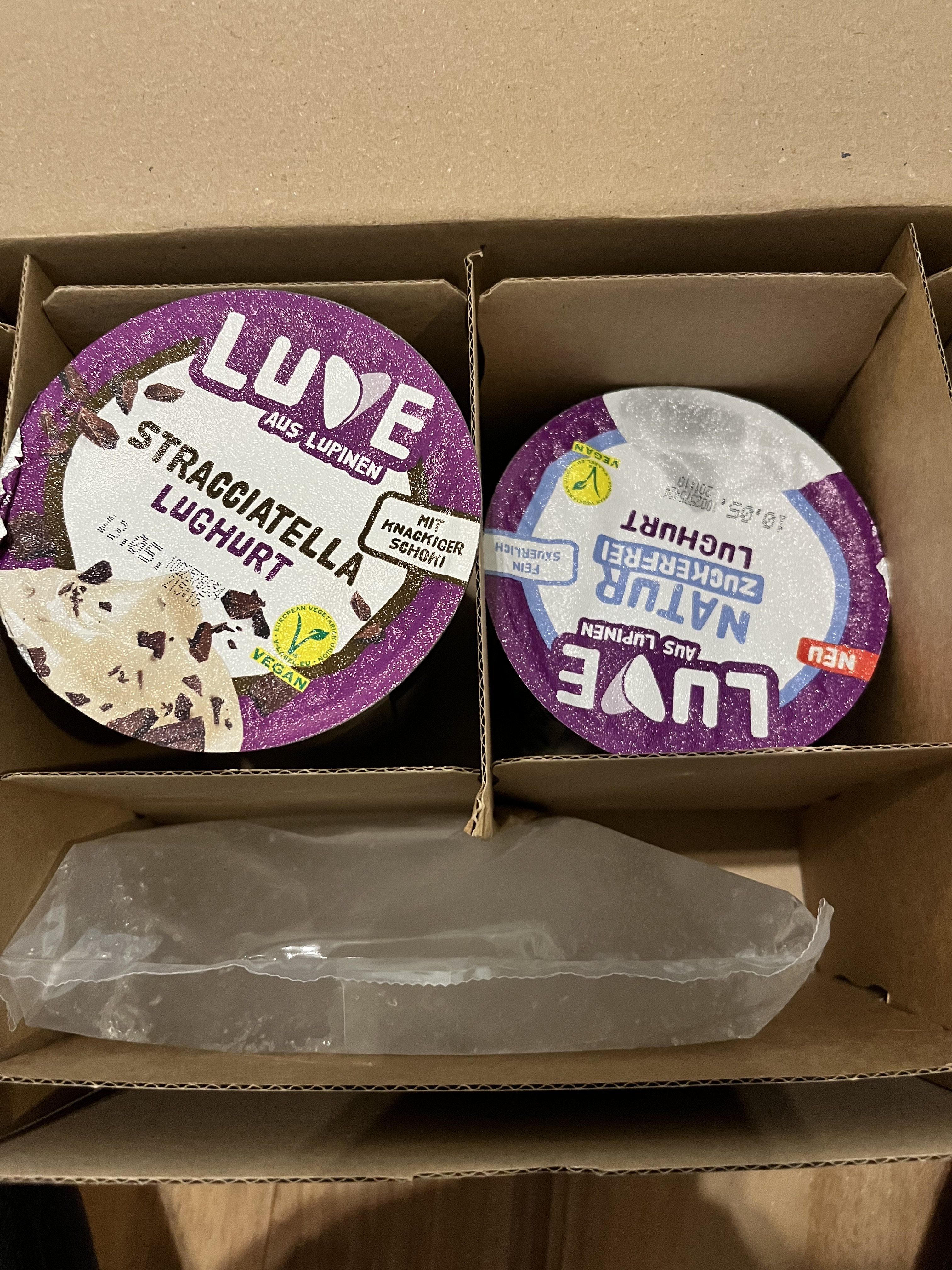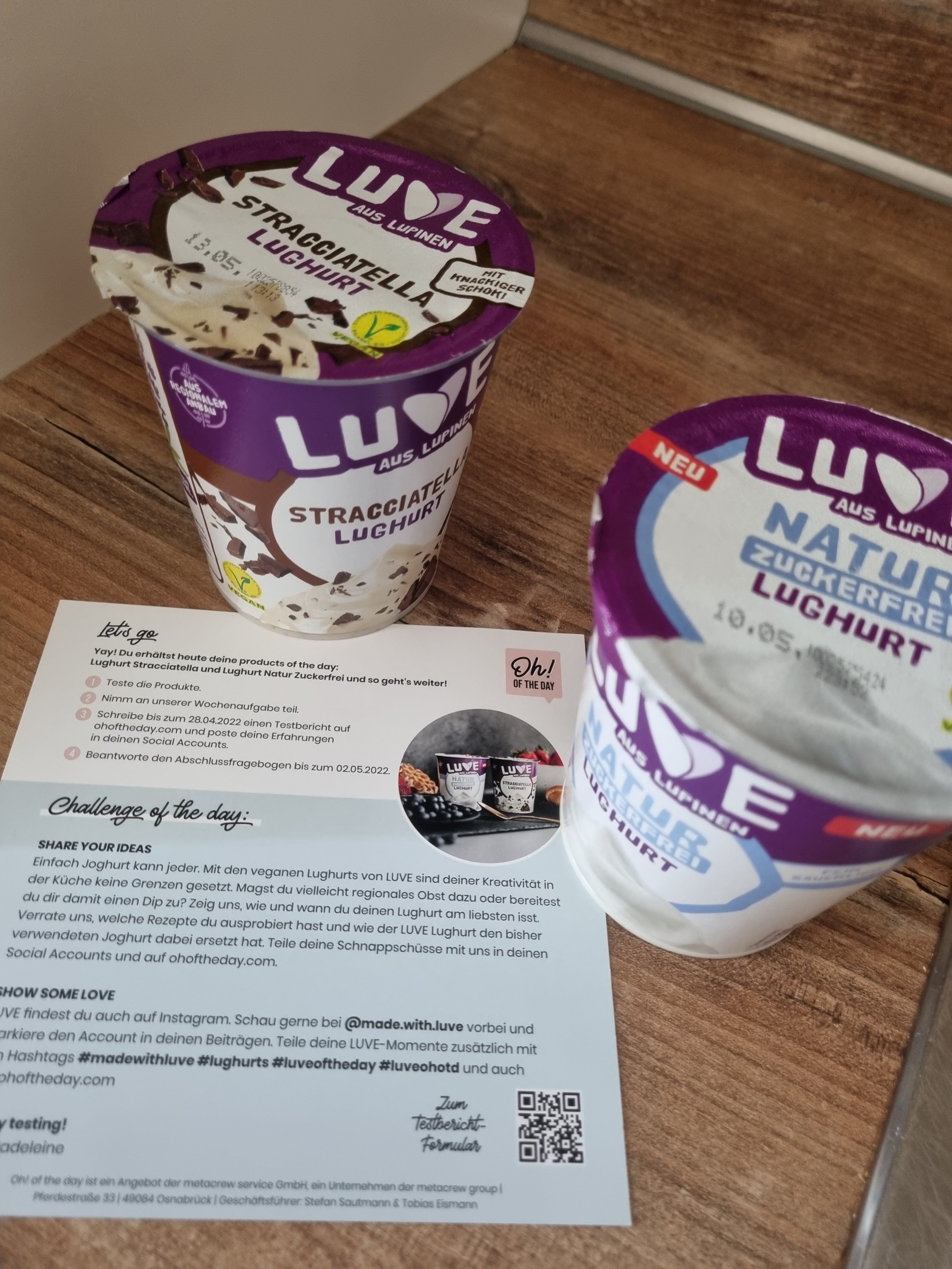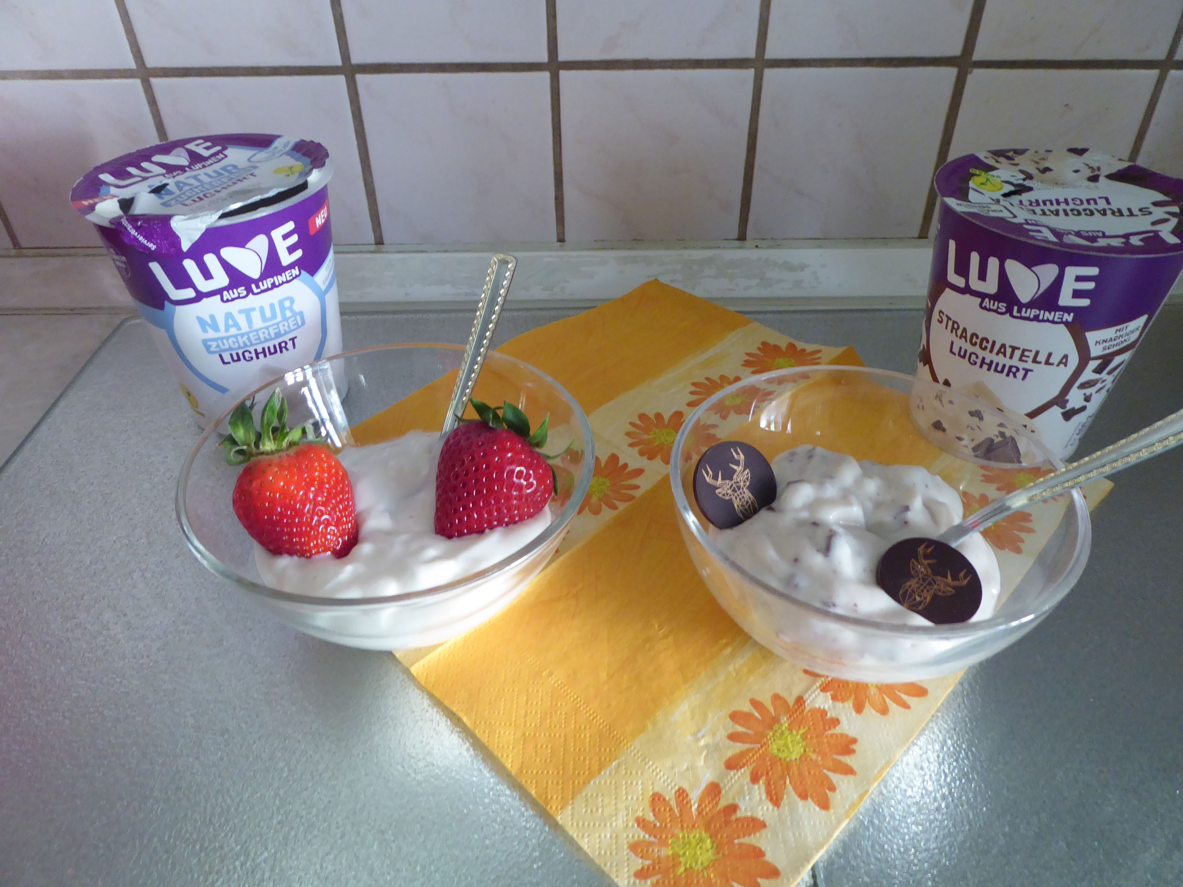 Ich darf die zuckerefreien Sorten Lughurt Stracciatella und Lughurt Natur mit jeweils 400g testen.