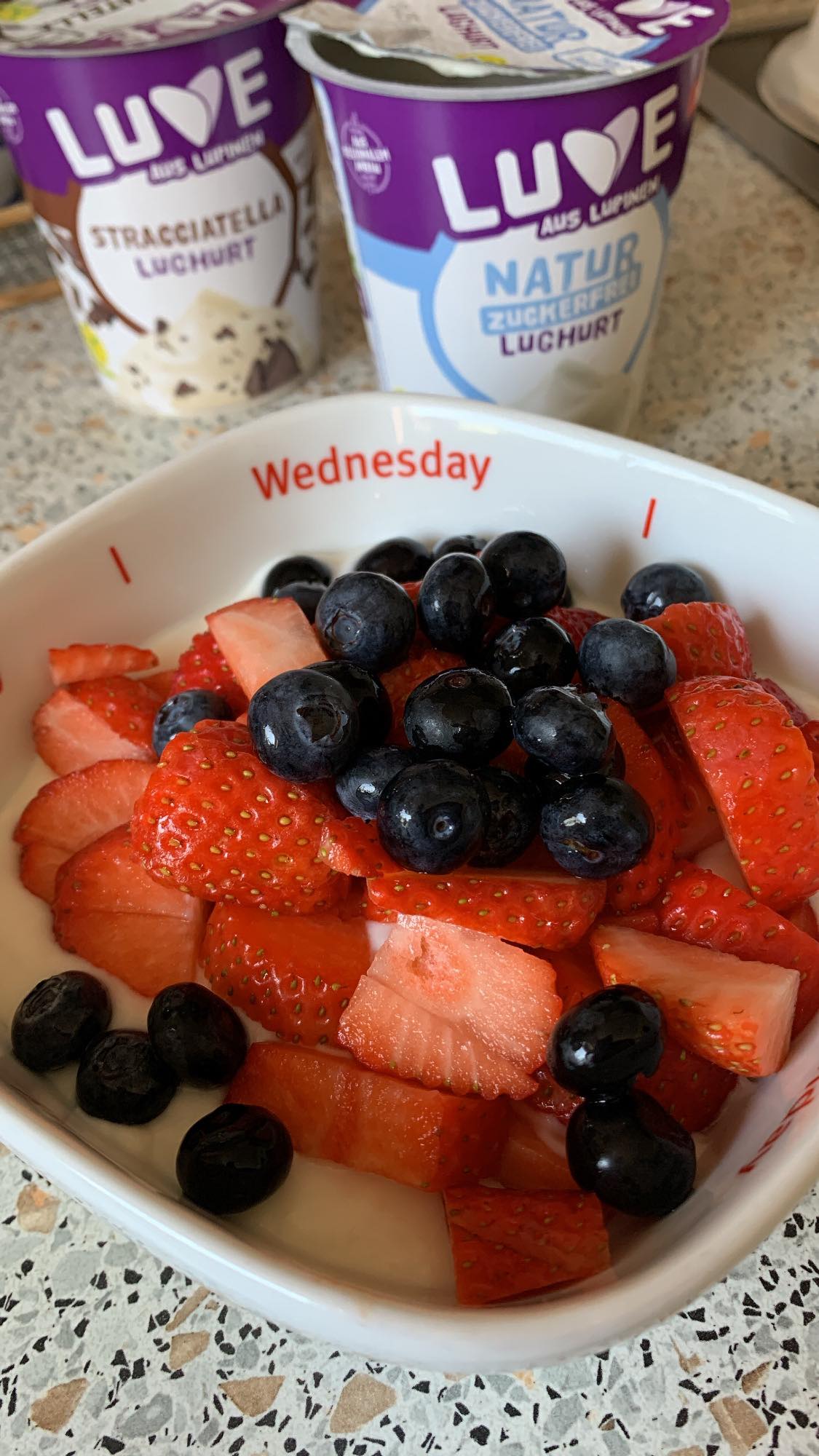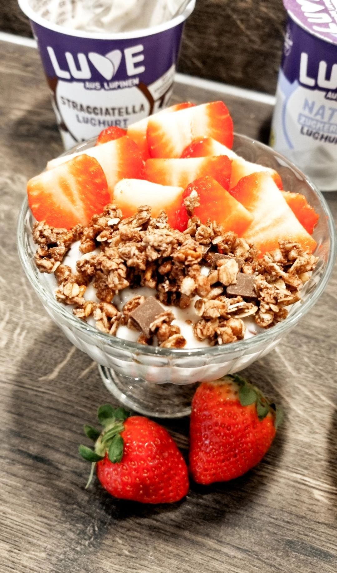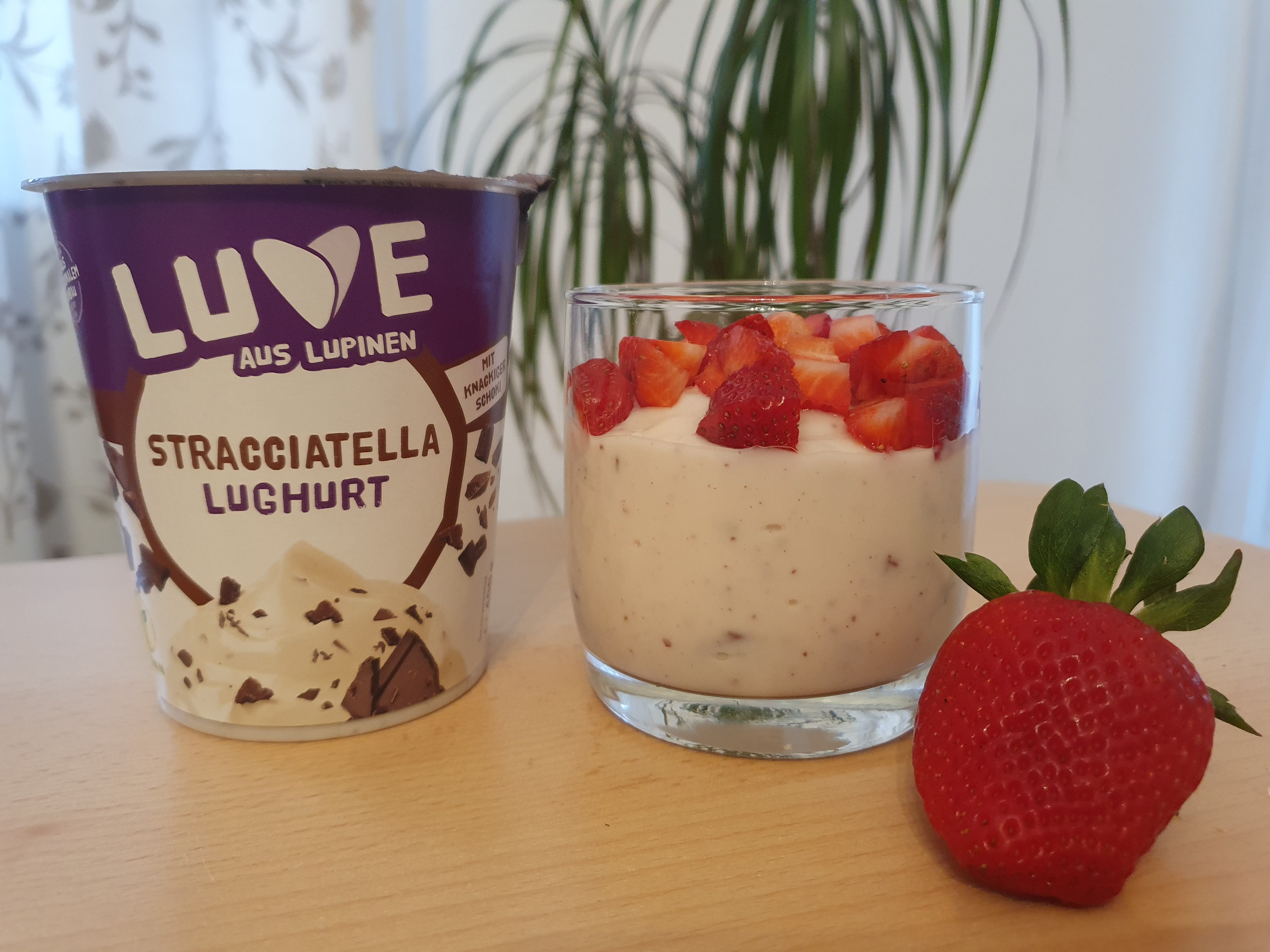 Der Lughurt Stracciatella hat uns pur leider nicht so geschmeckt. Wir haben ihn mit Erdbeeren🍓 und Venillezucker etwas verfeinert.