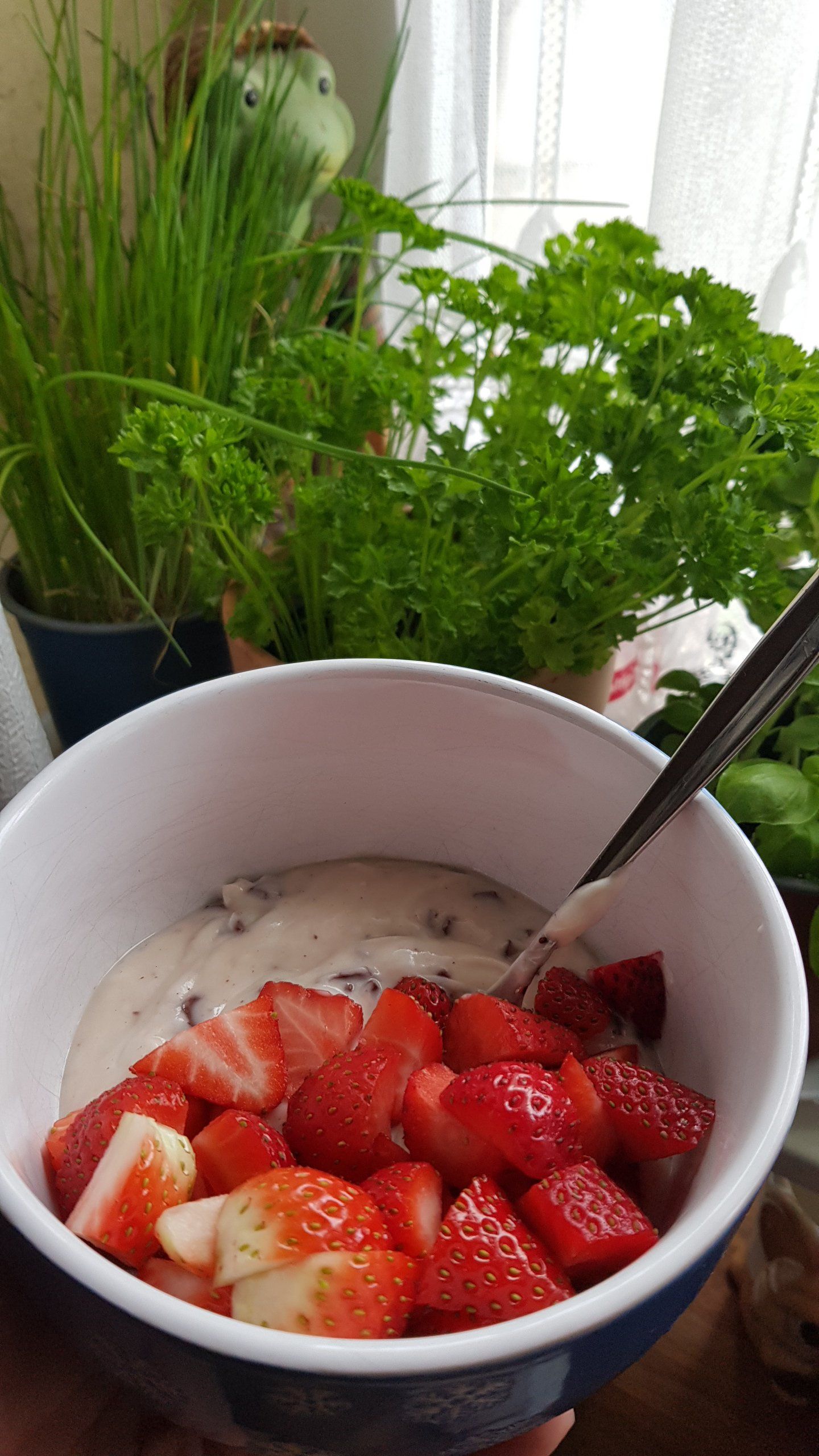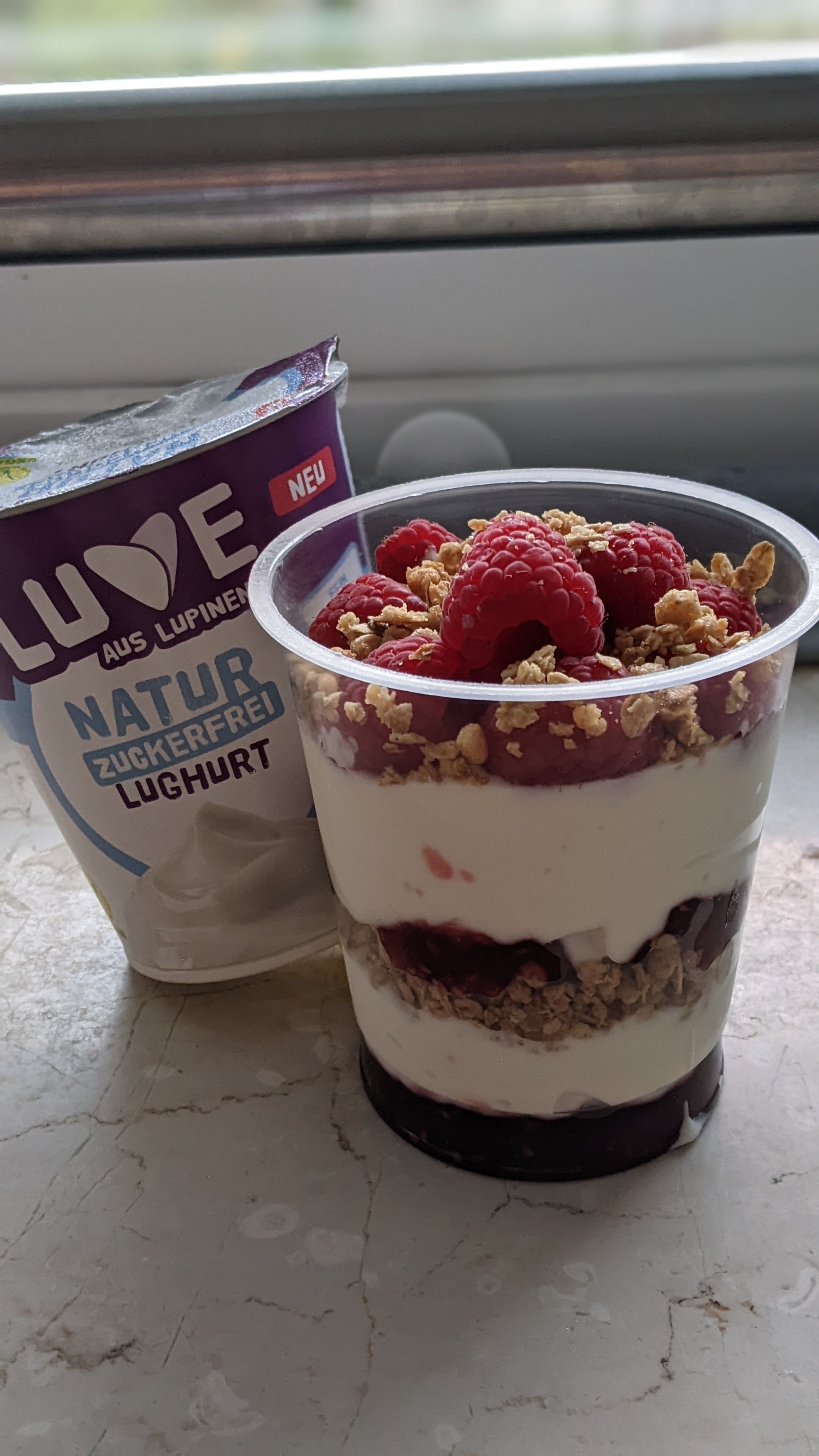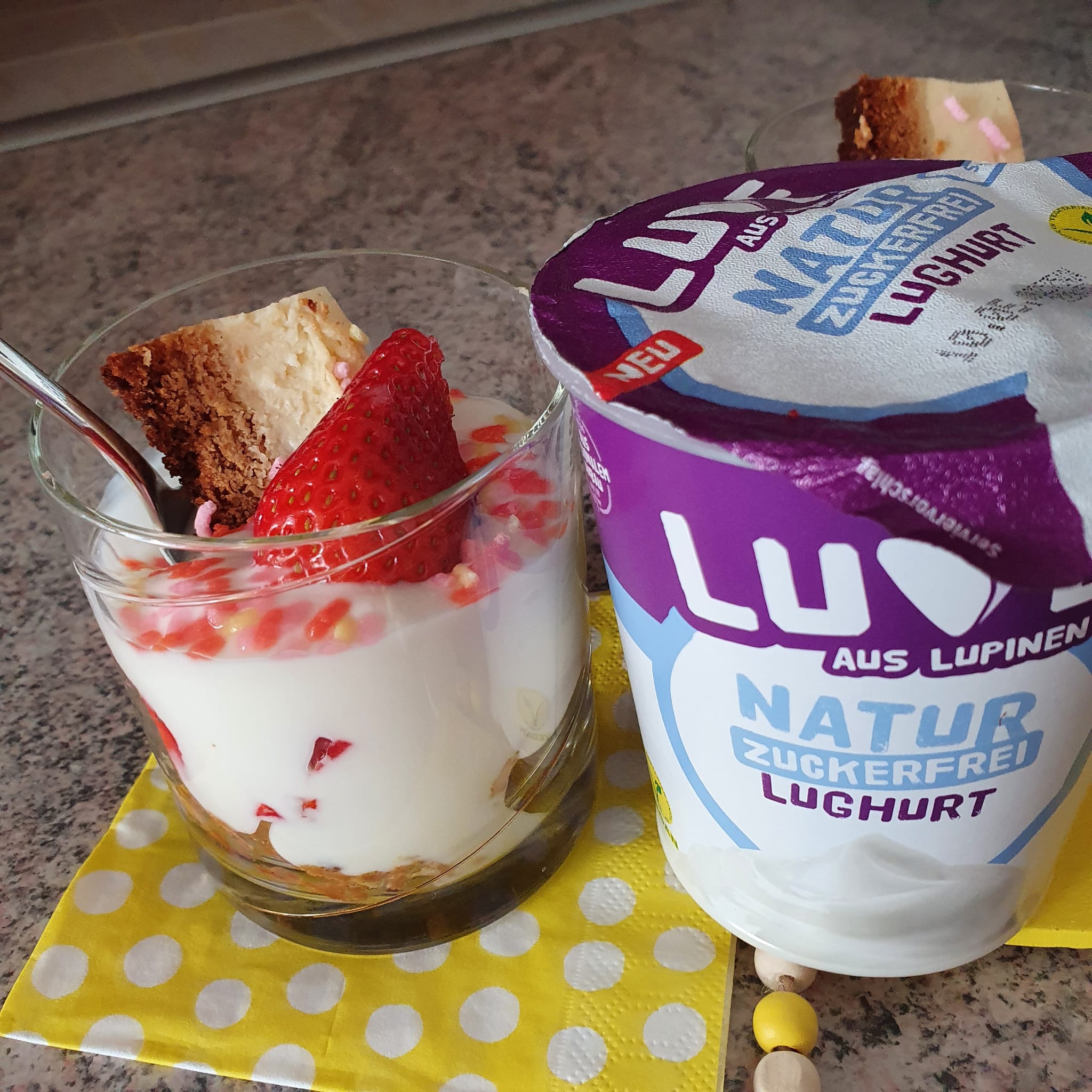 Der Lughurt Stracciatella hat uns pur leider nicht so geschmeckt. Wir haben ihn mit Erdbeeren🍓 und Venillezucker etwas verfeinert.