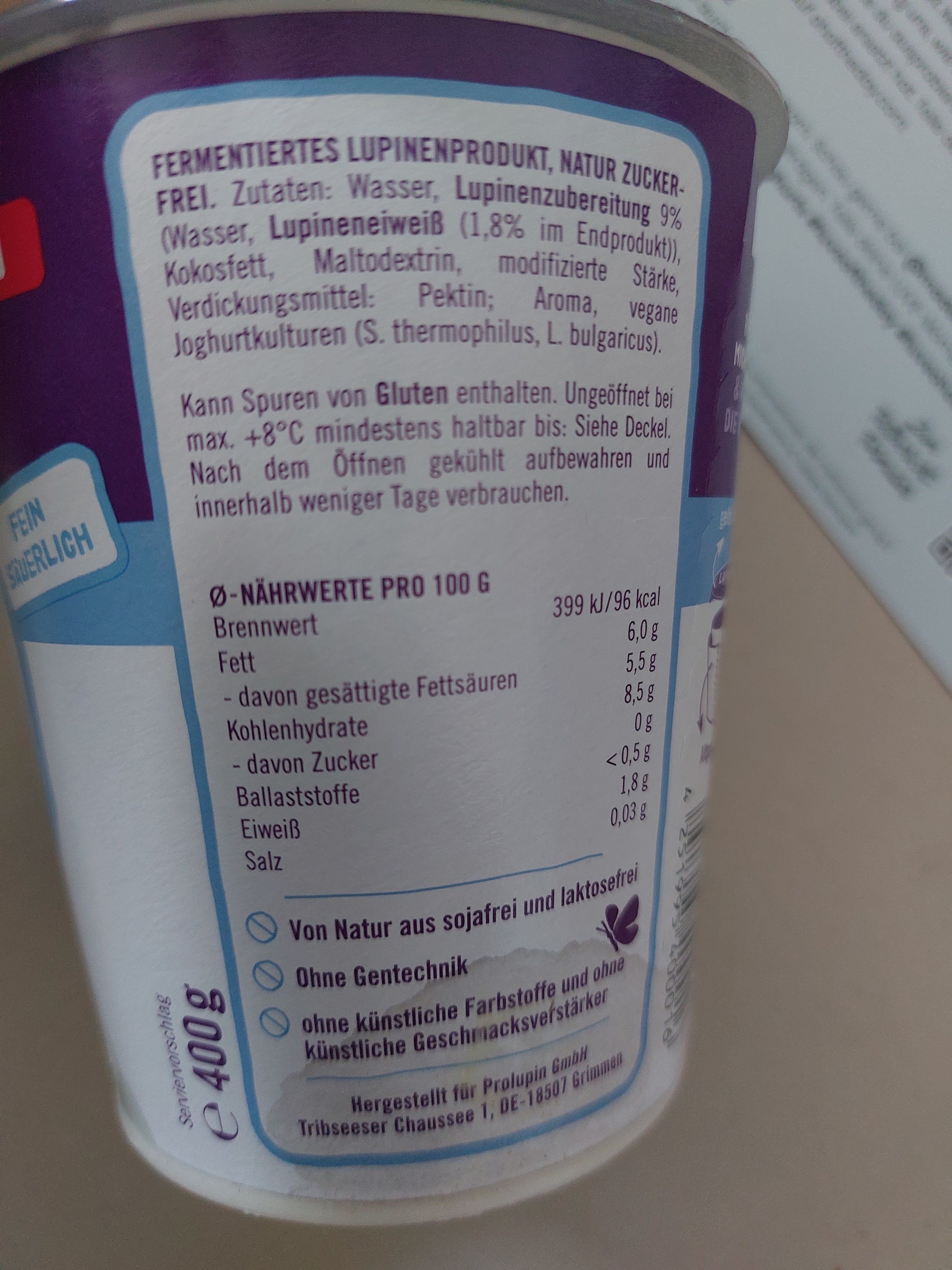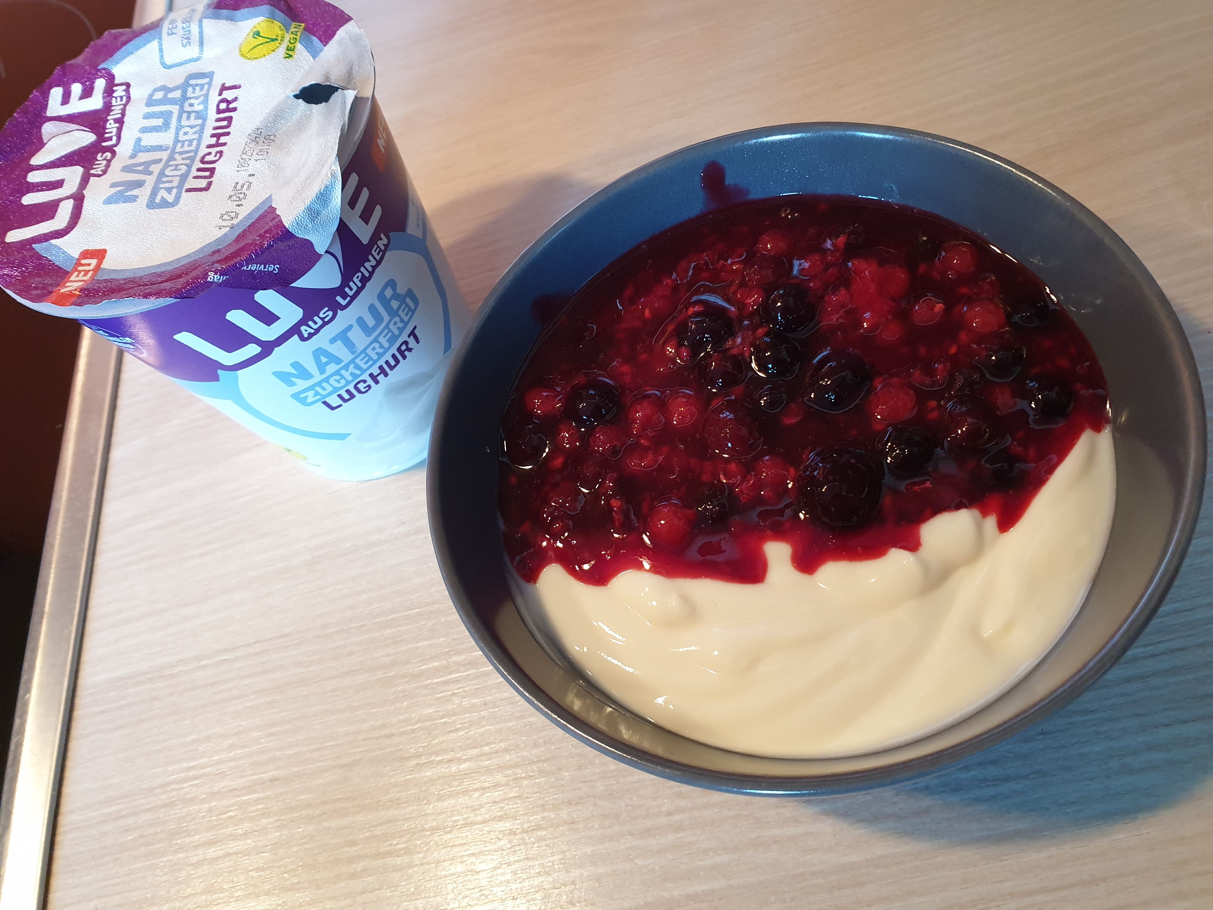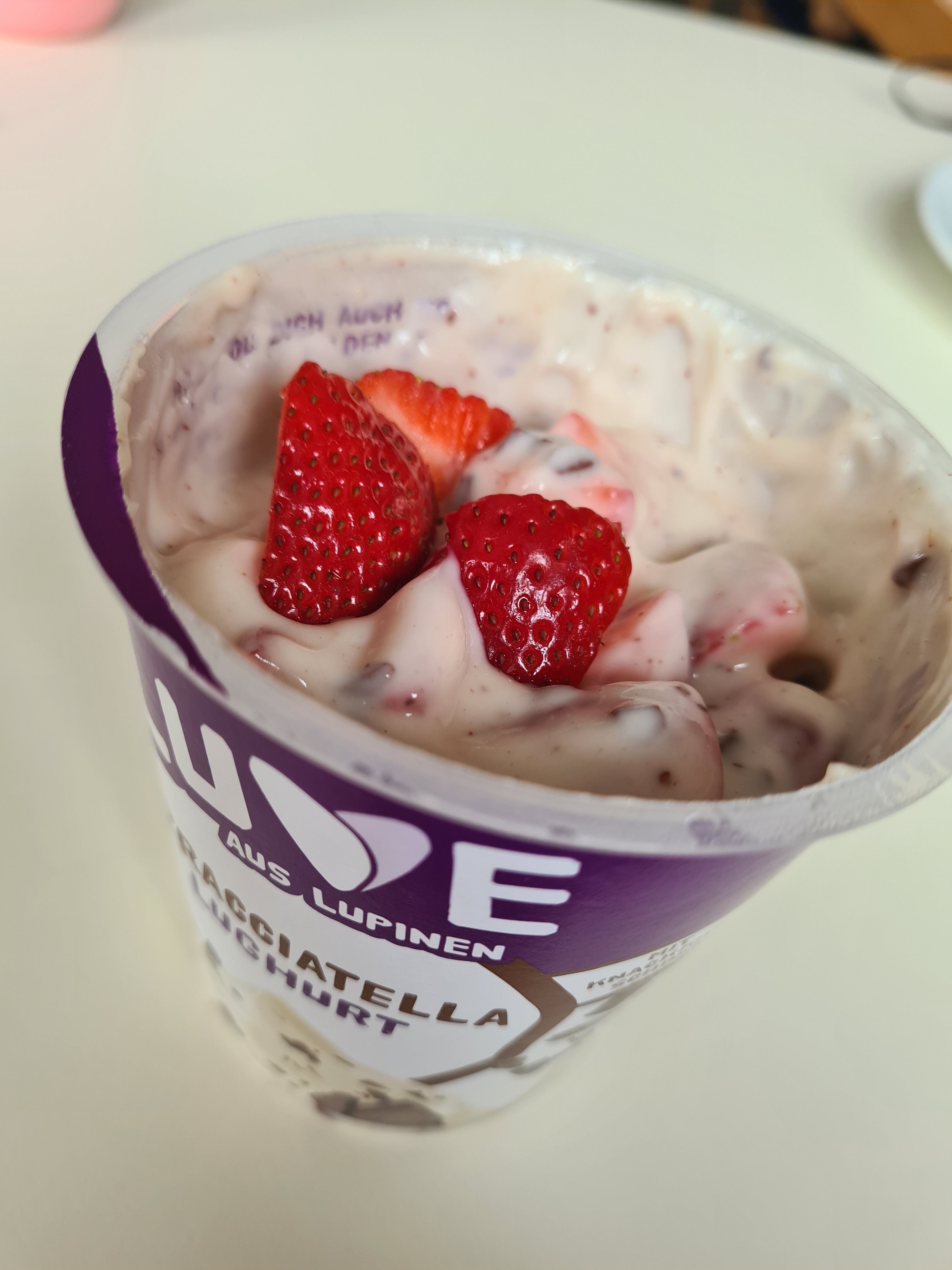 Ich finde ich echt toll, dass die Süße in dem Joghurt nur aus der natürlichen Süße der Lupinen und Schokolade kommt.