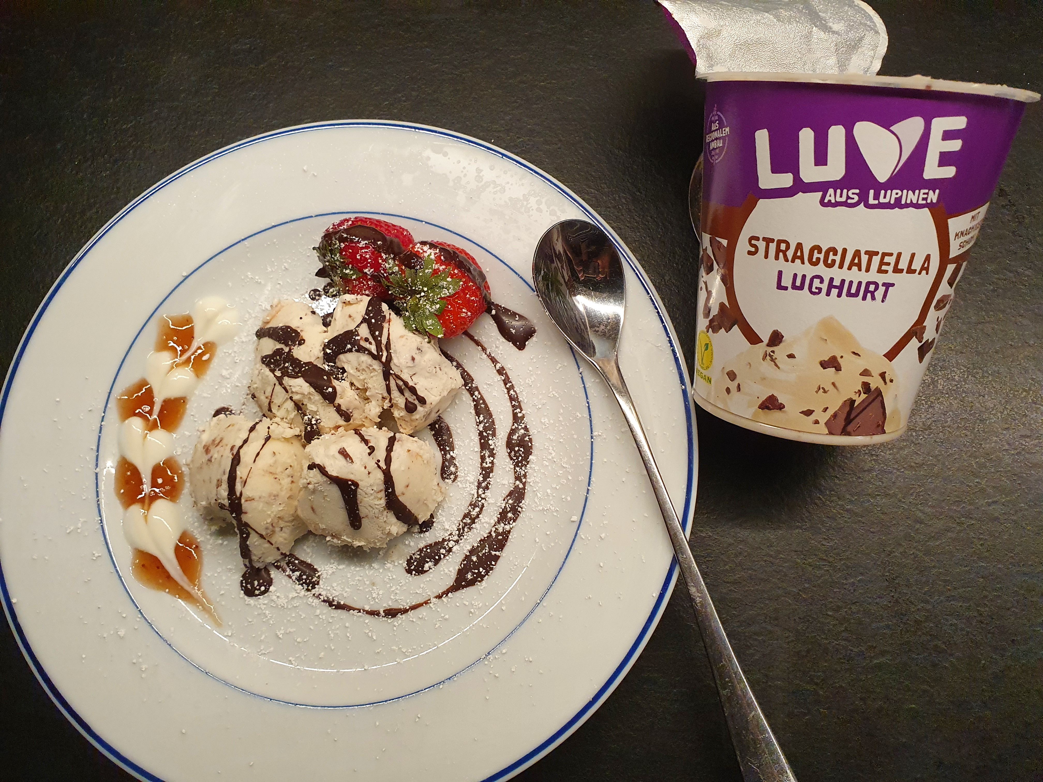 Der Lughurt Stracciatella hat und überzeugt. Wir fanden Geschmack und Kosistenz super und haben ihn schlichtweg pur genossen. Die Schokostückchen 🍫 sind richtig lecker.