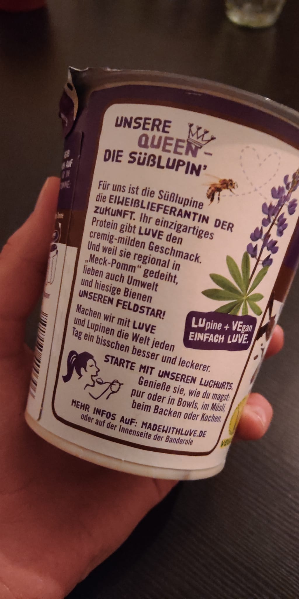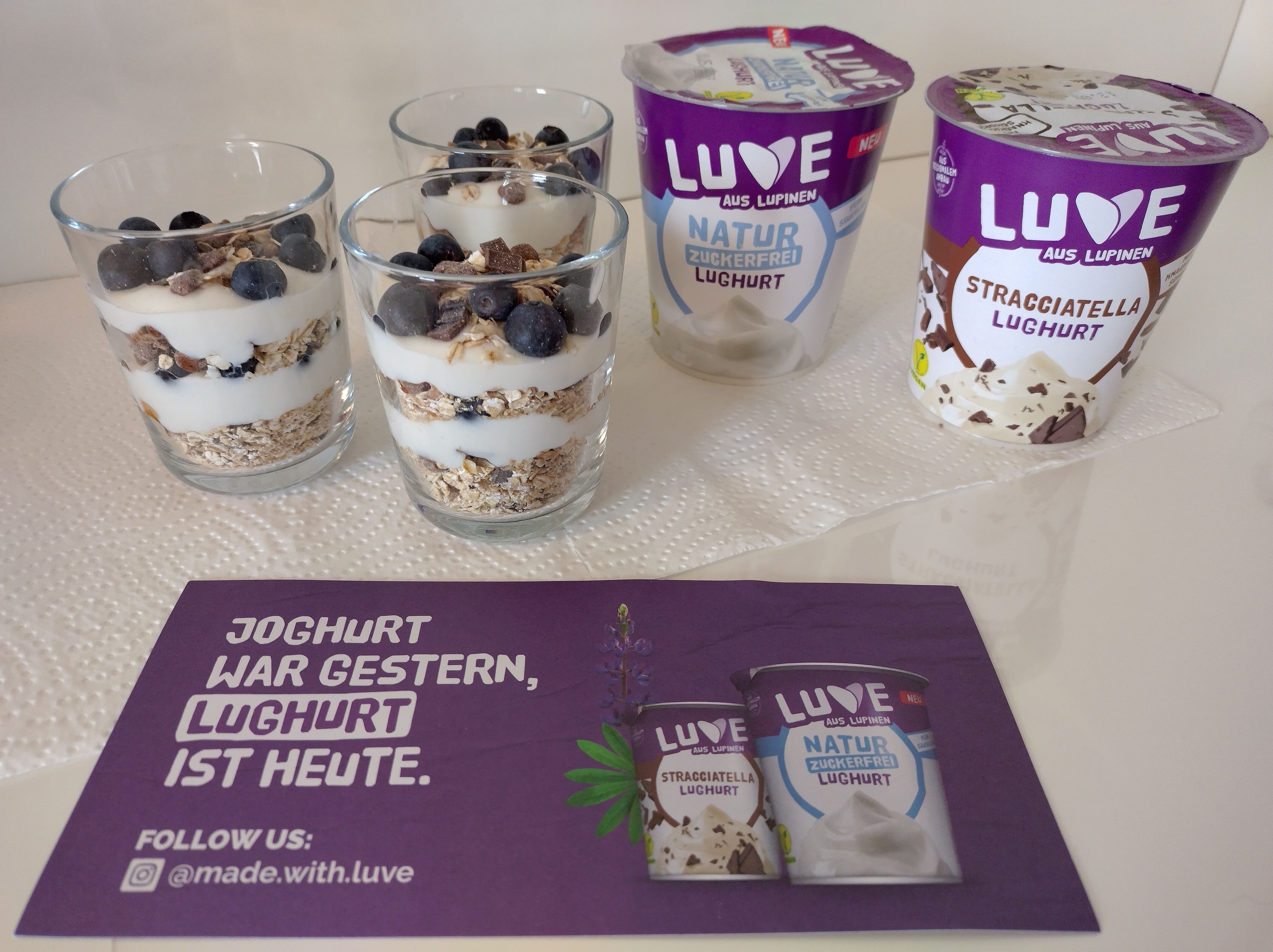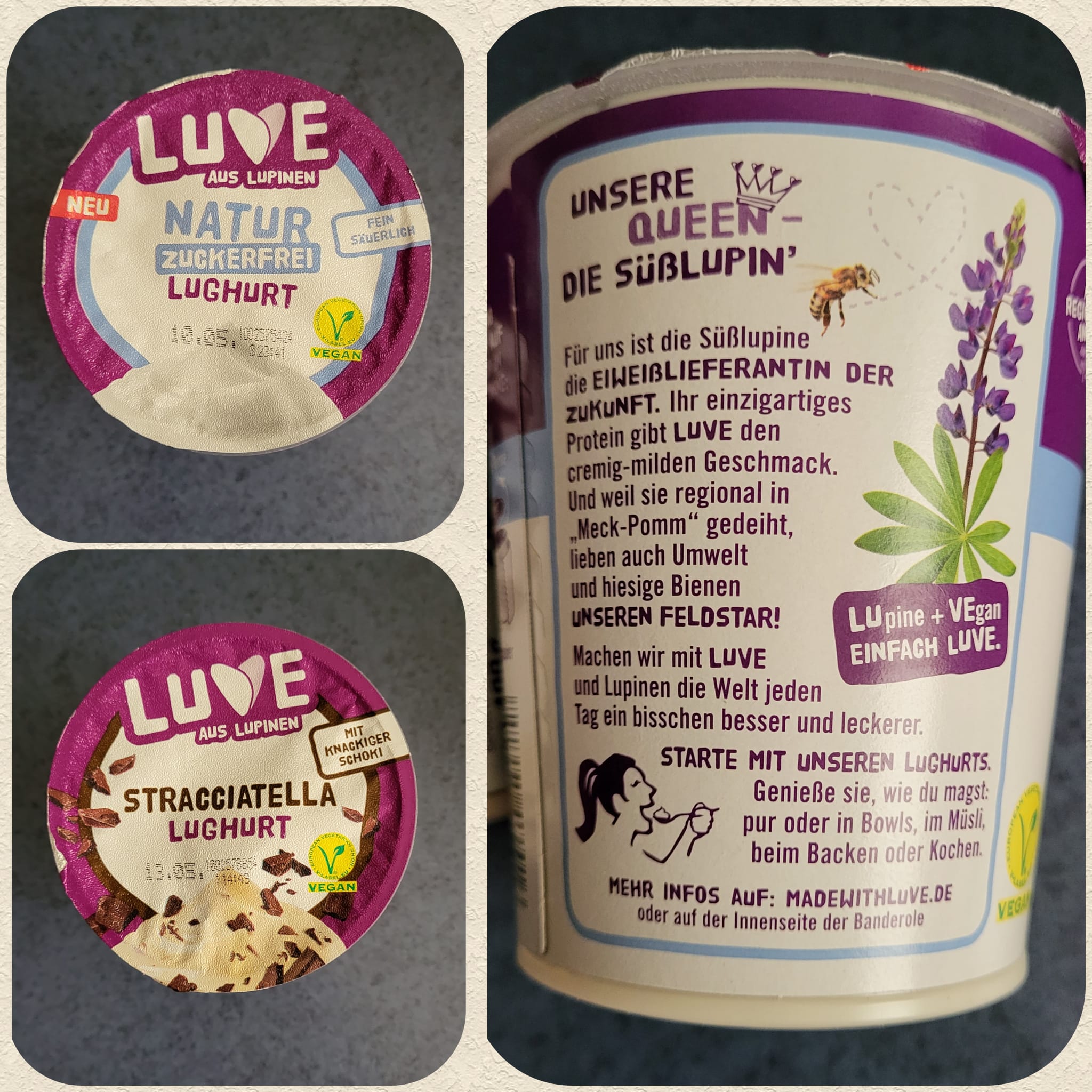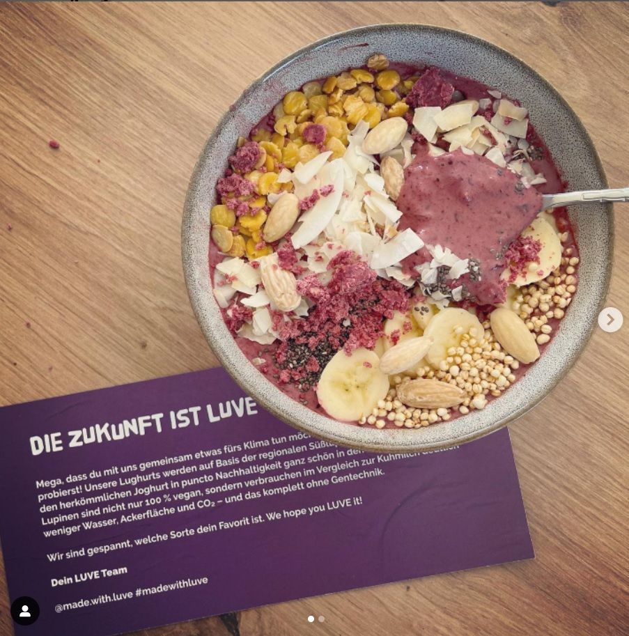 Luve bietet eine super vegane Alternative zu herkömmlichen Joghurts. Der Geschmack ist wegen der Lupine einzigartig und die Sorte Stracciatella einfach ein knusprig, cremig, zarter Klassiker als Lughurt! Den Natur Lughurt habe ich hingegen klassisch mit Früchten genossen. So lecker kann pflanzlich sein - für mich ganz klar einen Daumen hoch!