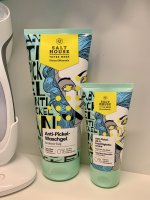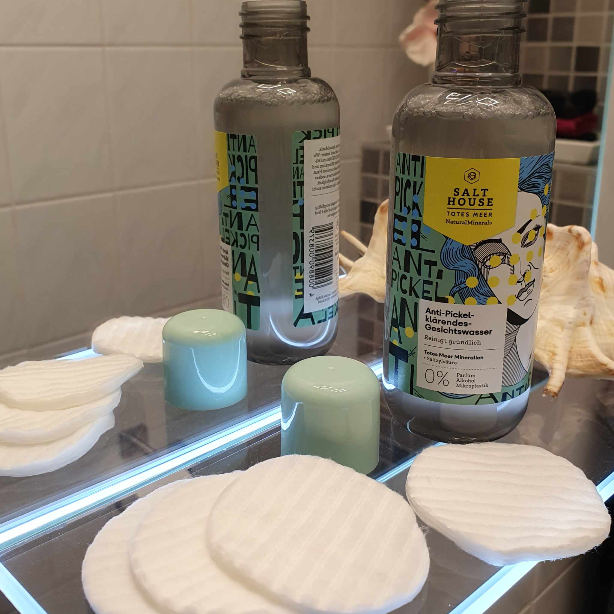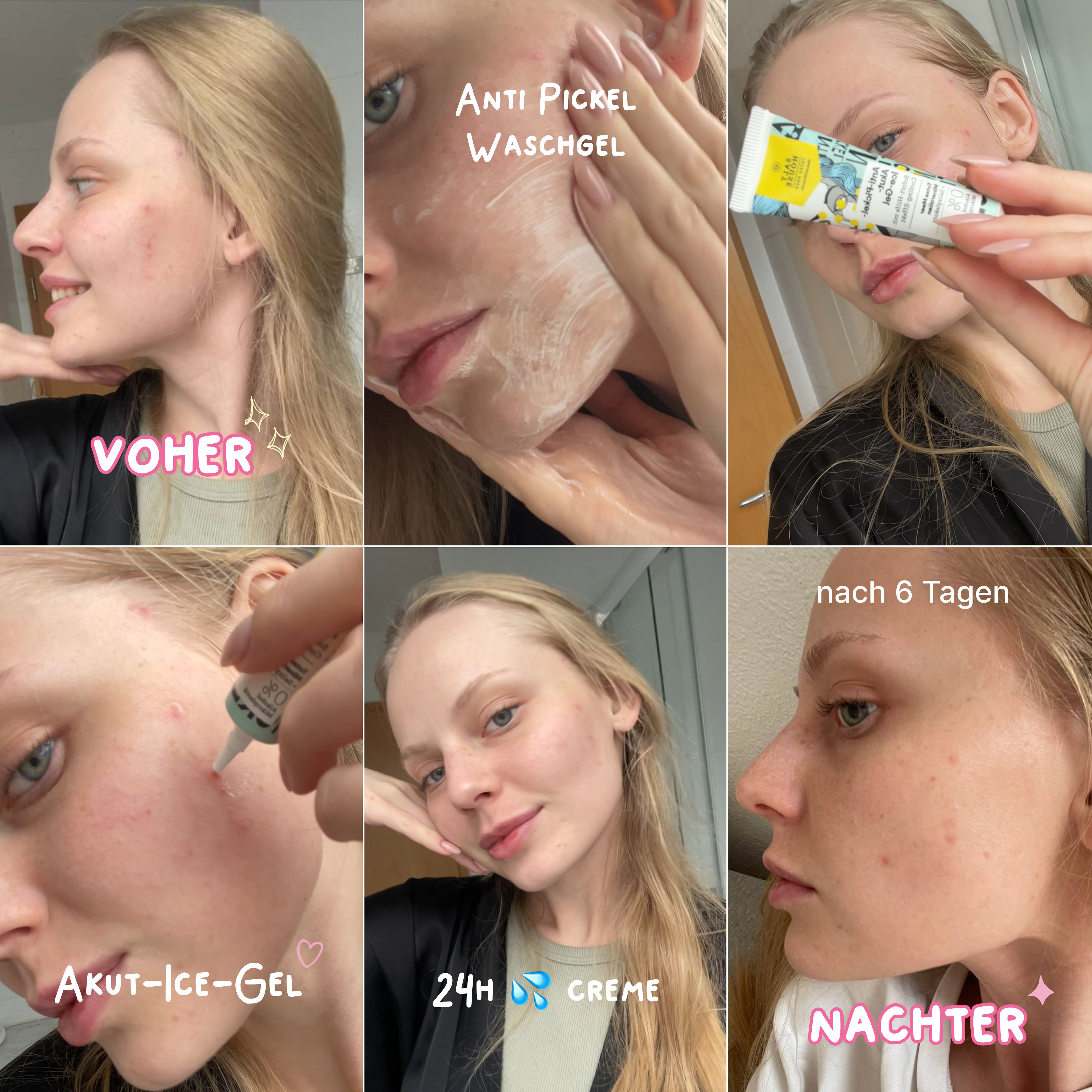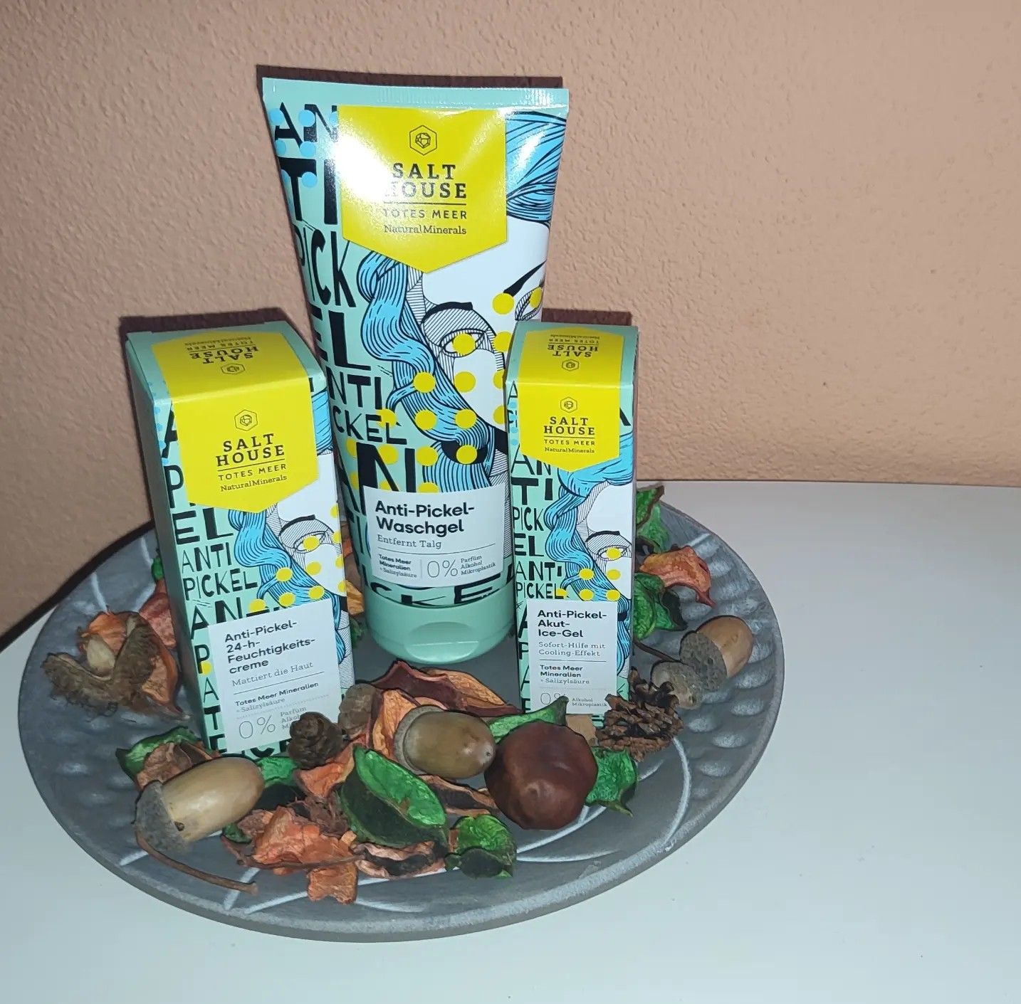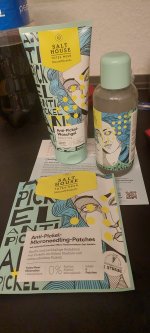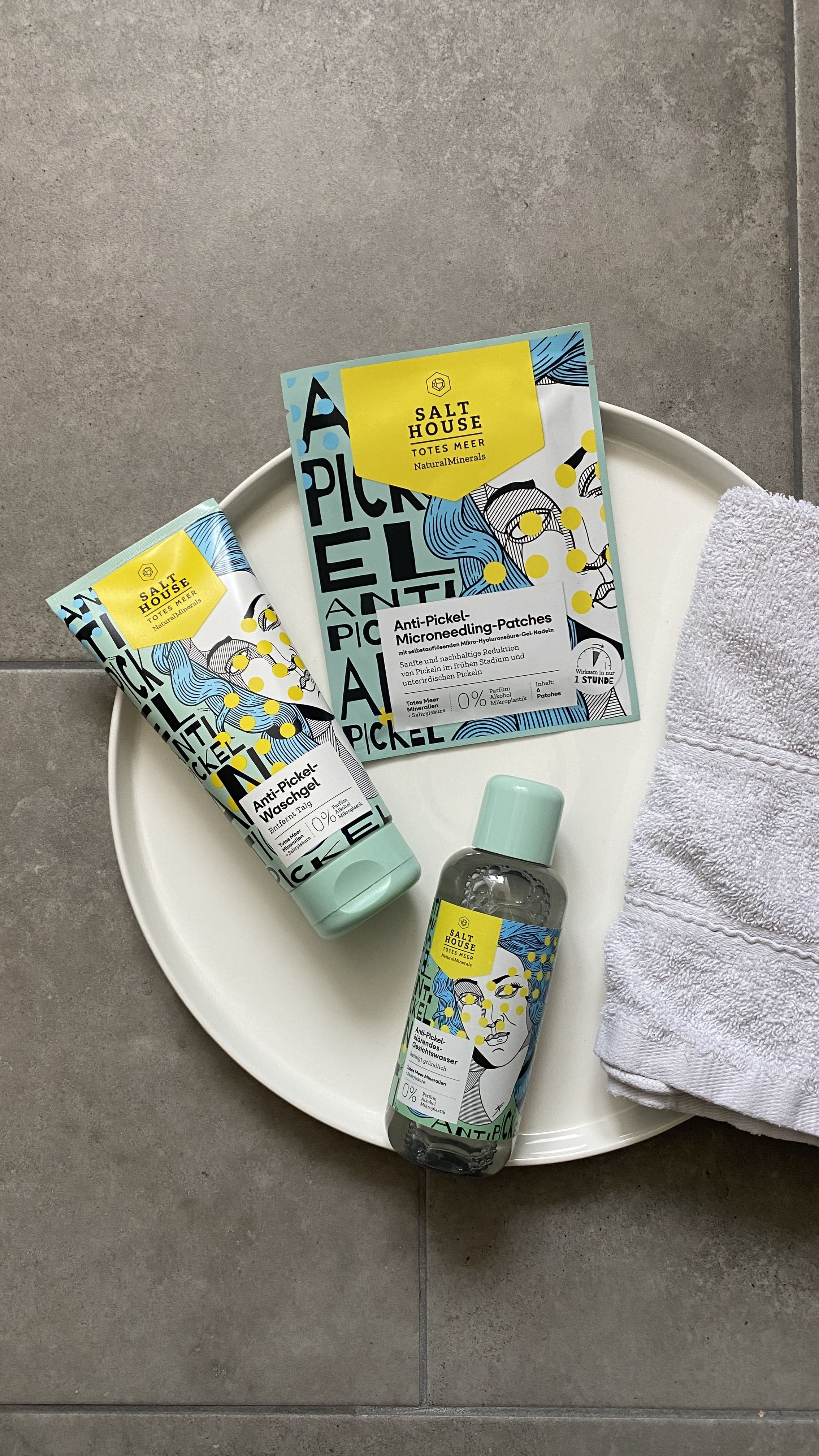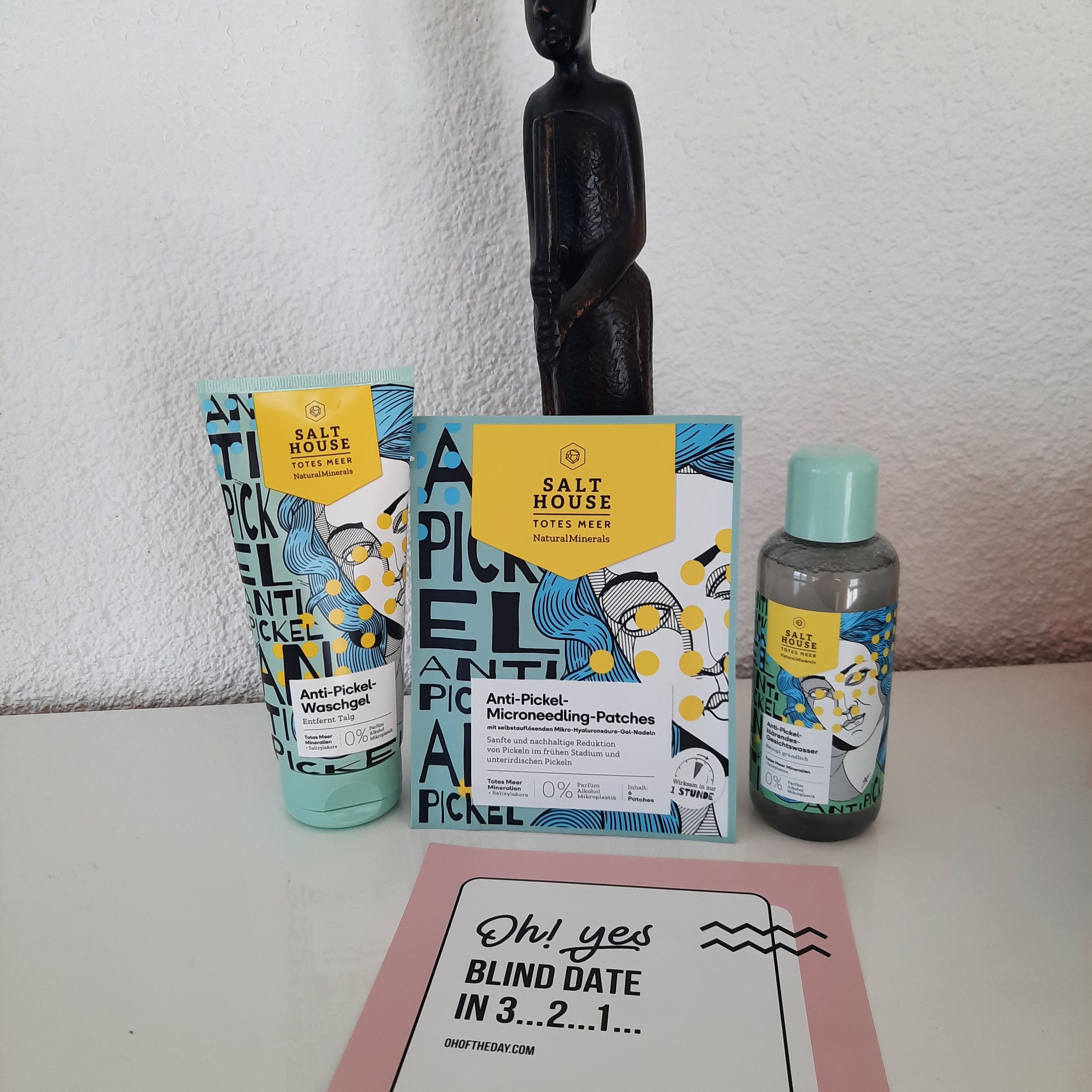 Ich bin begeistert von der salthouse pflegeroutine. Das Waschgel ist in einer tollen große verpackt und verhindert ganz gut das neu entstehen von weiteren Pickeln. Es reinigt die Haut fast gut, allerdings ist es nicht unbedingt für Mitesser geeignet. Die Creme ist leider nicht so toll. Sie ist leider in Phasen geteilt und riecht sehr abgestanden. Da weiß uch leider nicht was los ist. Die antipickel schnelle Hilfe kleine Tube ist super. Sie hält neue Pickel in Schach und trocknet sie gut weg. Toll