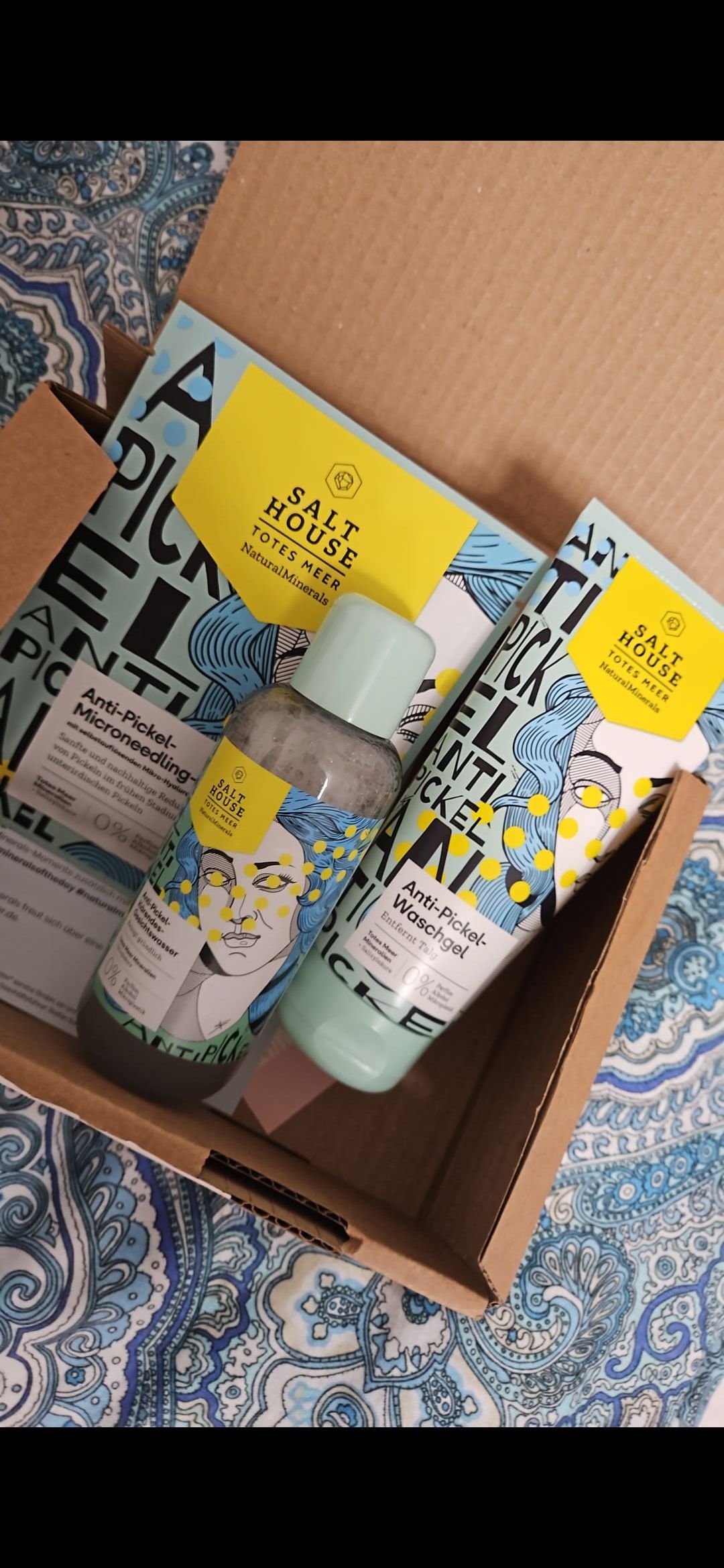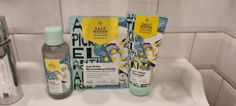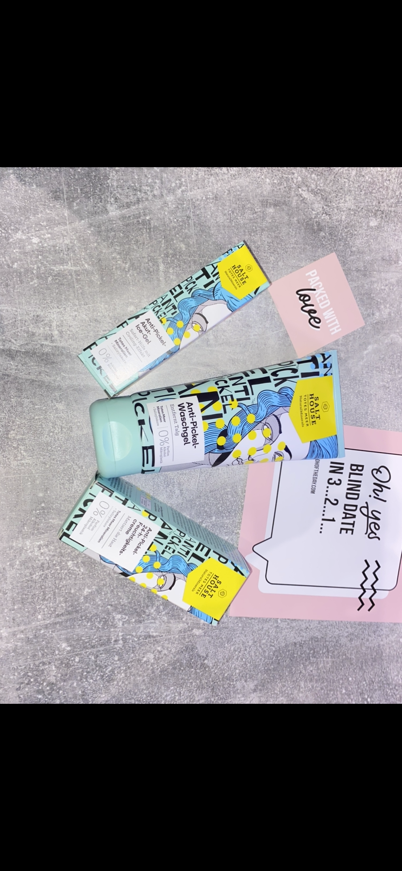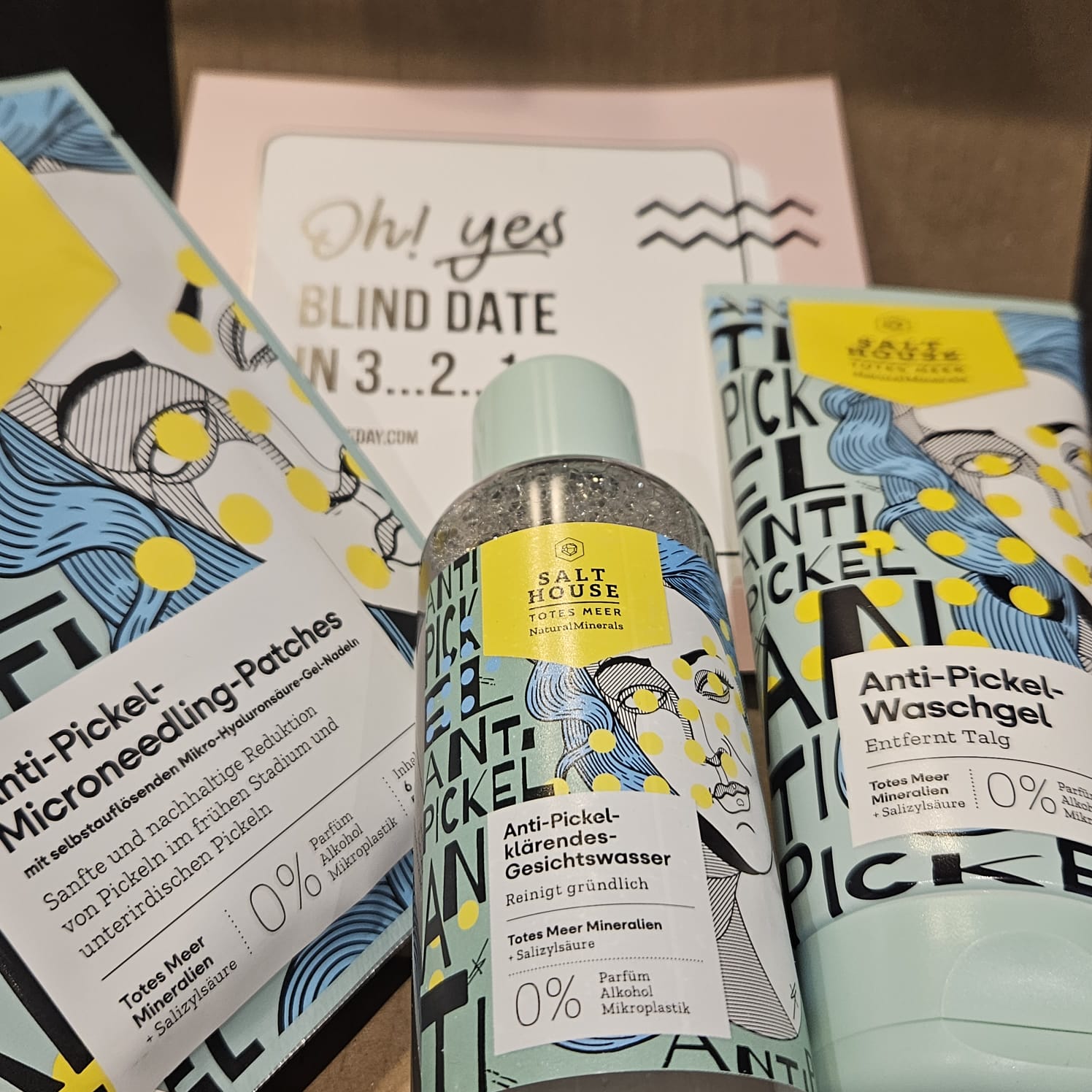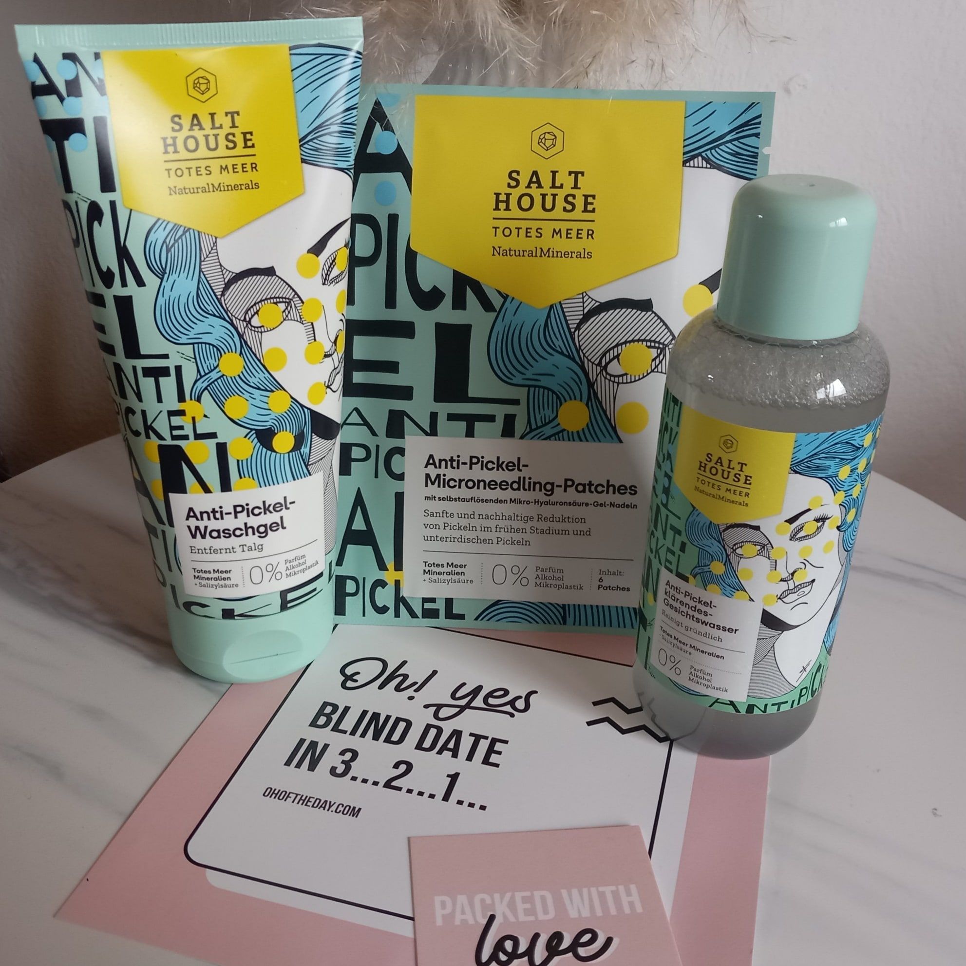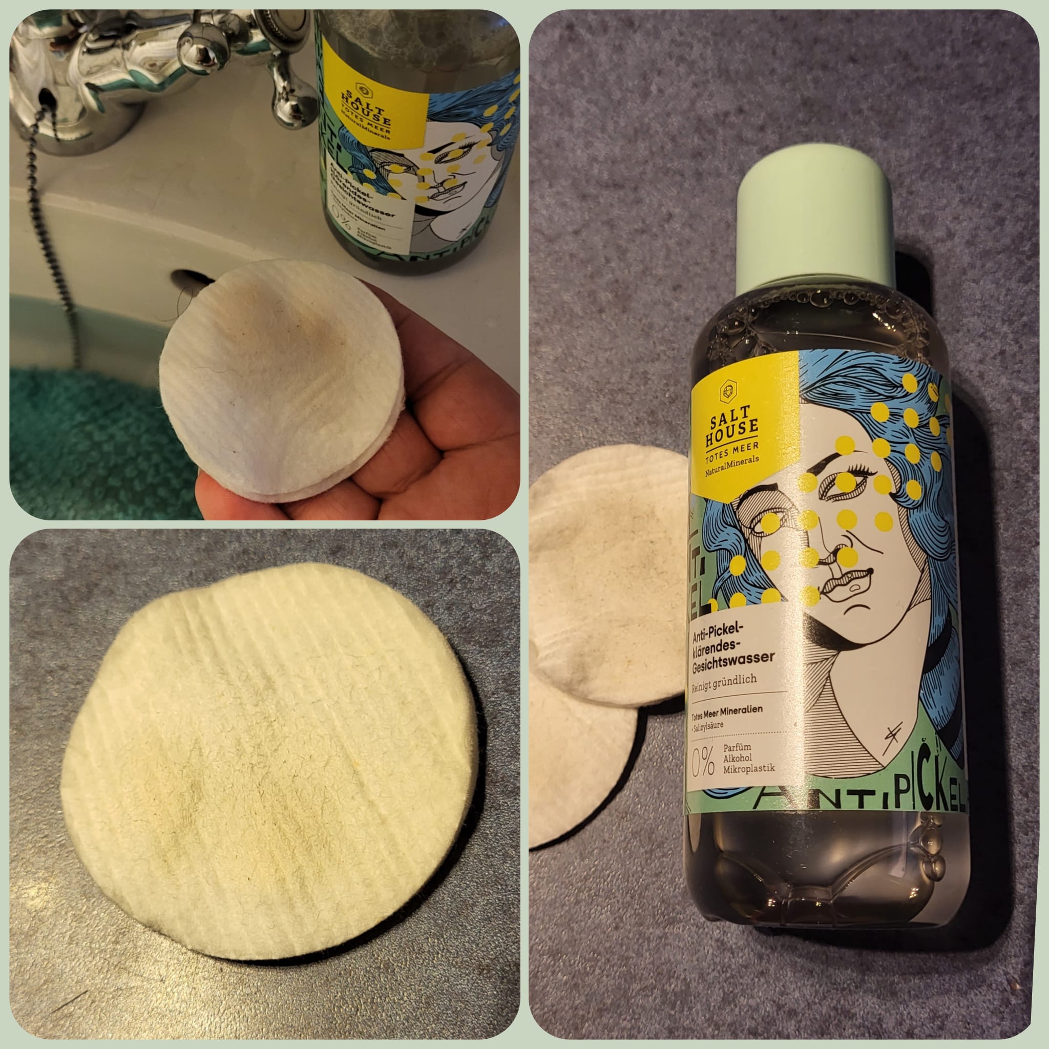 Ich bin begeistert von der salthouse pflegeroutine. Das Waschgel ist in einer tollen große verpackt und verhindert ganz gut das neu entstehen von weiteren Pickeln. Es reinigt die Haut fast gut, allerdings ist es nicht unbedingt für Mitesser geeignet. Die Creme ist leider nicht so toll. Sie ist leider in Phasen geteilt und riecht sehr abgestanden. Da weiß uch leider nicht was los ist. Die antipickel schnelle Hilfe kleine Tube ist super. Sie hält neue Pickel in Schach und trocknet sie gut weg. Toll