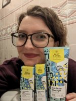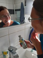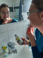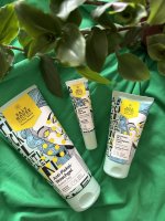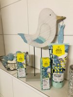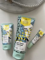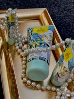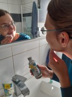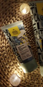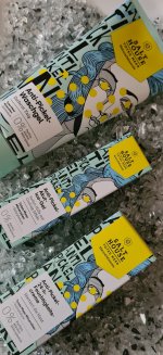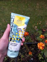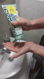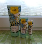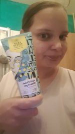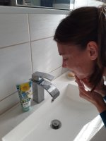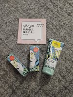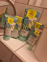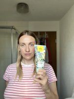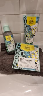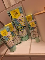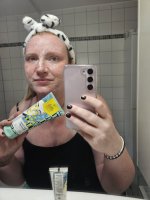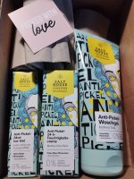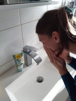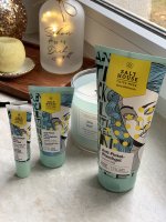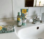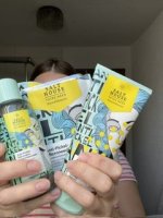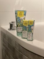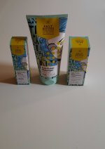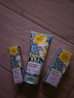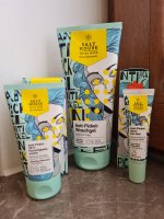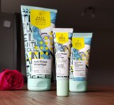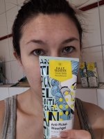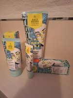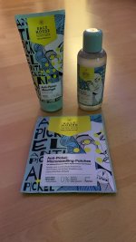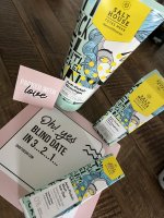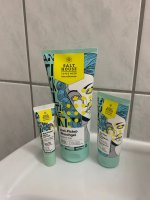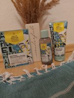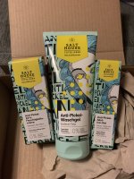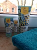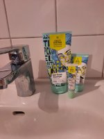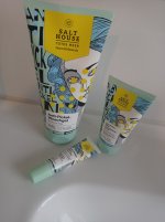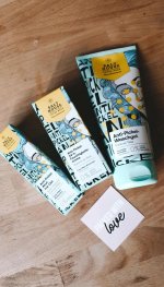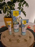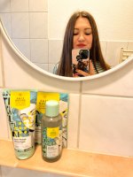 Die Waschlotion gefällt mir super, sie macht echt mega weiche Haut und an sich ist die 24h-Creme auch gut, aber der Gerich ist echt schrecklich! Ich atme beim Auftragen jedes Mal durch den Mund...