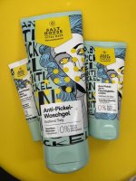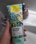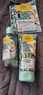 Mein Sohn testet das Produkt. Die Verpackung ist für junge Leute sehr ansprechend. Das Waschgel hat eine sehr angenehme Konsistenz und lässt sich gut verteilen. Seine Haut verträgt es gut , Rötungen werden heller. Die Haut fühlt sich weich, frisch und geschmeidig an. Das Waschgel ist sparsam im Gebrauch. Das Gesichtswasser reinigt gut. Das Pickelpatch wurde noch nicht benutzt da es noch keinen akuten Fall gab.
