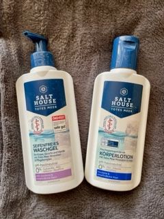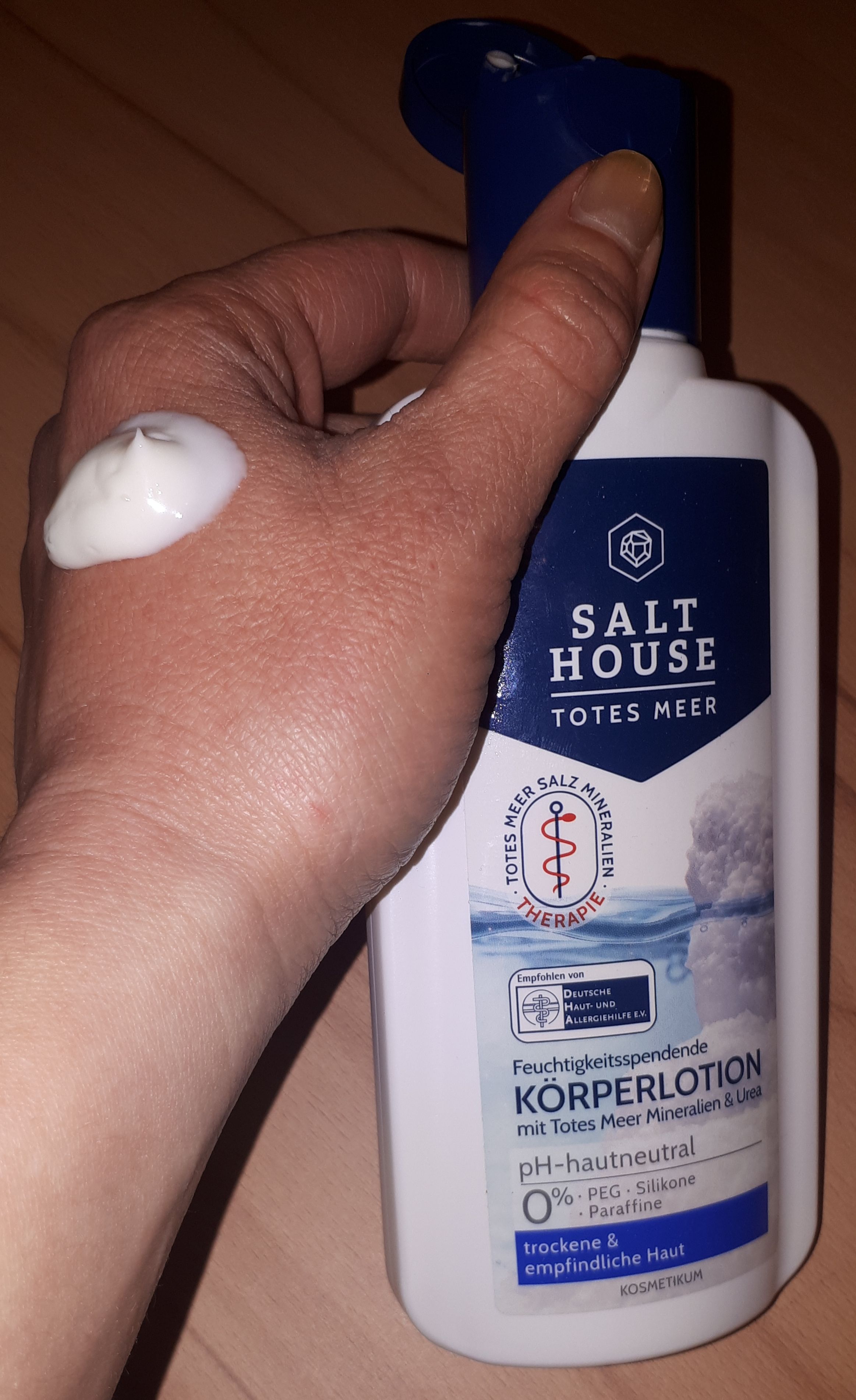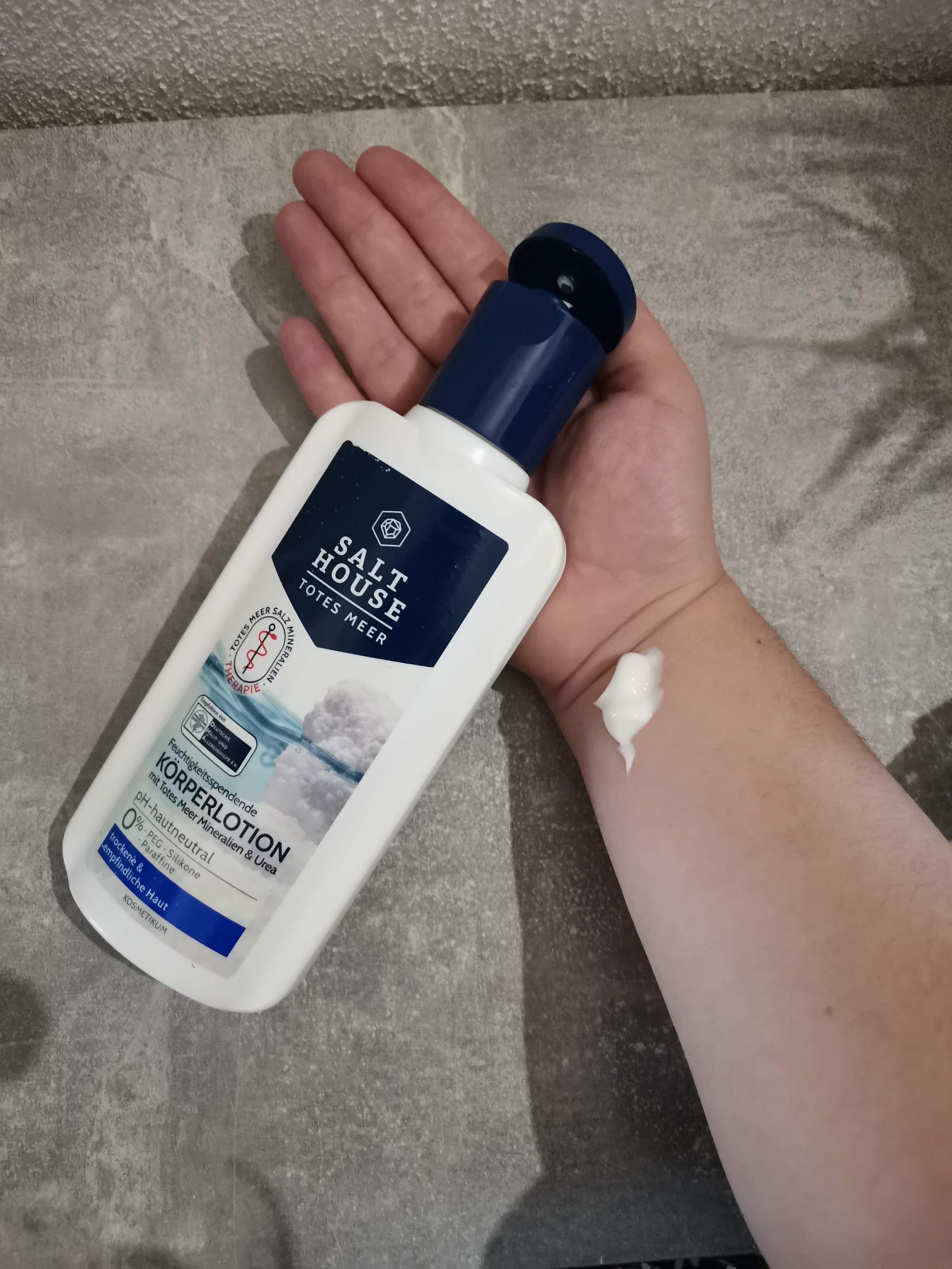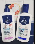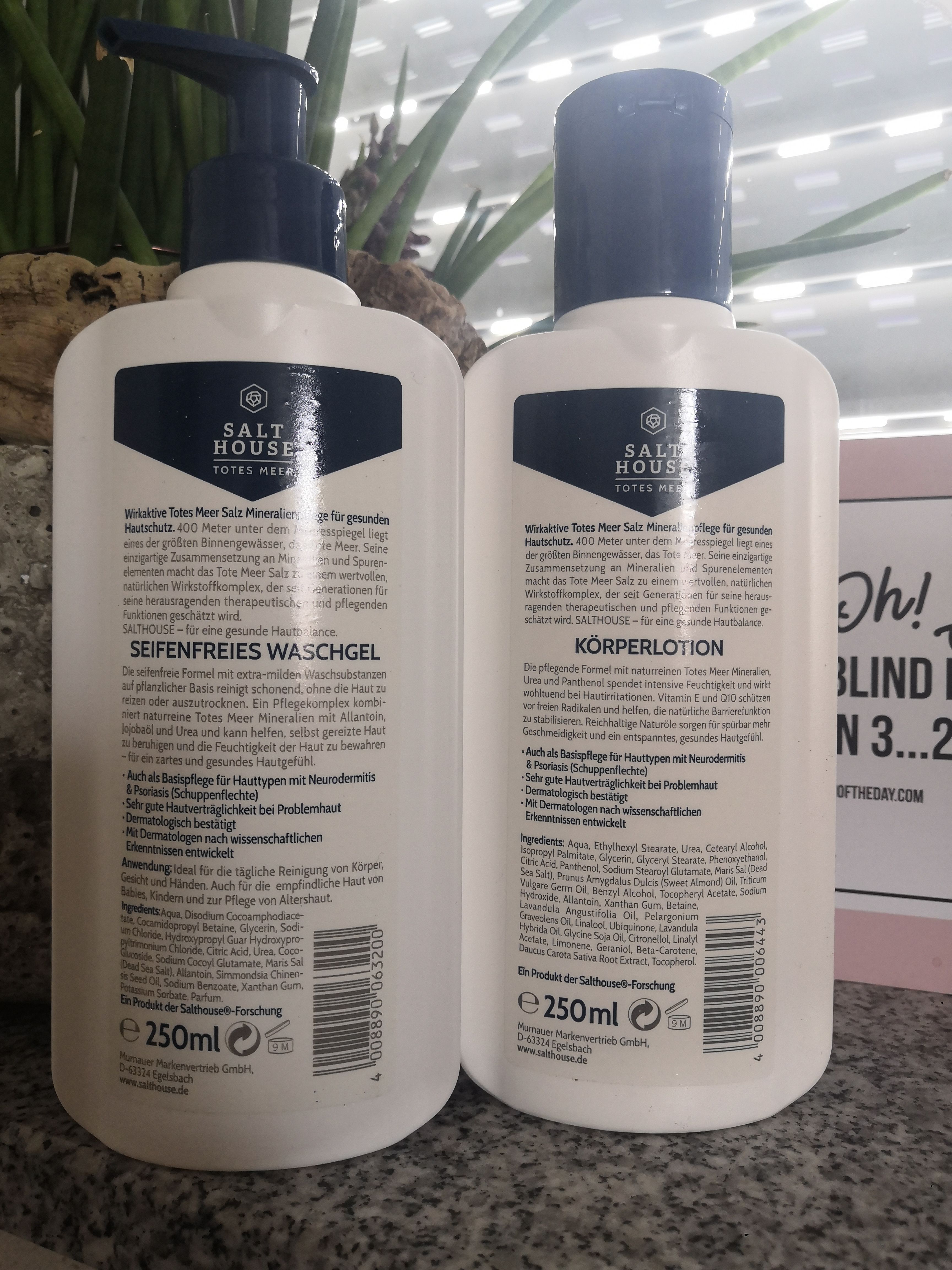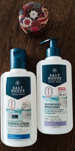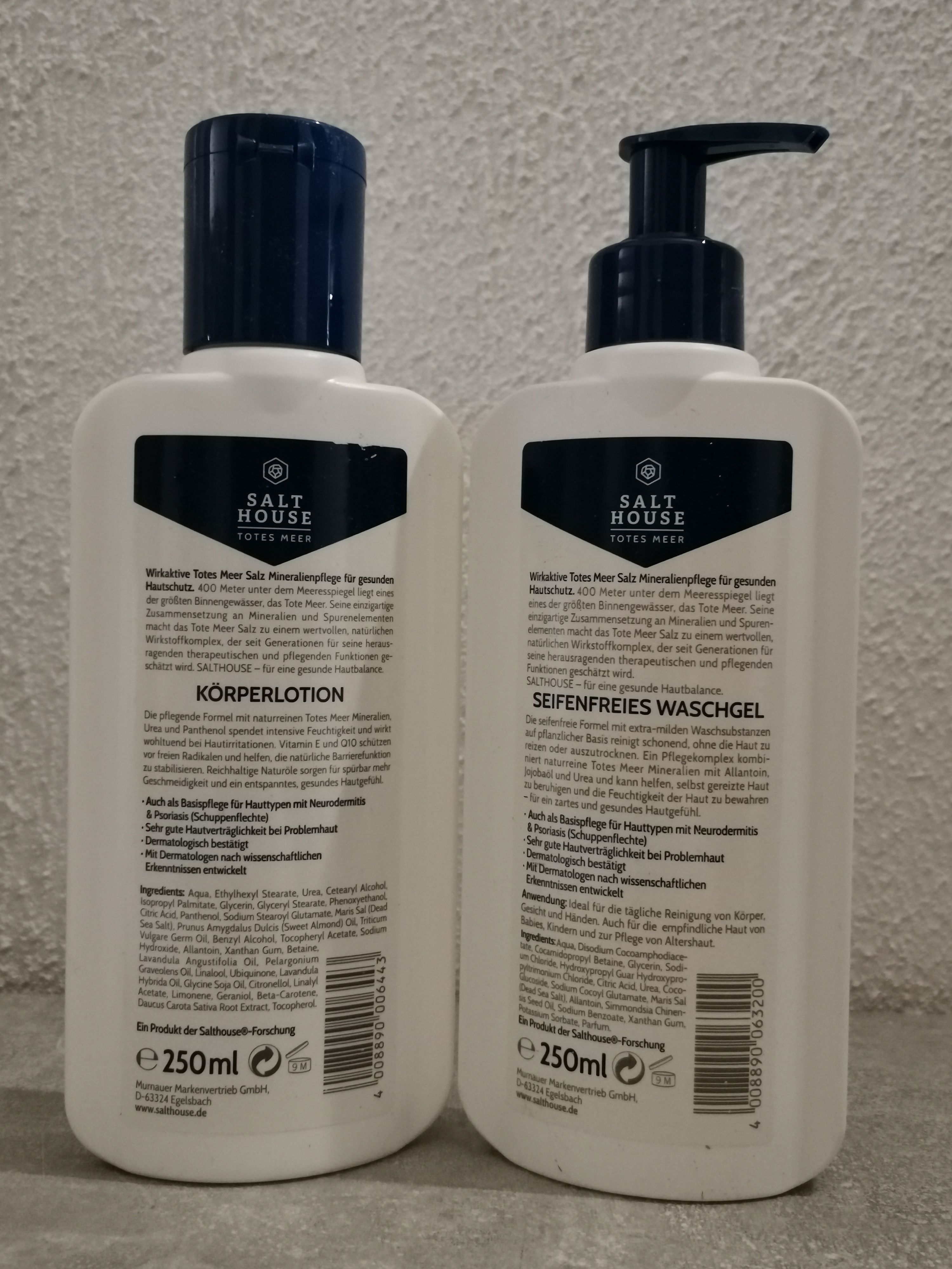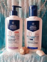 Meine positiven Eindruck habe ich sehr gerne auf Instagram geteilt: Die Salthouse Körperlotion ist sehr ansprechend verpackt in einer dezent gestalteten weißen Flasche mit blauem Deckel. Der Verschluss der Lotion bzw. der Pumpspender des Waschgels ist sehr praktisch und ermöglicht ein einfaches dosieren der Lotion und des Waschgels. Die Produkte selbst riechen angenehm dezent, frisch und natürlich. Beide Produkte pflegen reichhaltig und sind in der Konsistenz vergleichbar mit herkömmliche Feuchtigkeitslotionen und Waschgelen, wobei die Lotion sehr gut und schnell in die Haut einzieht und sich leicht auf der Haut verteilen lässt. Die Lotion und das Waschgel mit Mineralien aus dem Meer hinterlassen einen angenehm feuchtiggkeitsspendenen Film, ohne dabei zu fetten. Raue und sehr trockene Stellen die ich oft an den Ellenbogen und den Knien habe, konnte ich dank der Lotion innerhalb von drei Tagen "wegpflegen" wobei ich die Lotion morgens nach dem Duschen und Abends vor dem Schlafengehen verwendet hab. Meine gesamte Haut am Körper fühlt sich nach der Anwendung sehr elastisch, weich und wohlig-eingehüllt an. Ich kann die Salthouse Lotion mit Mineralien aus dem Meer allen weiterempfehlen, die eher zu trockener Haut neigen, die gegen trockene Winterhaut wirken möchten und die sich etwas Gutes tun wollen, ohne die Haut dabei unnötig zu belasten.
