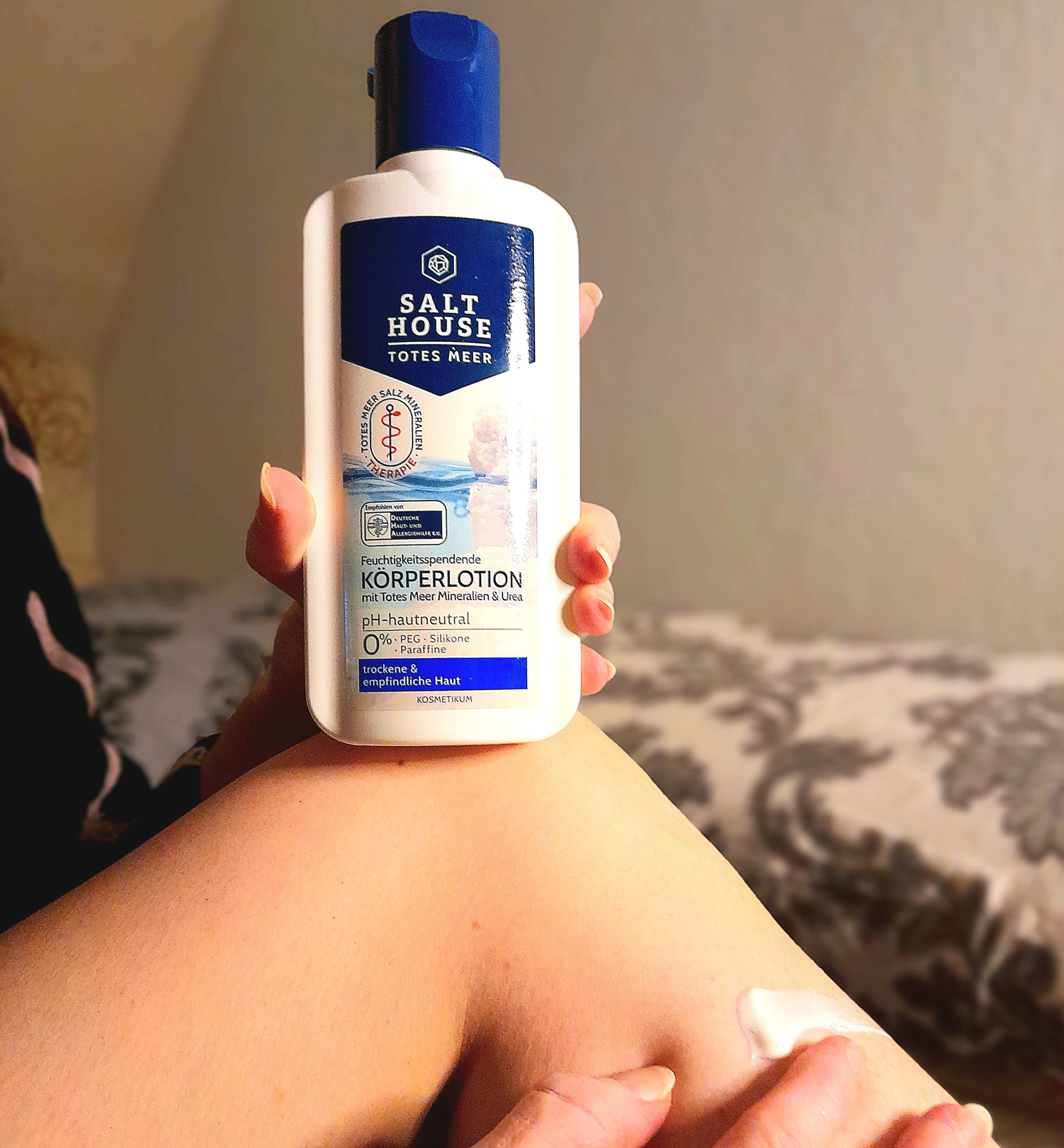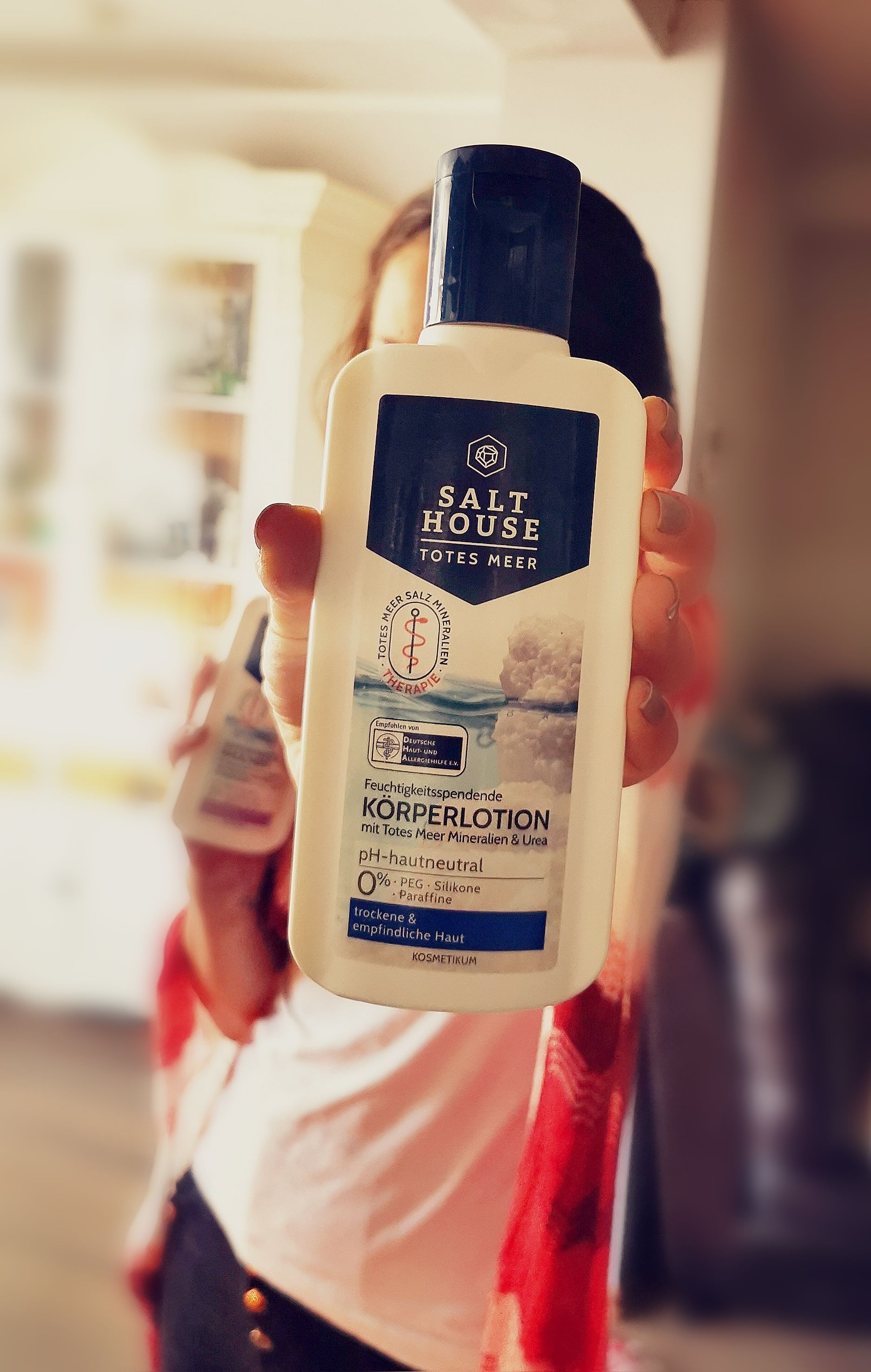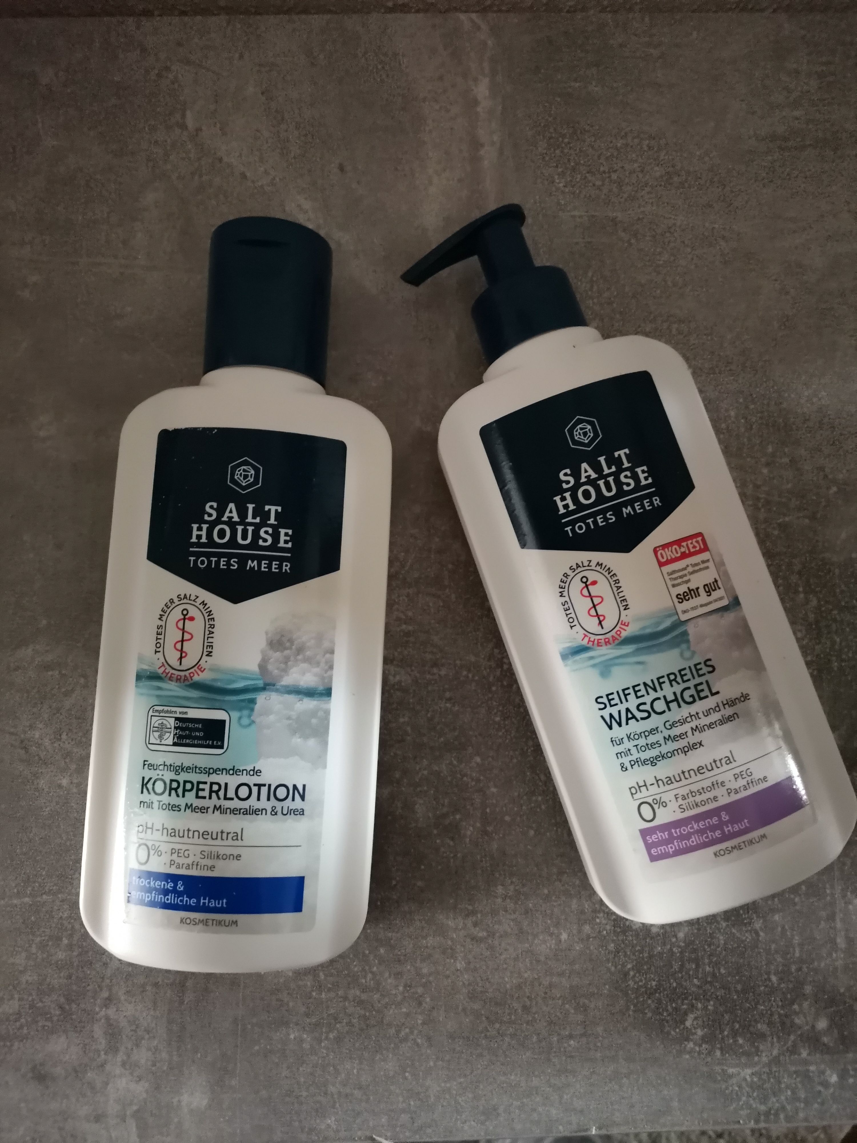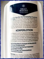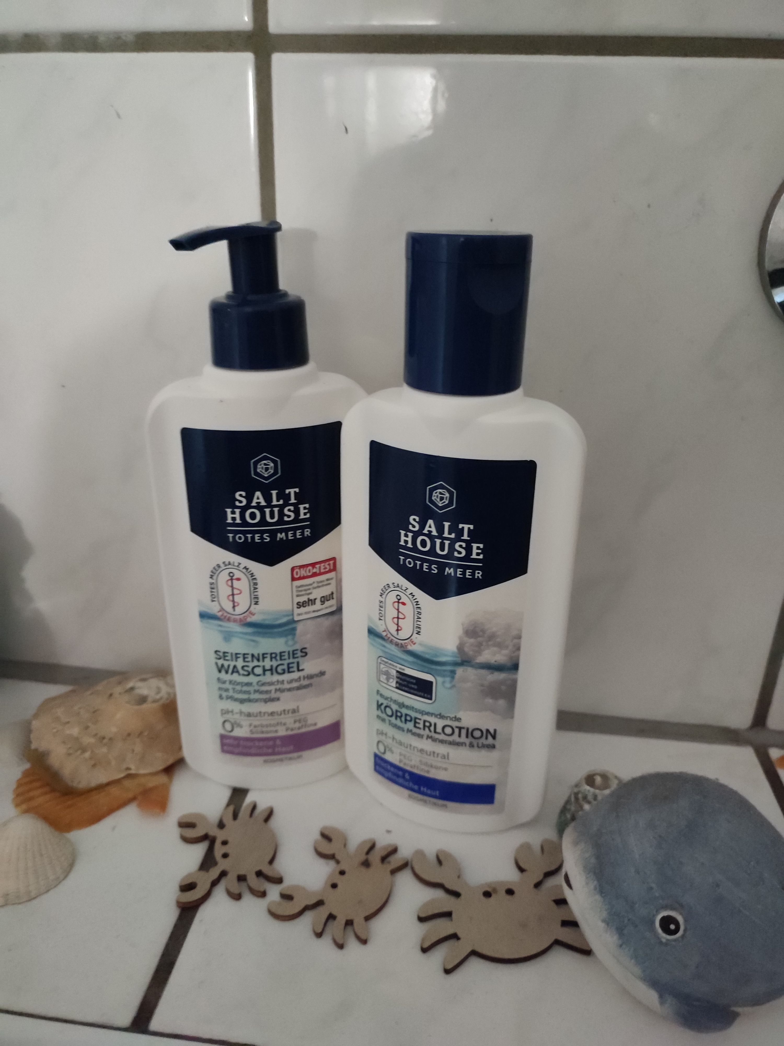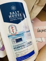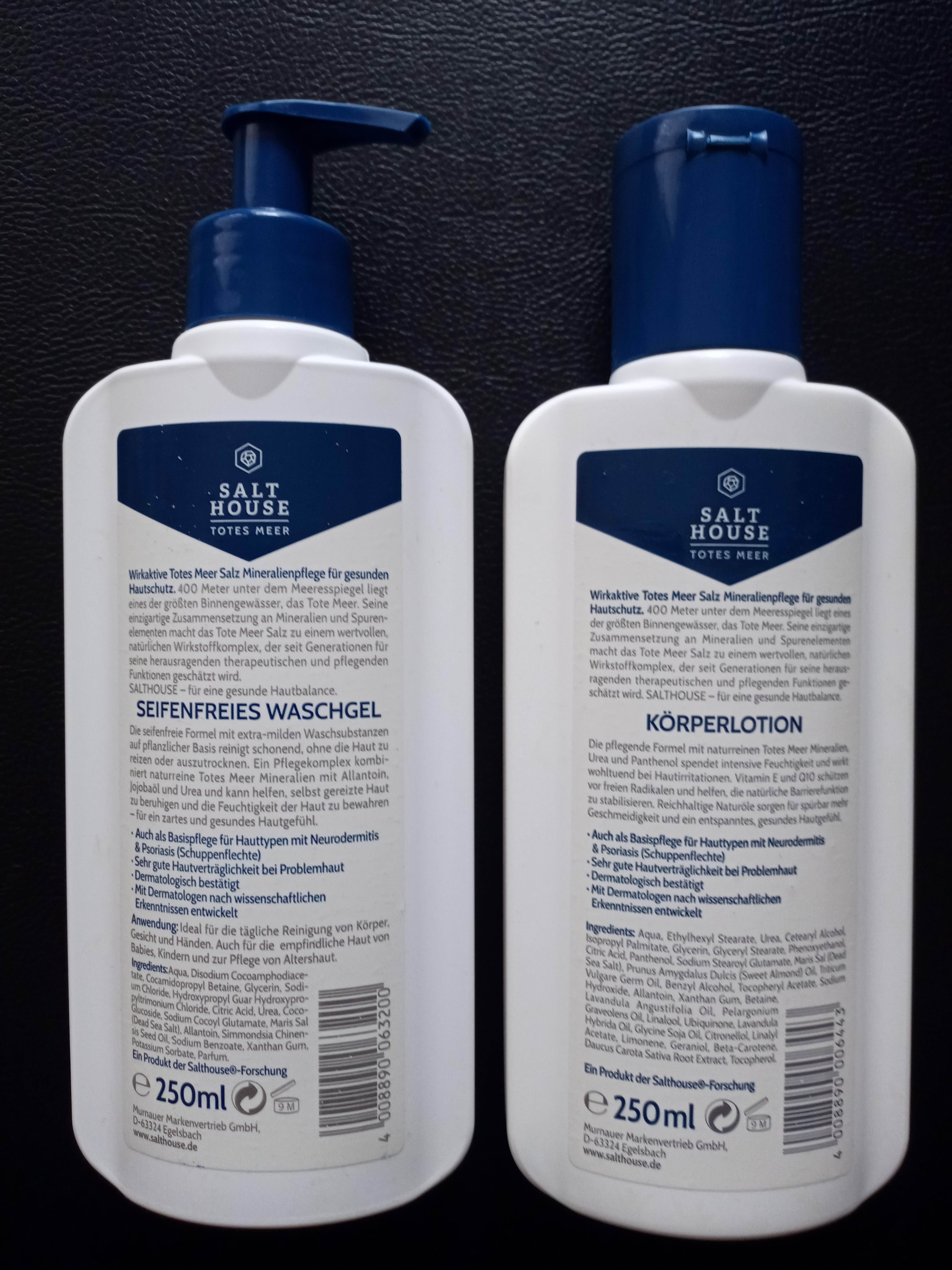 Meine positiven Eindruck habe ich sehr gerne auf Instagram geteilt: Die Salthouse Körperlotion ist sehr ansprechend verpackt in einer dezent gestalteten weißen Flasche mit blauem Deckel. Der Verschluss der Lotion bzw. der Pumpspender des Waschgels ist sehr praktisch und ermöglicht ein einfaches dosieren der Lotion und des Waschgels. Die Produkte selbst riechen angenehm dezent, frisch und natürlich. Beide Produkte pflegen reichhaltig und sind in der Konsistenz vergleichbar mit herkömmliche Feuchtigkeitslotionen und Waschgelen, wobei die Lotion sehr gut und schnell in die Haut einzieht und sich leicht auf der Haut verteilen lässt. Die Lotion und das Waschgel mit Mineralien aus dem Meer hinterlassen einen angenehm feuchtiggkeitsspendenen Film, ohne dabei zu fetten. Raue und sehr trockene Stellen die ich oft an den Ellenbogen und den Knien habe, konnte ich dank der Lotion innerhalb von drei Tagen "wegpflegen" wobei ich die Lotion morgens nach dem Duschen und Abends vor dem Schlafengehen verwendet hab. Meine gesamte Haut am Körper fühlt sich nach der Anwendung sehr elastisch, weich und wohlig-eingehüllt an. Ich kann die Salthouse Lotion mit Mineralien aus dem Meer allen weiterempfehlen, die eher zu trockener Haut neigen, die gegen trockene Winterhaut wirken möchten und die sich etwas Gutes tun wollen, ohne die Haut dabei unnötig zu belasten.