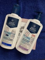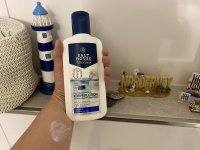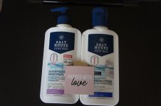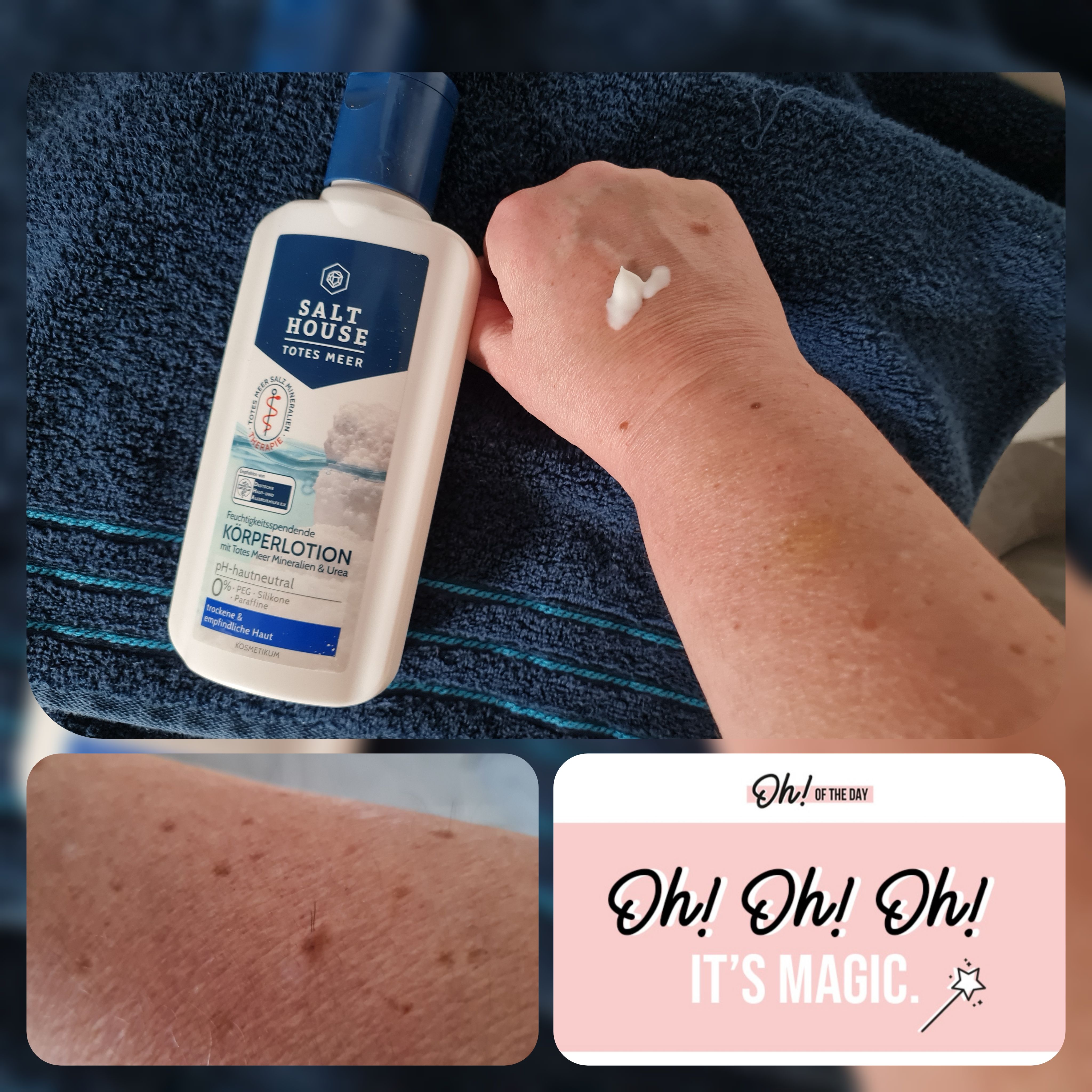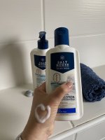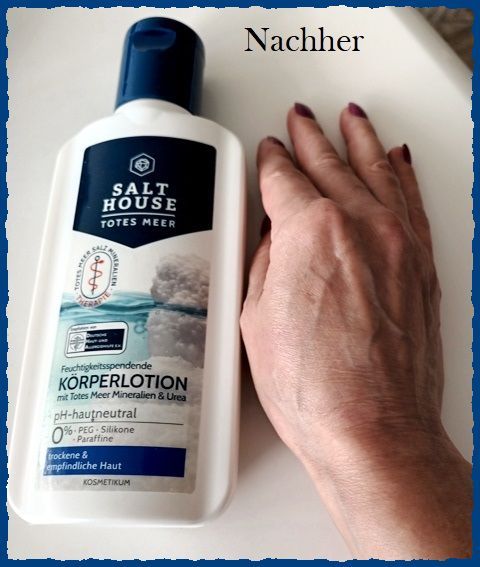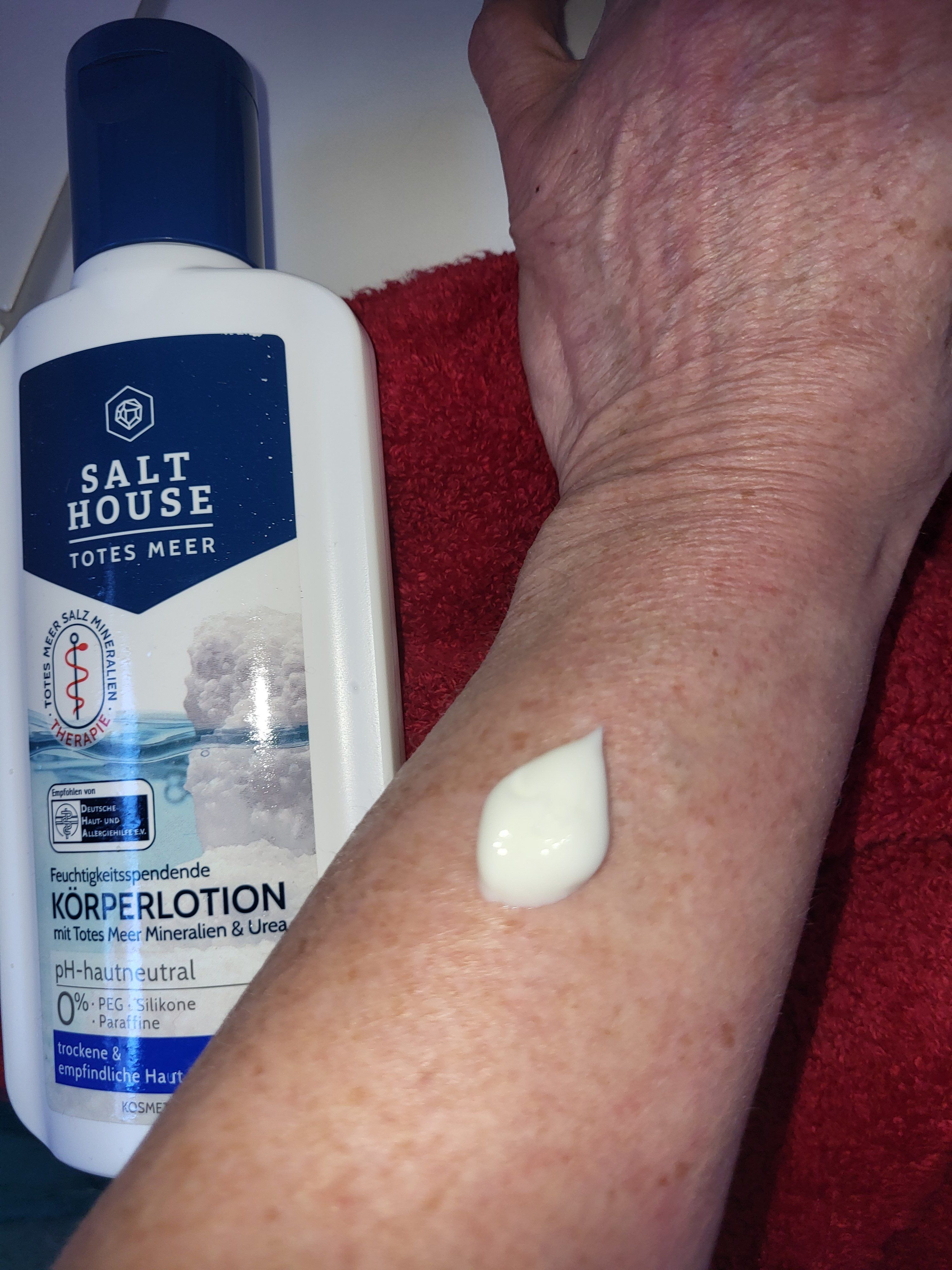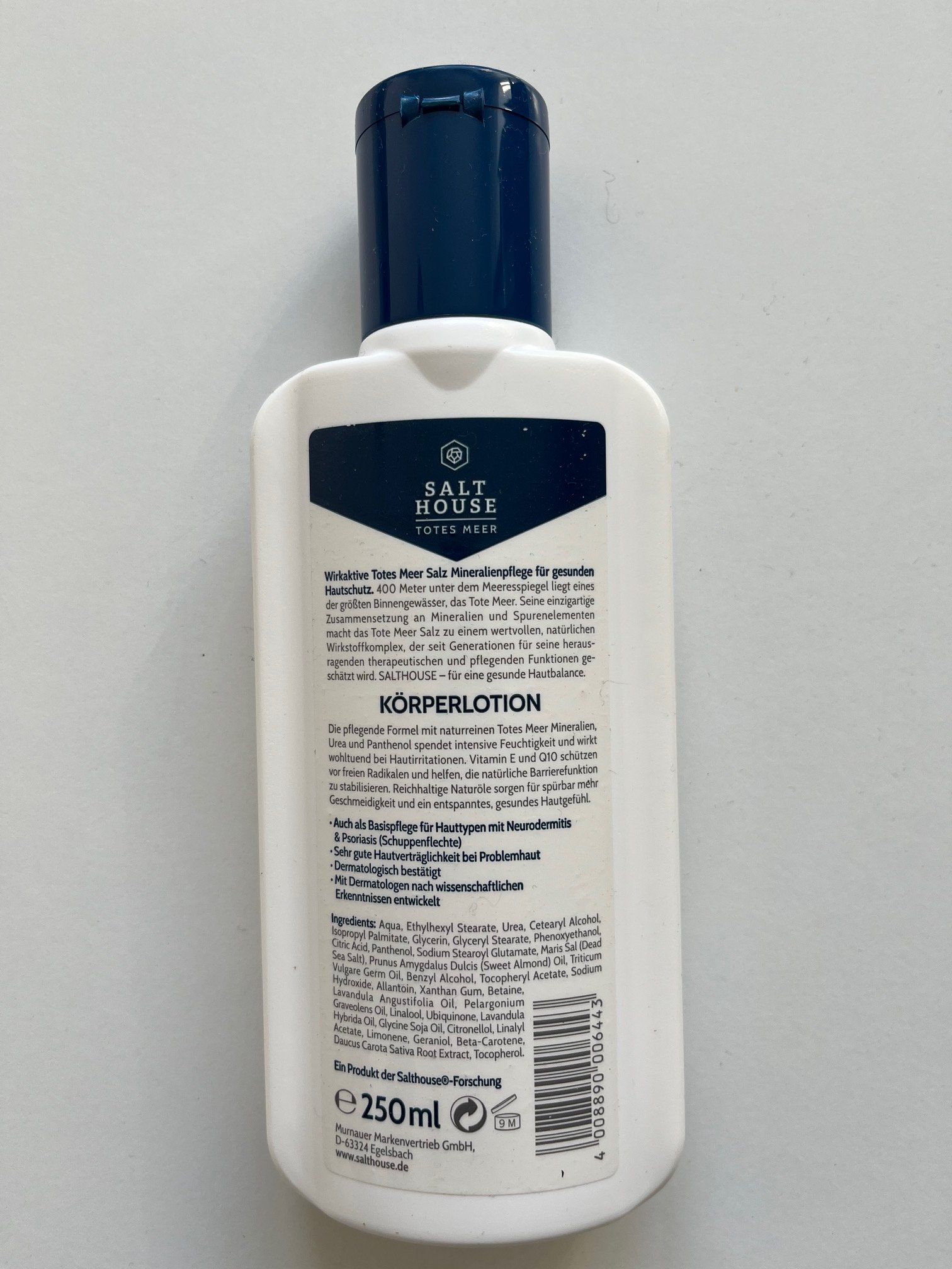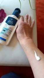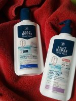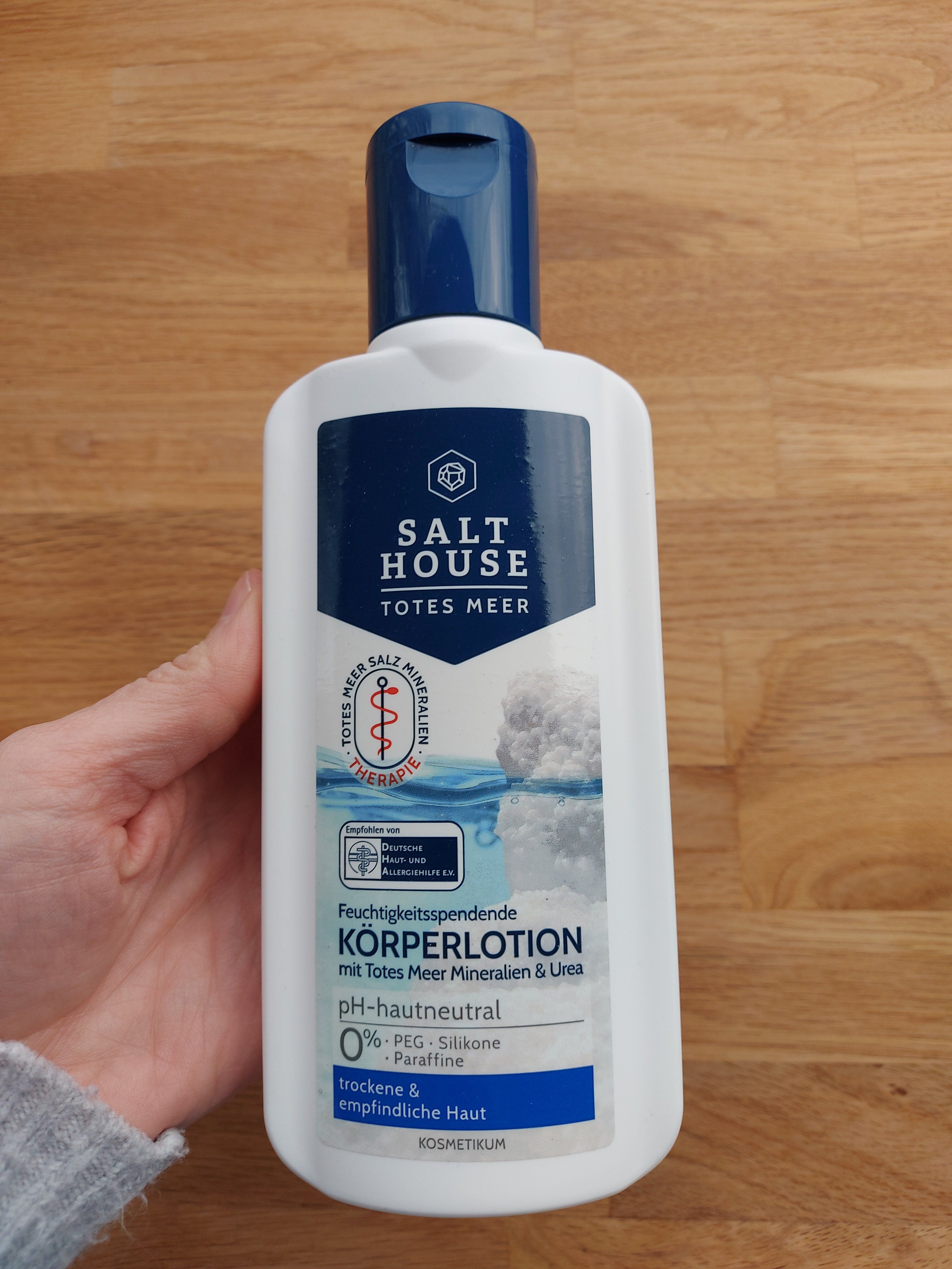 Meine positiven Eindruck habe ich sehr gerne auf Instagram geteilt: Die Salthouse Körperlotion ist sehr ansprechend verpackt in einer dezent gestalteten weißen Flasche mit blauem Deckel. Der Verschluss der Lotion bzw. der Pumpspender des Waschgels ist sehr praktisch und ermöglicht ein einfaches dosieren der Lotion und des Waschgels. Die Produkte selbst riechen angenehm dezent, frisch und natürlich. Beide Produkte pflegen reichhaltig und sind in der Konsistenz vergleichbar mit herkömmliche Feuchtigkeitslotionen und Waschgelen, wobei die Lotion sehr gut und schnell in die Haut einzieht und sich leicht auf der Haut verteilen lässt. Die Lotion und das Waschgel mit Mineralien aus dem Meer hinterlassen einen angenehm feuchtiggkeitsspendenen Film, ohne dabei zu fetten. Raue und sehr trockene Stellen die ich oft an den Ellenbogen und den Knien habe, konnte ich dank der Lotion innerhalb von drei Tagen "wegpflegen" wobei ich die Lotion morgens nach dem Duschen und Abends vor dem Schlafengehen verwendet hab. Meine gesamte Haut am Körper fühlt sich nach der Anwendung sehr elastisch, weich und wohlig-eingehüllt an. Ich kann die Salthouse Lotion mit Mineralien aus dem Meer allen weiterempfehlen, die eher zu trockener Haut neigen, die gegen trockene Winterhaut wirken möchten und die sich etwas Gutes tun wollen, ohne die Haut dabei unnötig zu belasten.