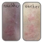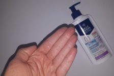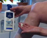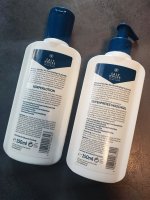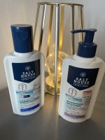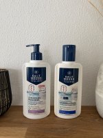 Die seifenfreie Waschlotion ist nicht für den Intimbereich geeignet. Ich bekomme brennen und Juckreiz davon. Die Körperlotion macht ein gutes Hautgefühl, obwohl die defekten Hautstellen noch nicht abgeheilt sind.