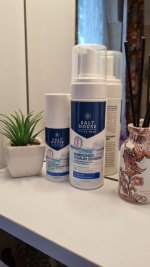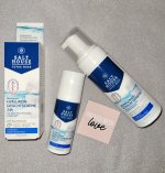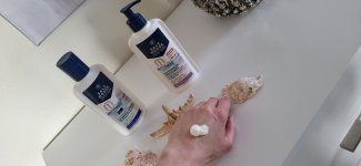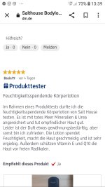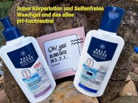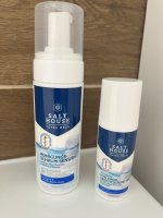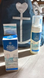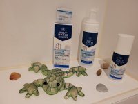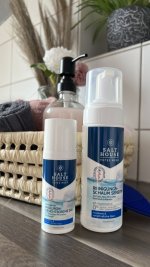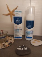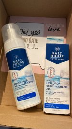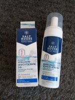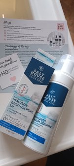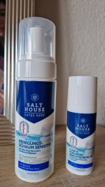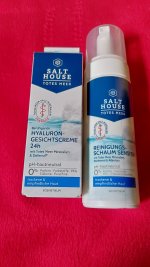 Ich war super gespannt auf die Produkte und habe das Gesichtspaket testen dürfen! Der Waschschaum lässt sich prima dosieren und auf dem Gesicjt verteilen. Hiernach fühlt sich die Haut direkt sauber und "frei" an. Es blieb kein Spannungsgefühl nach der Reinigung. Bei den noch kühlen und feuchten Temperaturen neigt meine Haut zu trockenen Stellen und partial Juckreiz. Dies konnte der Reinigungsschaum ohne Irritationen tatsächlich mildern und beheben. Die anschließende bzw.generell die Hyaluron Gesichtscreme nährte meine Haut spürbar. Sie fühlt sich ganz natürlich an und hat keinen eigenen wirklichen Duft, was ich zum Einen positiv finde, da es die Natürlichkeit des Produktes unterstreicht, ich persönlich aber einen ganz dezenten Duft (gar nicht künstlich sondern vielleicht das Salz stärker im Vordergrund) durchaus mag und begrüße. Daher auch zeitgleich mein Negativpunkt. Die Creme lässt sich super verteilen und durch den Pumpdispenser auch klasse entnehmen. Spannend wird es hier erst, wenn es fast leer ist. Da kann man leider keine Reste rauskriegen durch öffnen des Dispensers. Das finde ich schade und unter dem Nachhaltigkeitsaspekt auch immer verschwenderisch. Es bleiben stets Reste in dem Pumpflacon und man kommt nicht mehr ran, obwohl man damit noch gut und länger pflegen könnte. Meine Haut fühlt sich beruhigt und gepflegt an nach dem Auftragen und das ist was ich mag! Nach nun 1 Woche intensiver Nutzung ist mein Fazit insgesamt positiv!