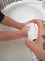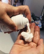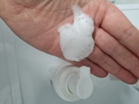 Handhabung des Spenders des Reingungsschaums ist einfach, genau wie bei der Gesichtscreme. Alles lässt sich perfekt dosieren.