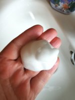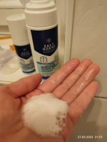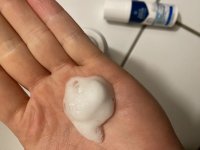 Der Reingungsschaum ist weich und lässt sich gut auf der Haut verteilen. Nach der Anwendung fühlt sich die Haut sauber und entspannt an.