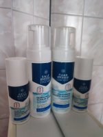 Seit dem 22 März habe ich morgens und abends ausschließlich als erstes den Reinigungsschaum zum reinigen von Gesicht, Hals und Dekolleté benutzt und danach die Hyaloron Gesichtscreme ebenfalls auf Gesicht, Hals und Dekolleté aufgetragen und einmassiert.