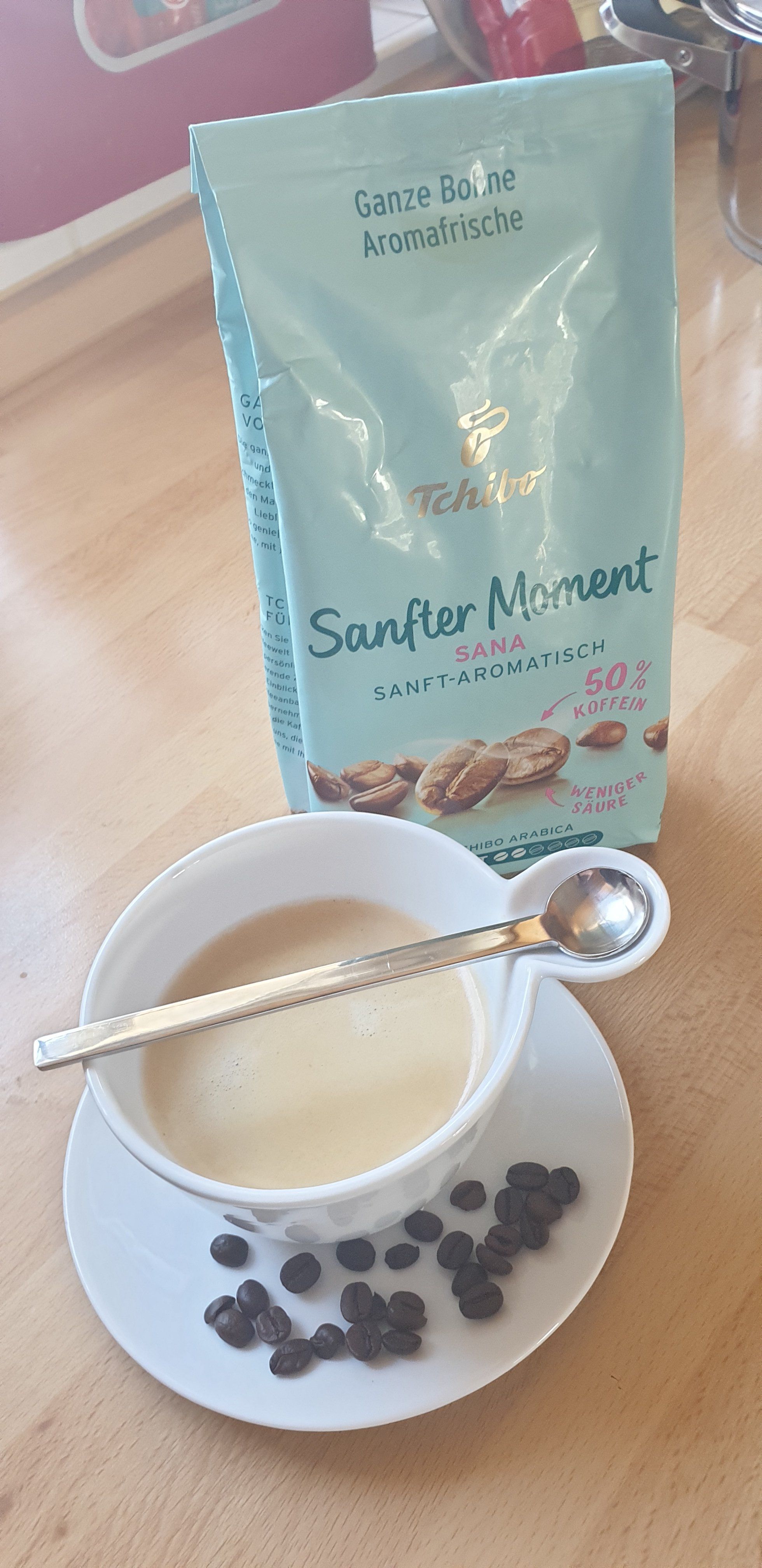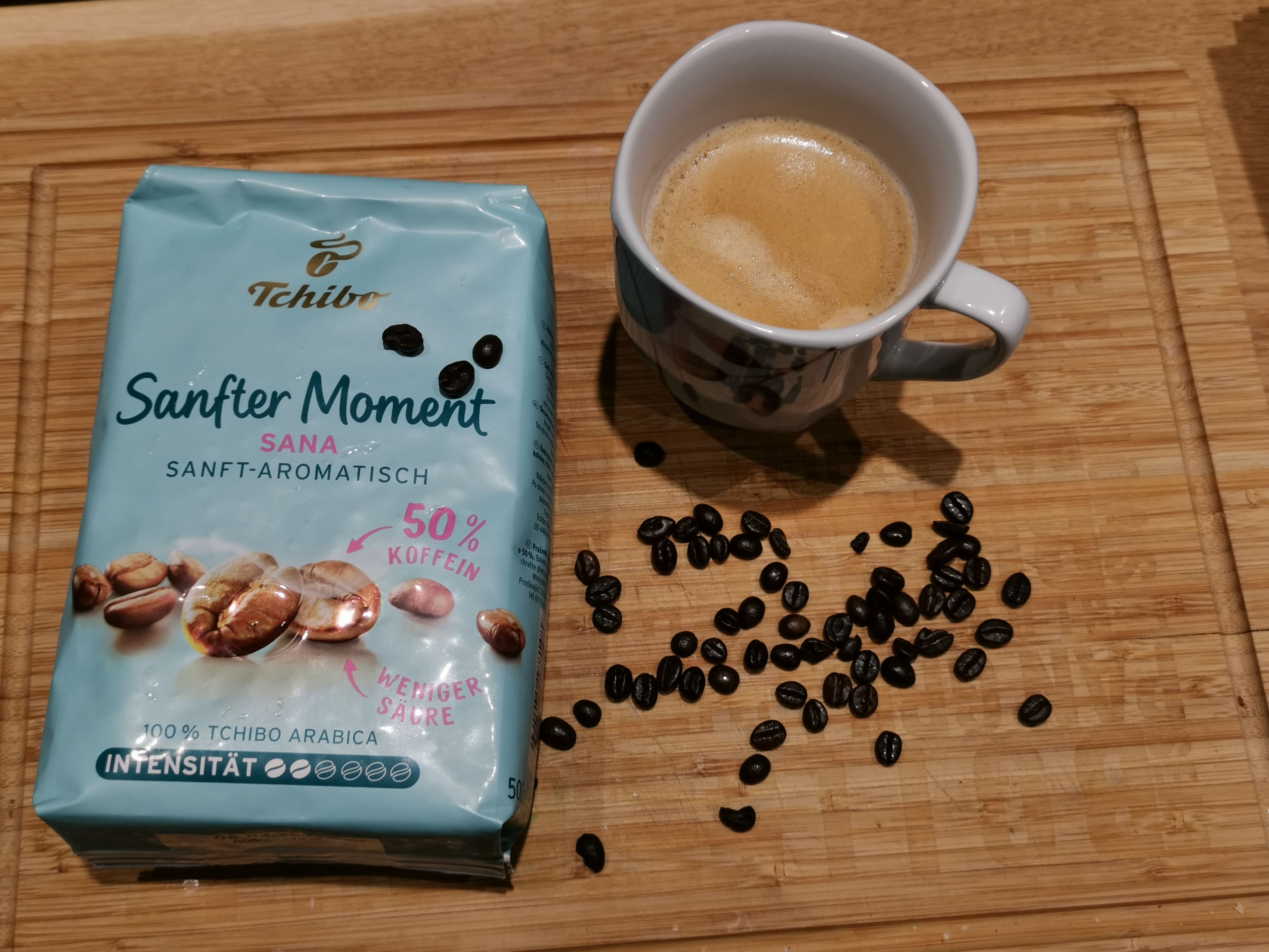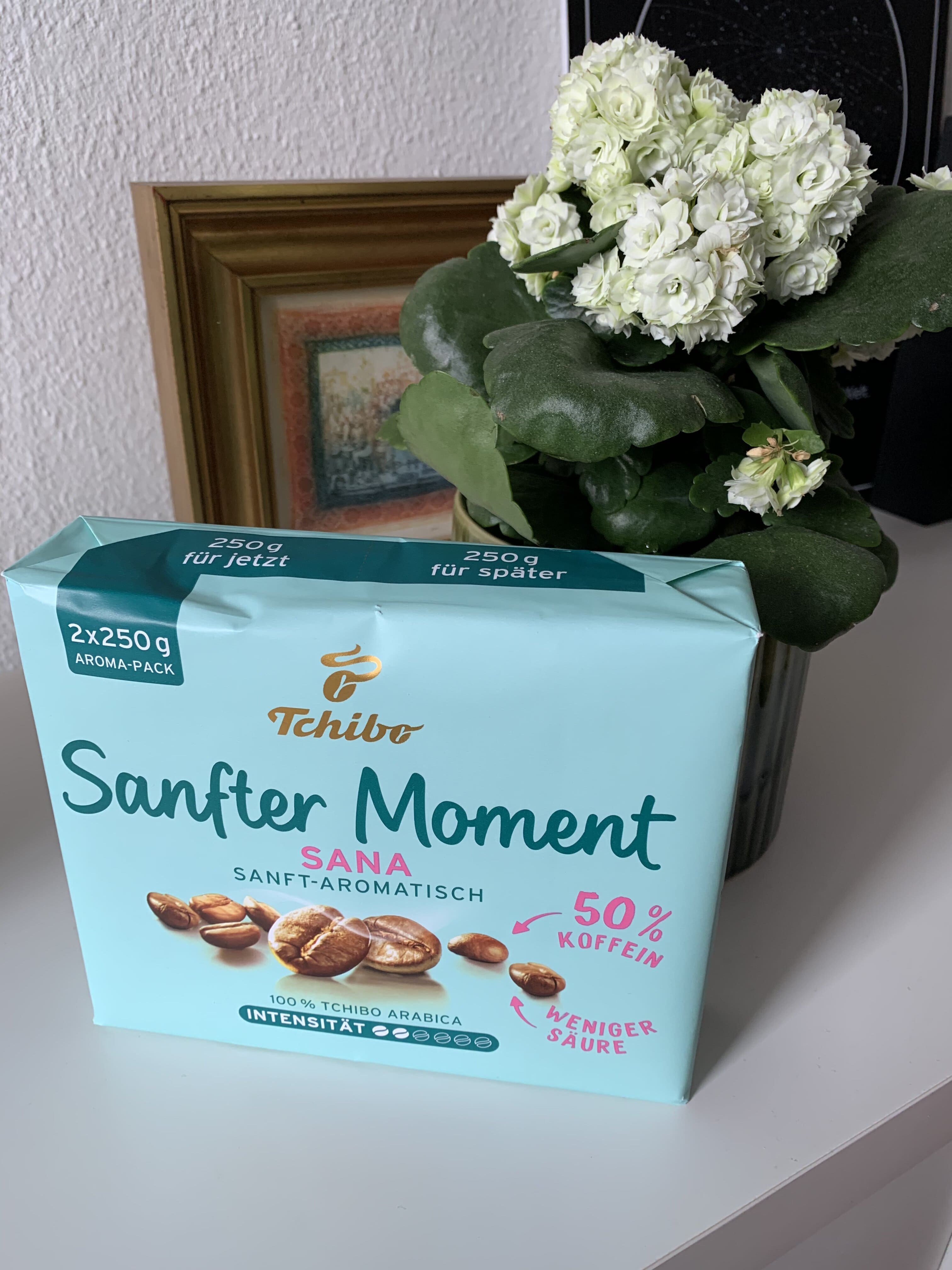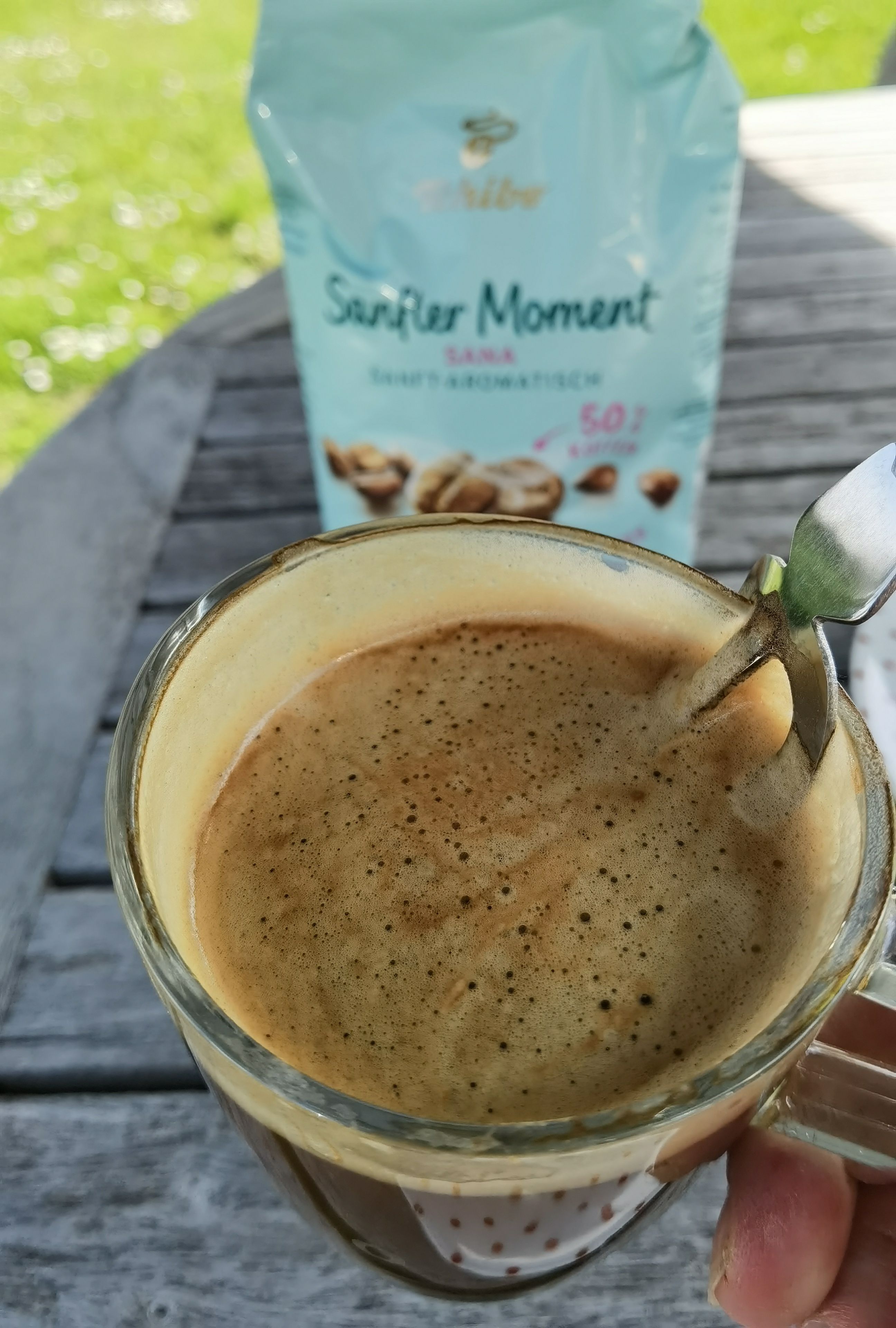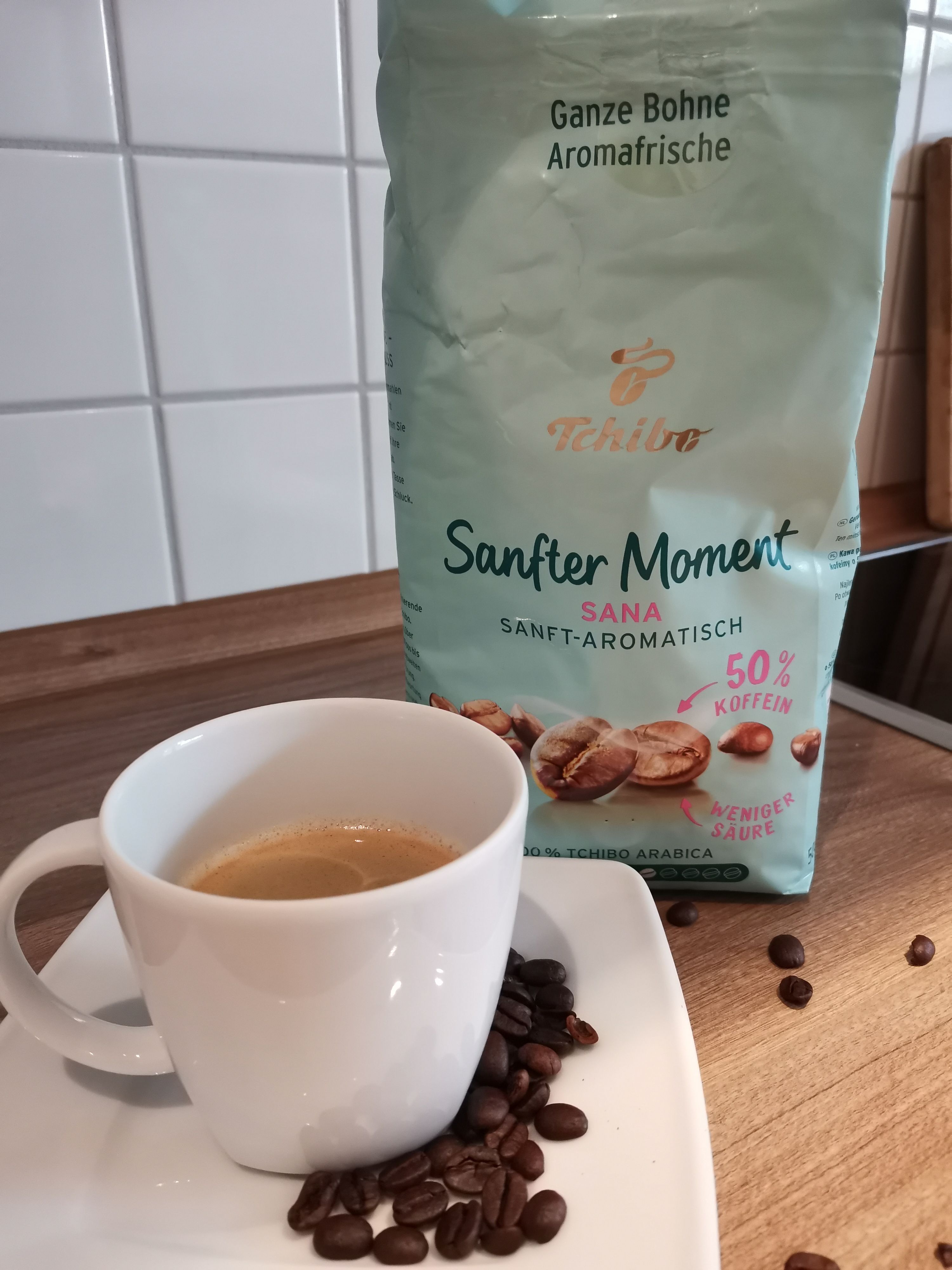 Der Kaffee "Sanfter Moment" von Tchibo schmeckt wie der Name es schon vermuten lässt sehr leicht und das Koffein ist auch nicht zu stark.
